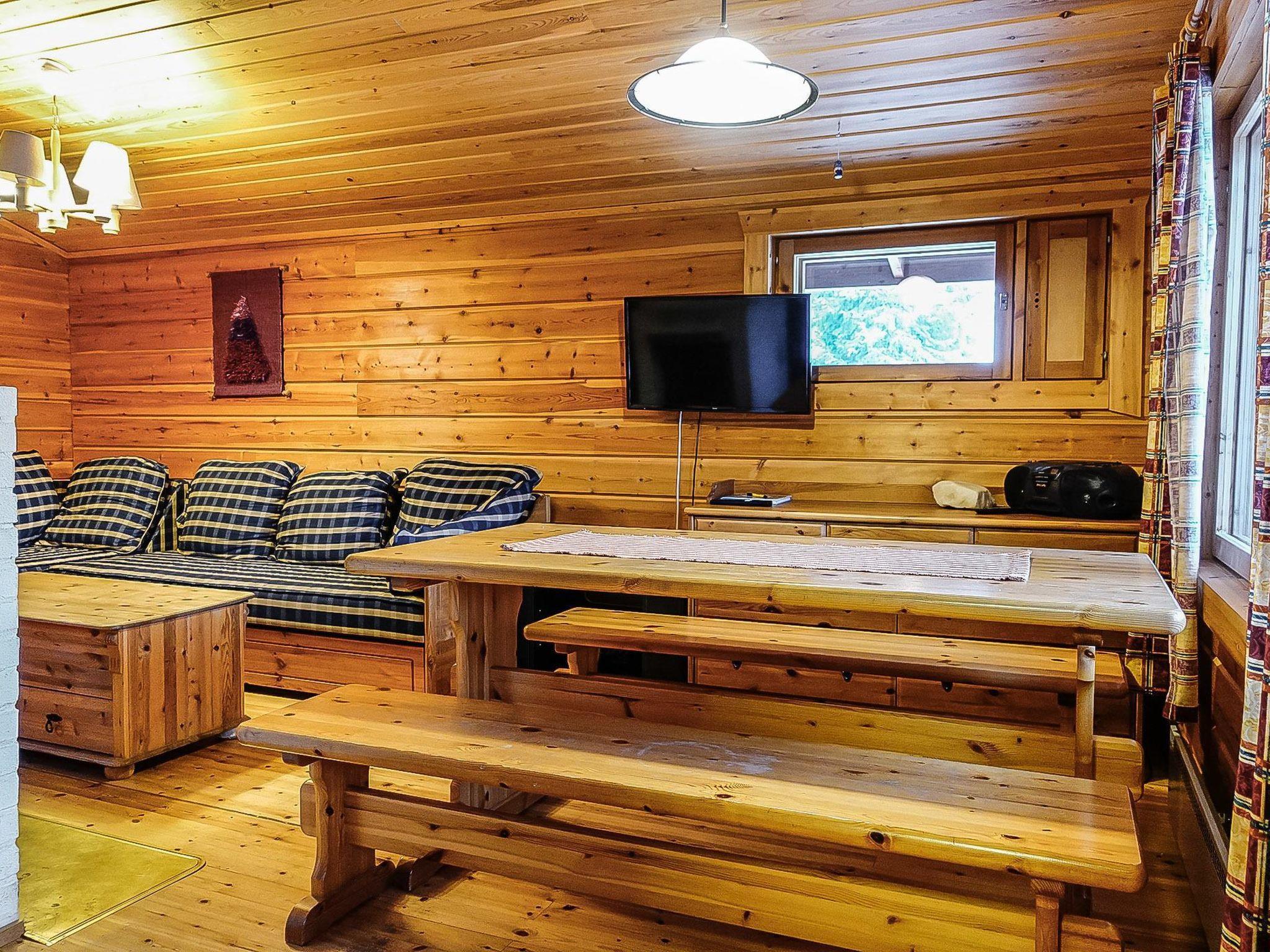 220 km north of Rovaniemi, Olostunturi tourism center. A log cabin, inside partially paneled, built in 1991. Upstairs: Living room with sofa bed, kitchenette, bedroom (no door) with 2 beds, a balcony. Ground floor: master bedroom with bunk bed, sauna (electric stove), bathroom, separate toilet. Quite steep stairs.