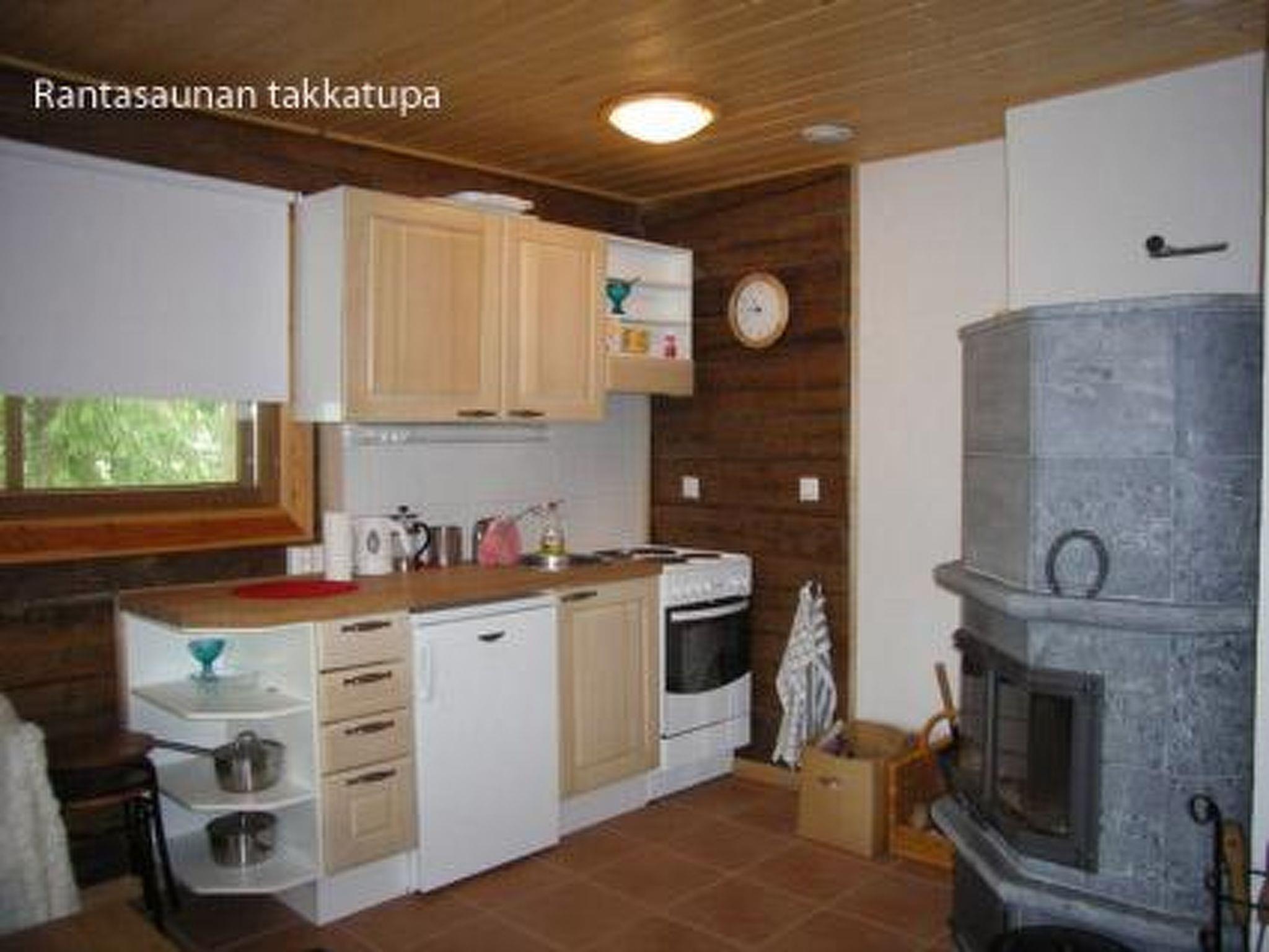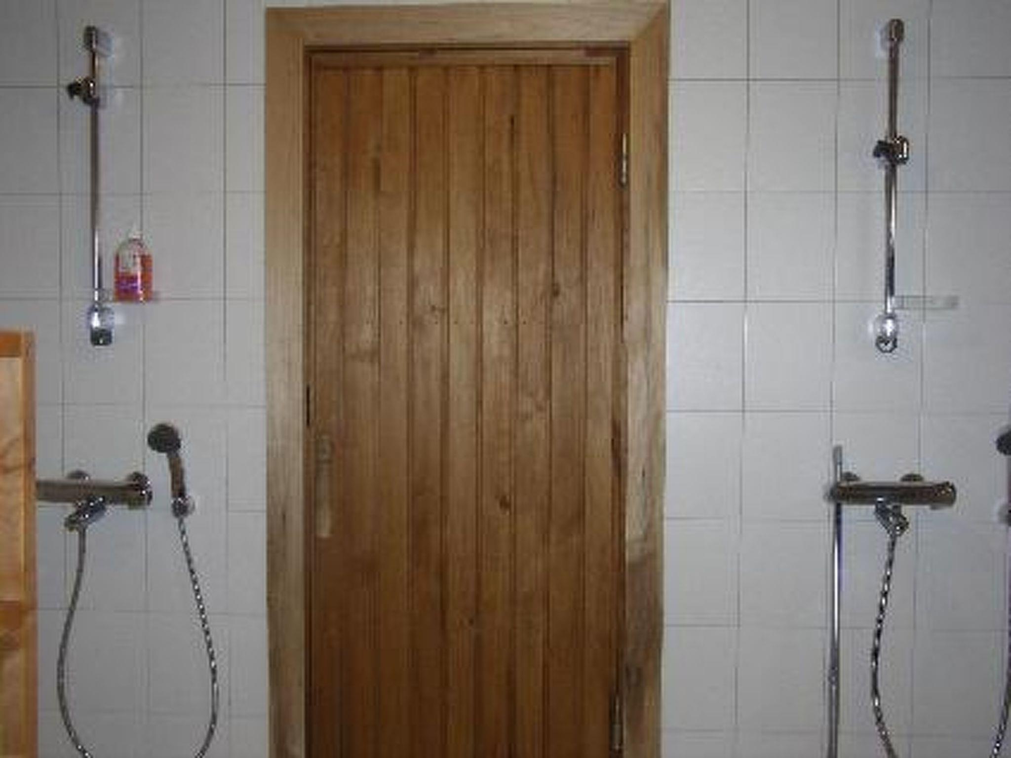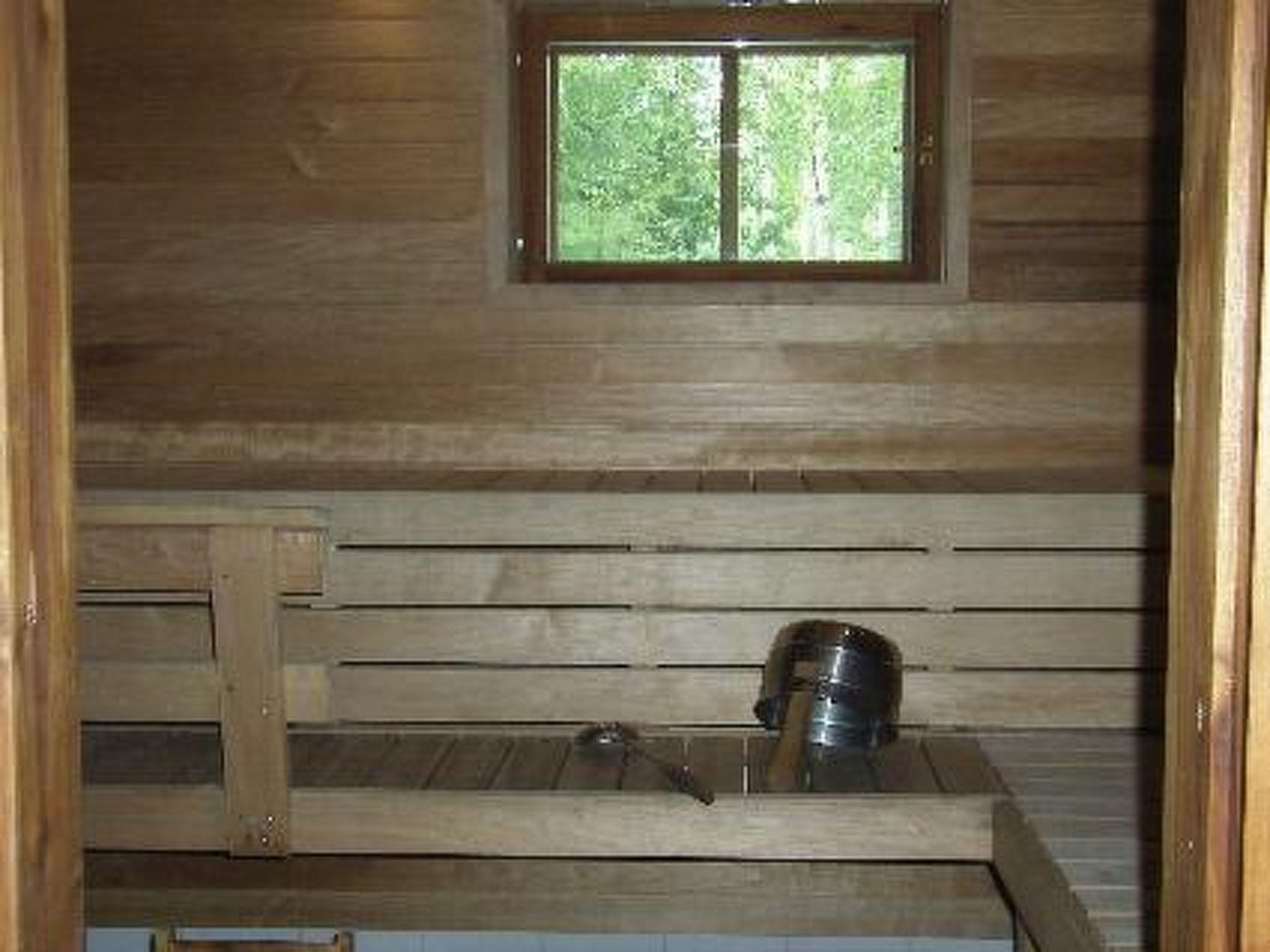 Lakeshore sauna (50 m²) with room with fireplace/kitchen, sauna (wood-burning stove), washroom, dressing room and large terrace. The building has an electric hot plate, electric fridge, heat-storing fireplace, hot and cold water, and 2 showers.