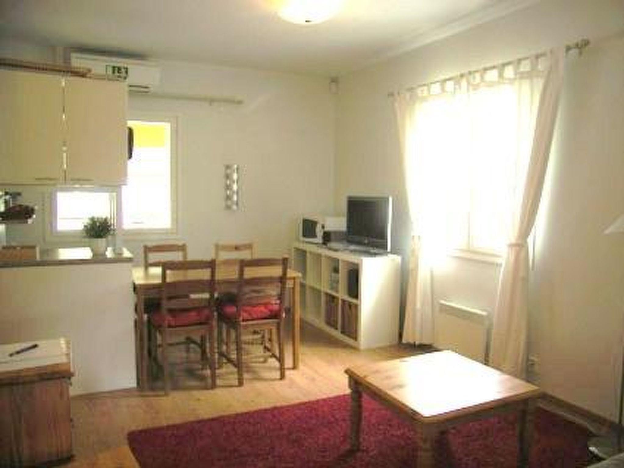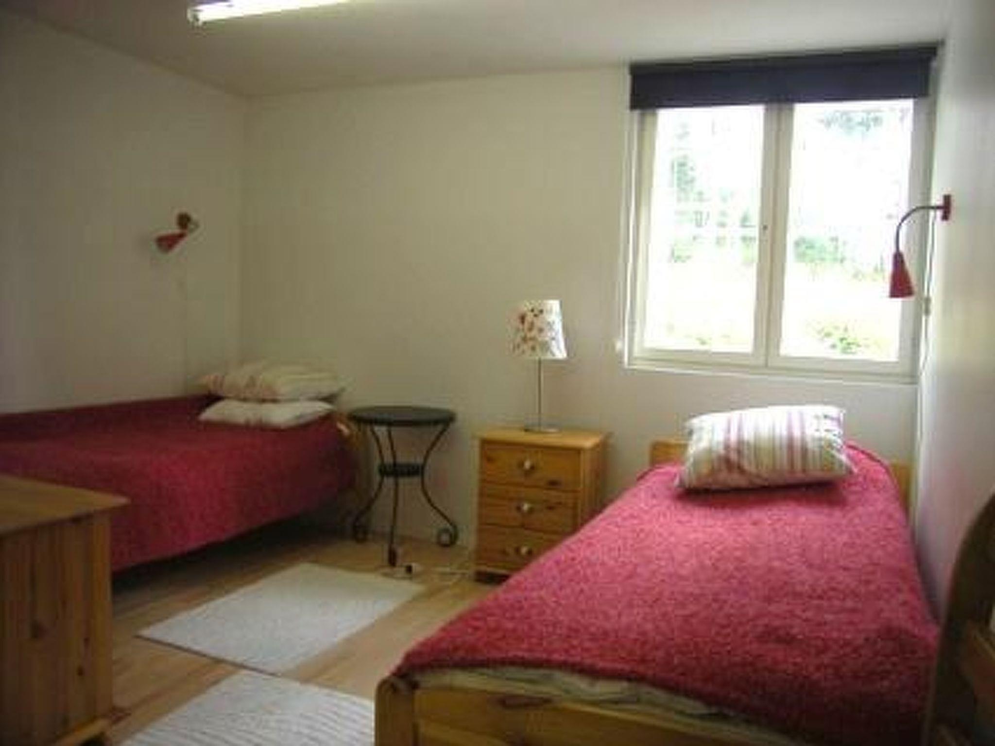 Three-storey log house, built 2007, with 7 separate rooms and common area. Upstairs: 2 apartments, each with bedroom 2+1 beds (one with double bed), living room with mini-kitchen, washroom, WC, microwave, TV, CD player. Between the 2 apartments is a lounge area/library with a sofa and armchairs for 10 persons, as well as 2 extra beds.