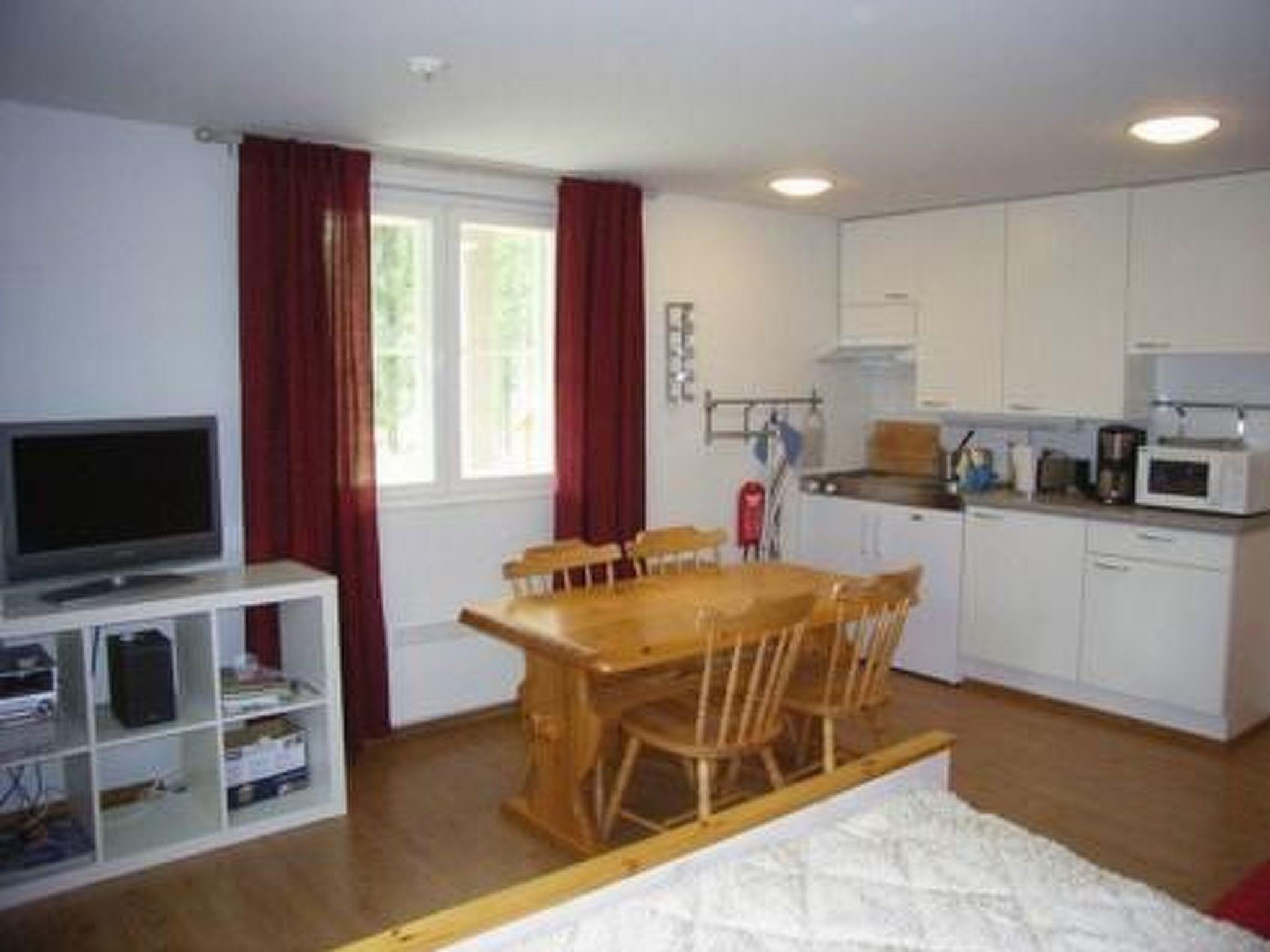 Middle floor: three apartments, 2 of which have a bedroom 2 beds, mini-kitchen in living room area, washroom, WC, microwave, TV, CD player. The third apartment is a one-roomed flat with a bunk (1+1 beds) and a WC for disabled persons. The middle floor includes the chalet’s salon, which functions as either a conference room or a dining room. There is a good kitchen attached to the salon.