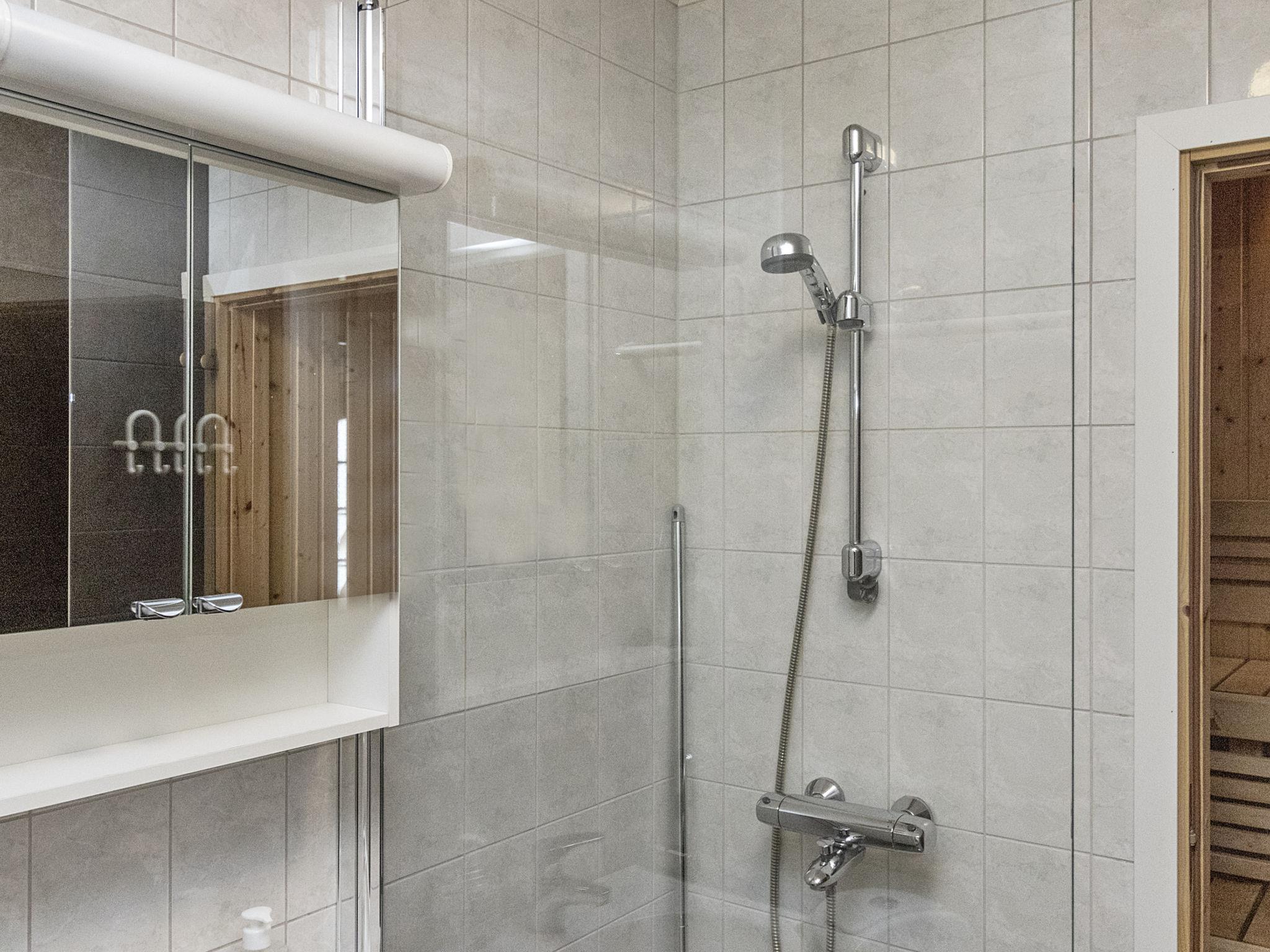 In the ground floor kitchen/living room, bed room 2 beds, washroom, sauna (elect. stove), WC, open porch. Upstairs loft (30 sqm) with 4 beds. Child safety gate at the top of the stairs. Air source heat pump.