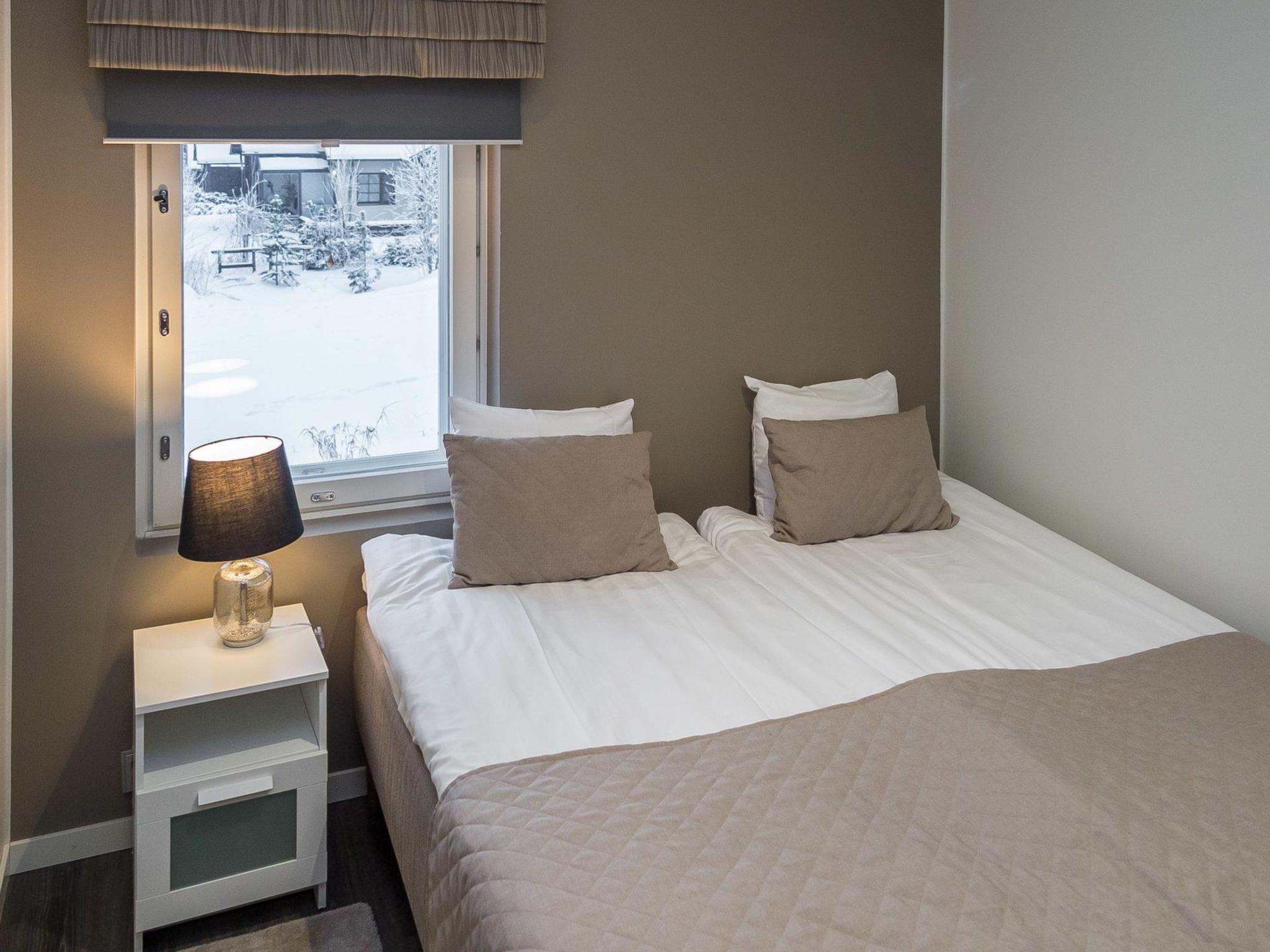 High standard apartment situated in the heart of Tahko center, kitchen-living room sofa bed 2 extra beds, bedroom with double bed, bedroom with 2 beds, shower room, WC, sauna (electric stove), glazed balcony. 2 TVs, one in the living room and another in the bigger bedroom. Air-conditioning and wireless Internet. In smaller bedroom there might not be window.