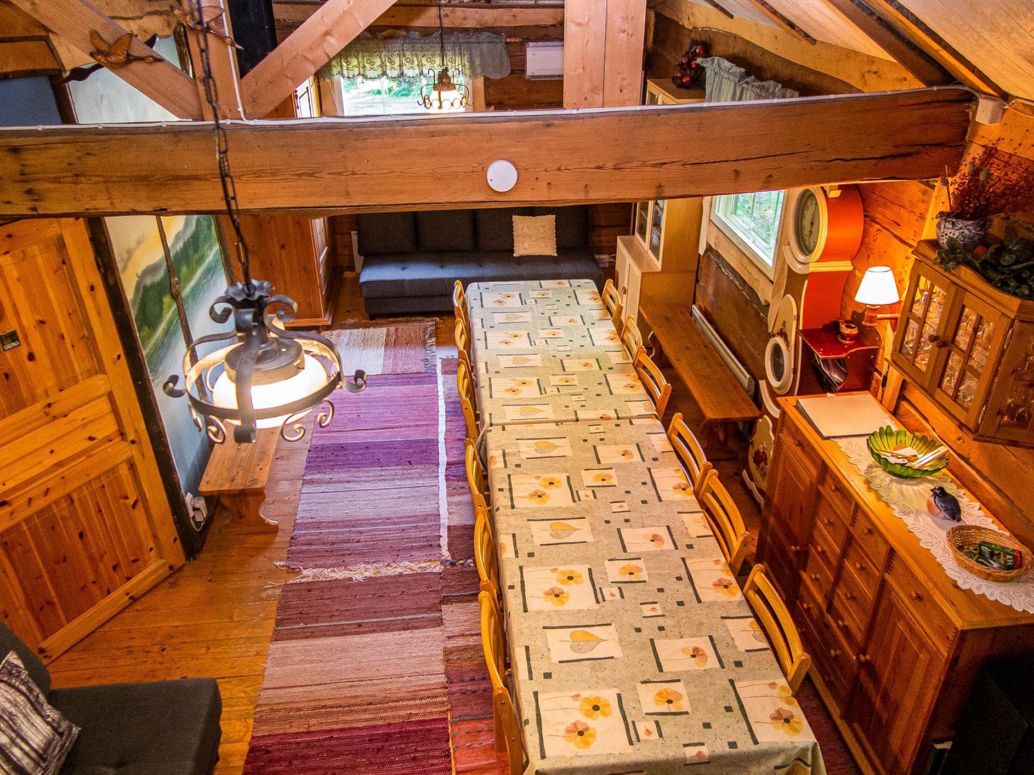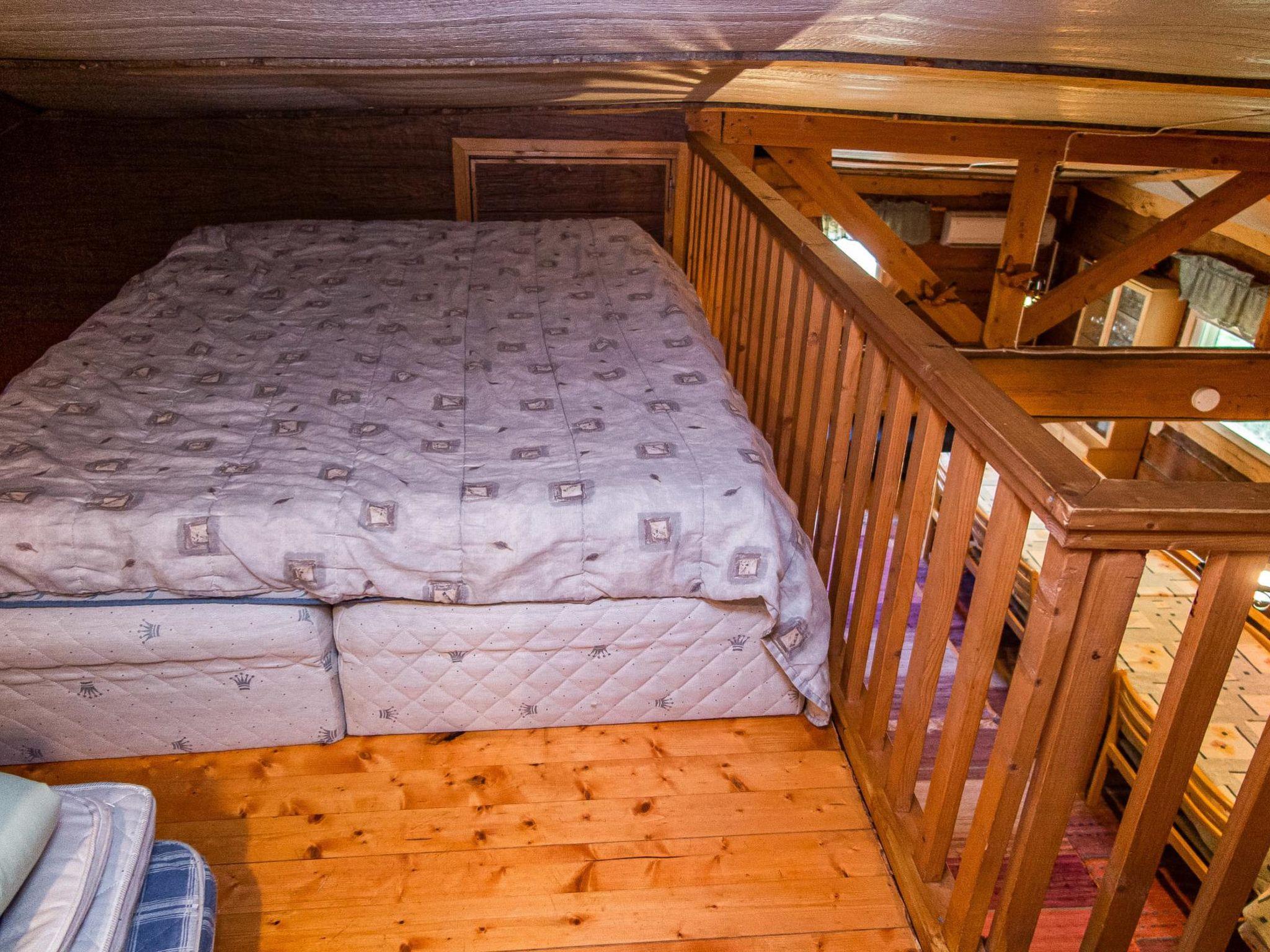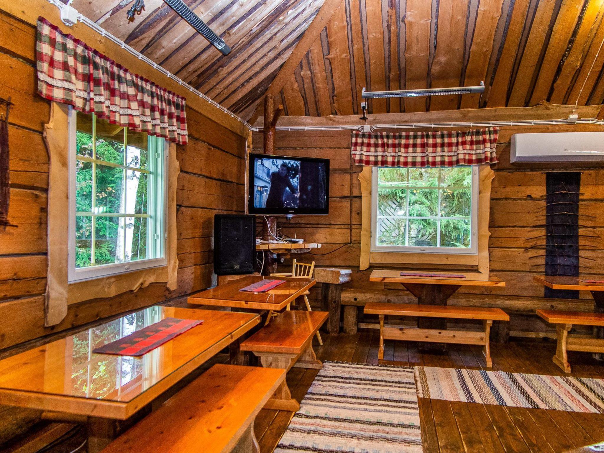 Log cabin 1997, really big living room (approx. 60 sq m), in the center of the living room there is a barbeque area, another living room with bunk bed, 2 sofa beds = 4 extra beds, shallow upstairs sleeping alcove (avg. height 1.7 m) with a double bed, low loft ( avg. height 1.3 m) with a double bed. The washing room with toilet and two showers, also separate toilet, sauna (wood-burning stove).