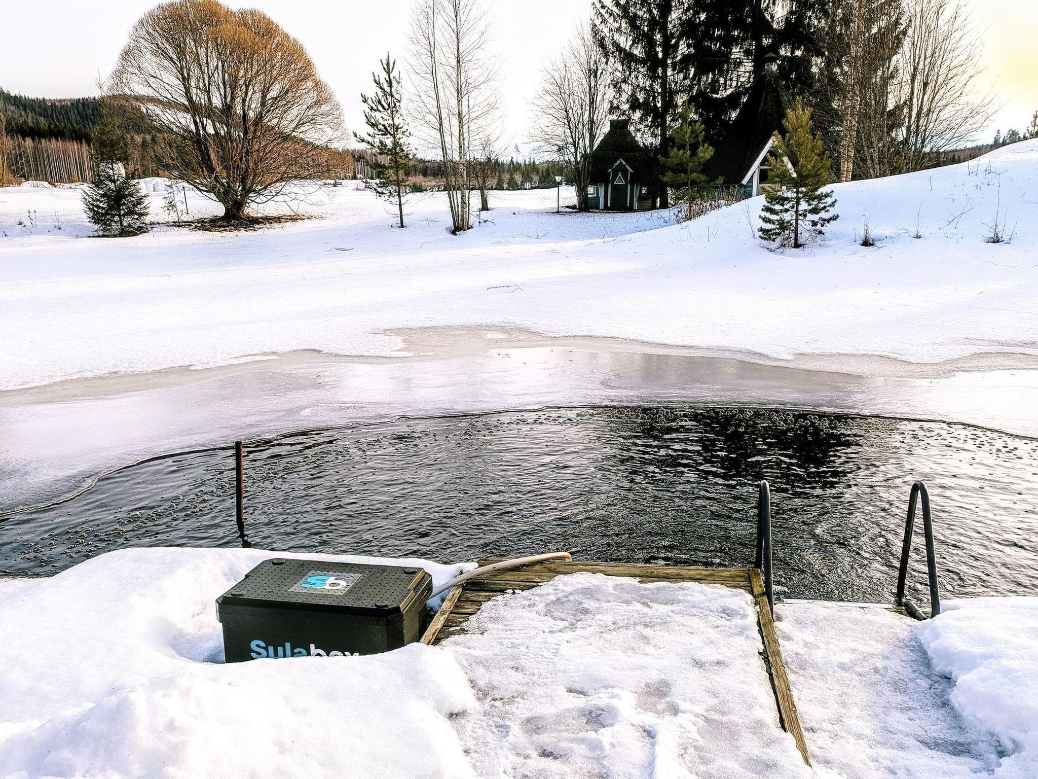65 km northeast of Kuopio, artificial pond 25 m (size 20 x 30 meters), the deepest point of the pond is 3 meters, deep shore, the water flows through the pond. Artificial pond and dock are shared with neighboring cottage 13344. In winter, there is possibility for ice dipping in artificial pond. Ice hole stays ice-free by sulabox-pump.