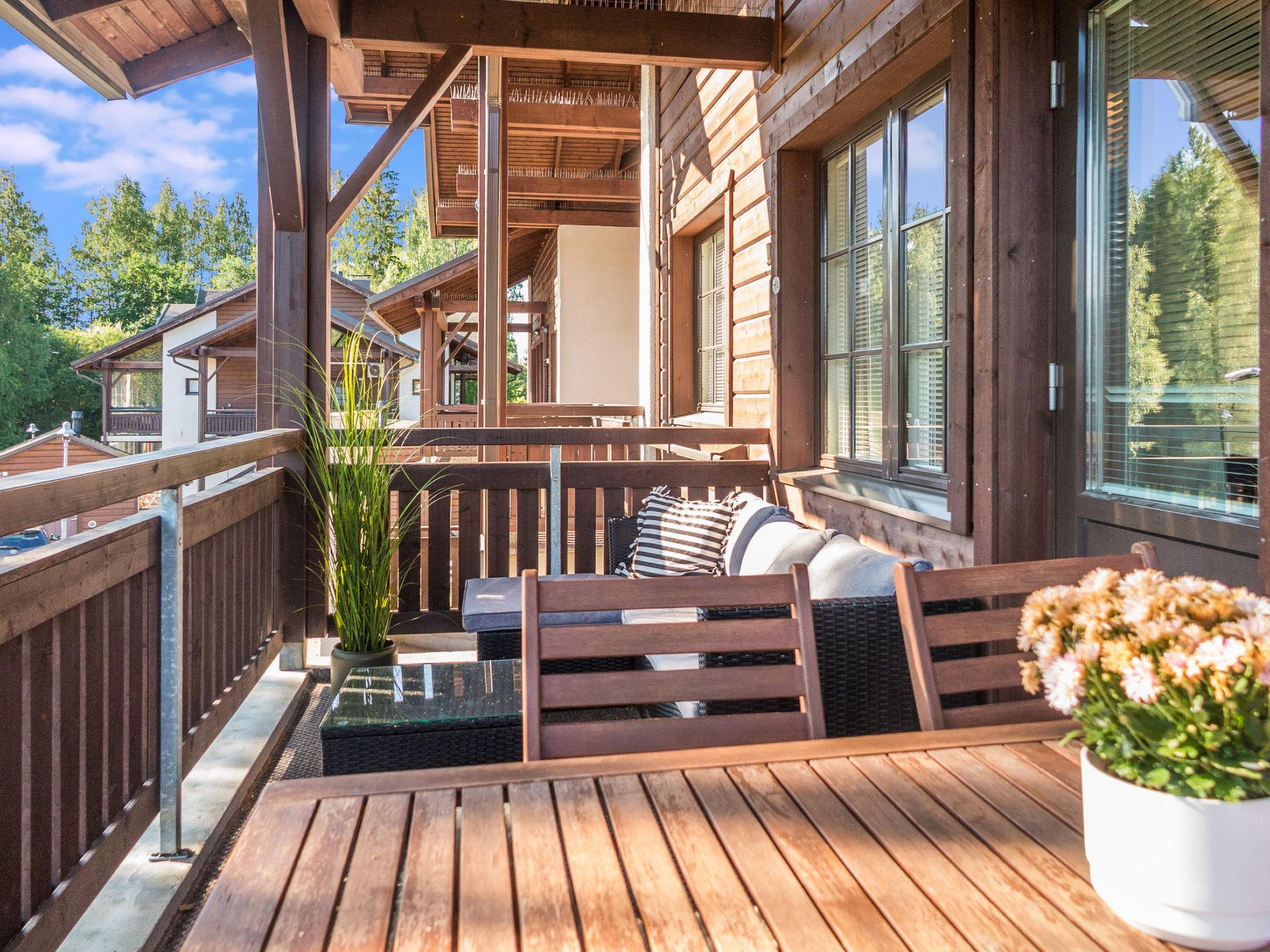 The apartment also has a cozy balcony of about 10m2 with a view of the golf course and a locked outdoor storage room for storing skis and golf equipment.