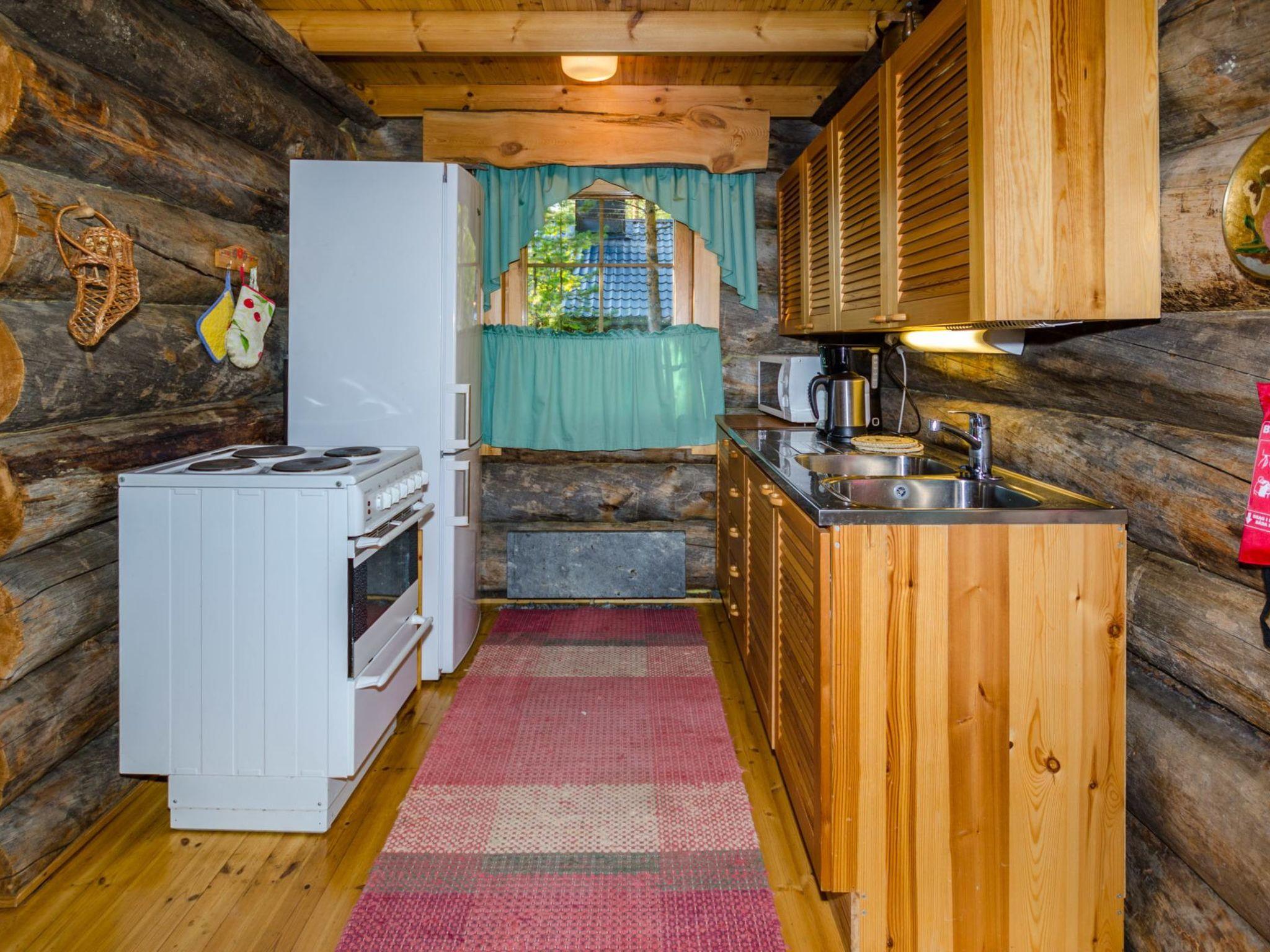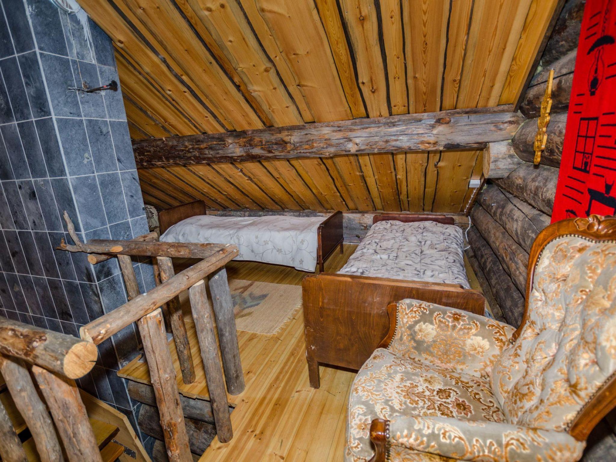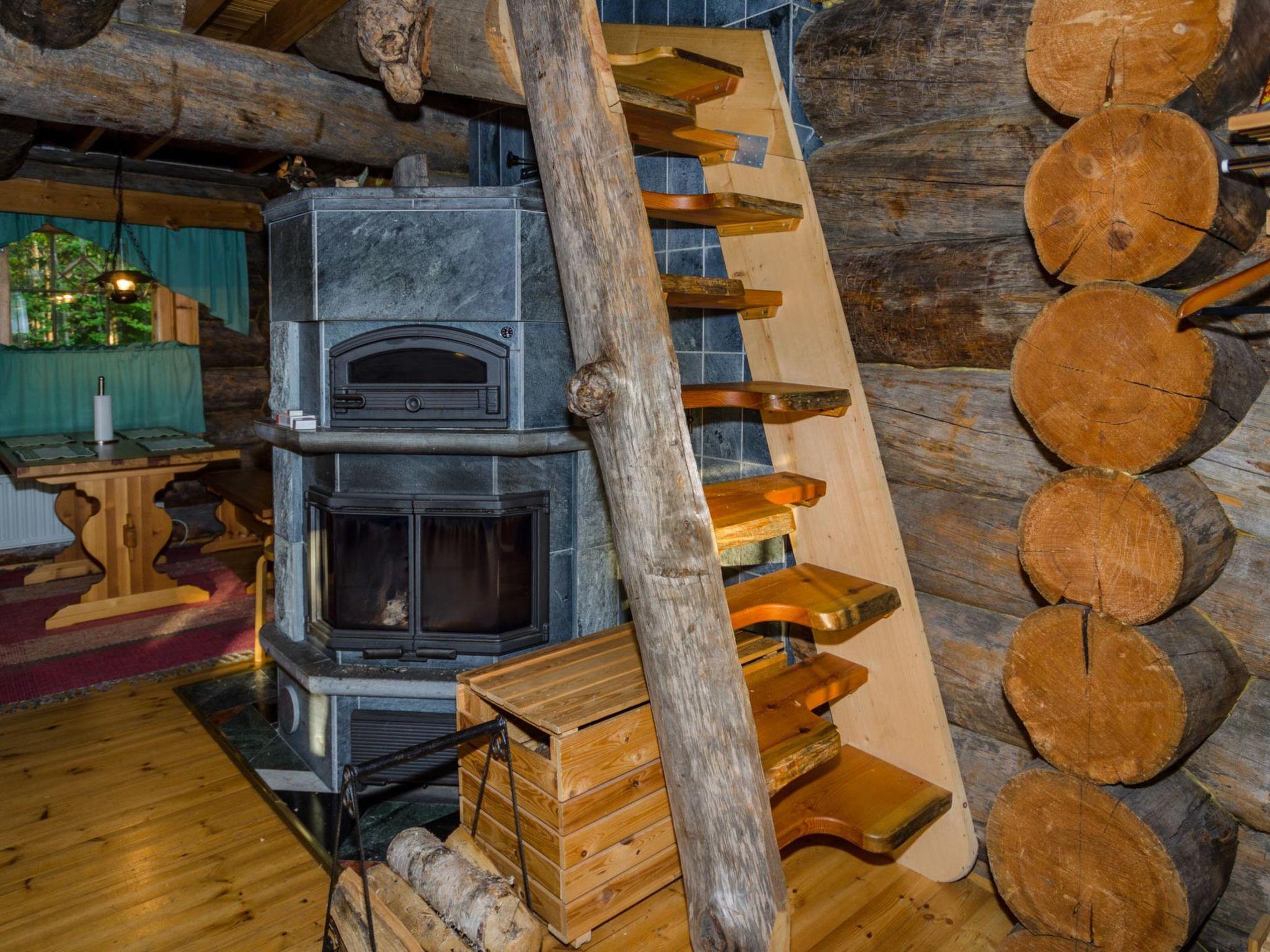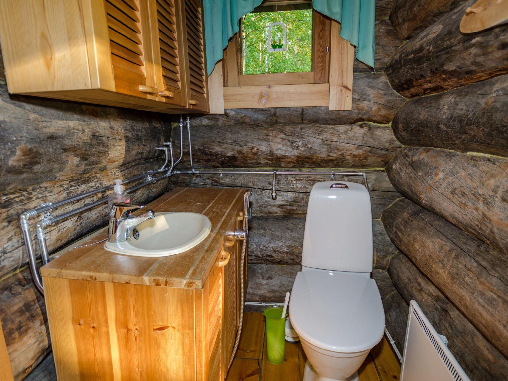 80 km north of Joensuu, L.Pielinen (871,2 km2) 20 m, shallow, sandy bottom, own shore and boat. Log cottage 1996, kitchen-living room with convertible sofa, sleeping alcove (no curtains) with convertible sofa, sleeping gallery with double bed and two separate beds, terrace and balcony. Separate sauna (wood heated stove), shover in the sauna (not separate washroom), dressing/fireplace room. The water of the shower gets warm, when the sauna is heated. The entrance to the sauna is through the veranda.