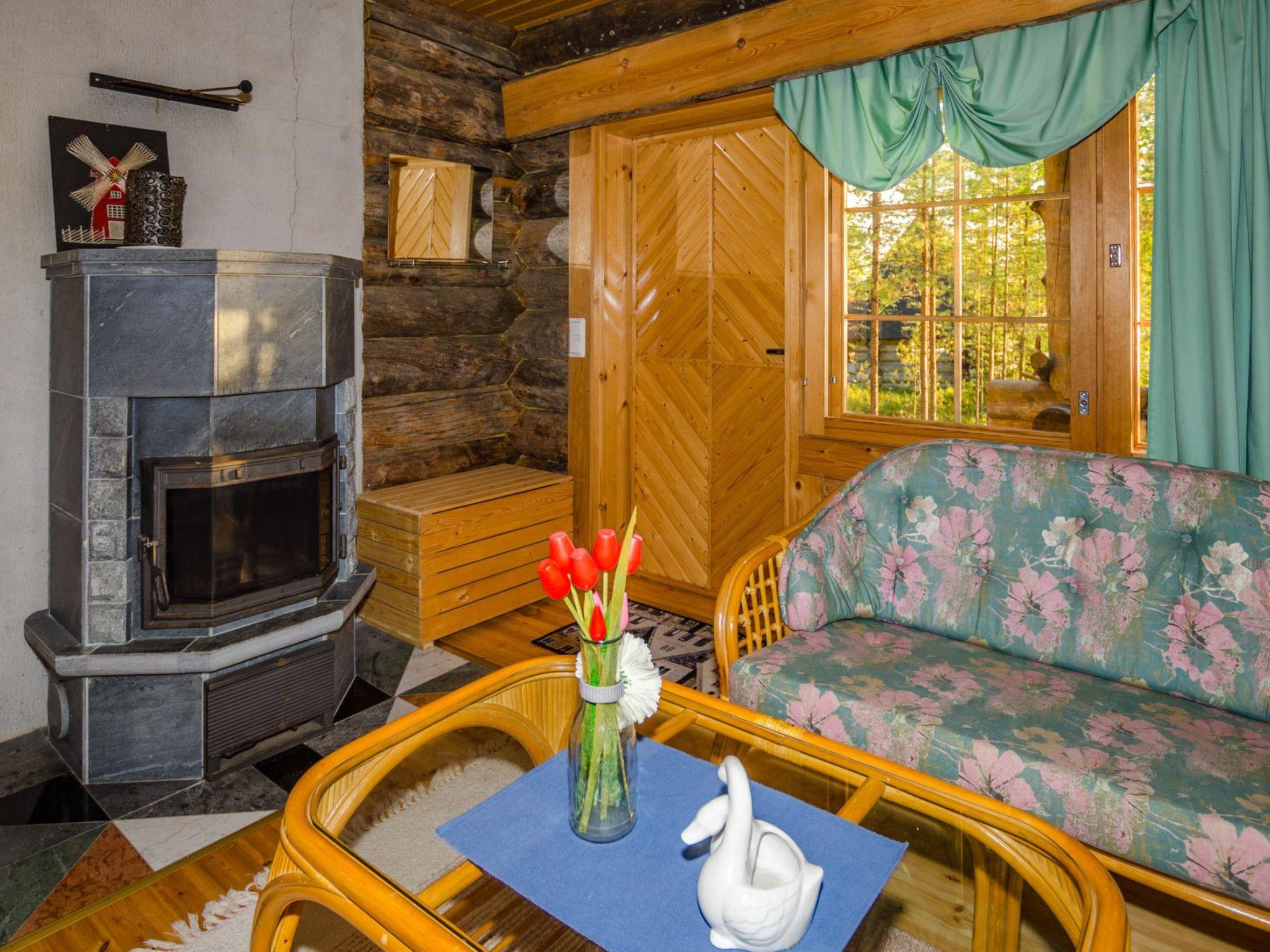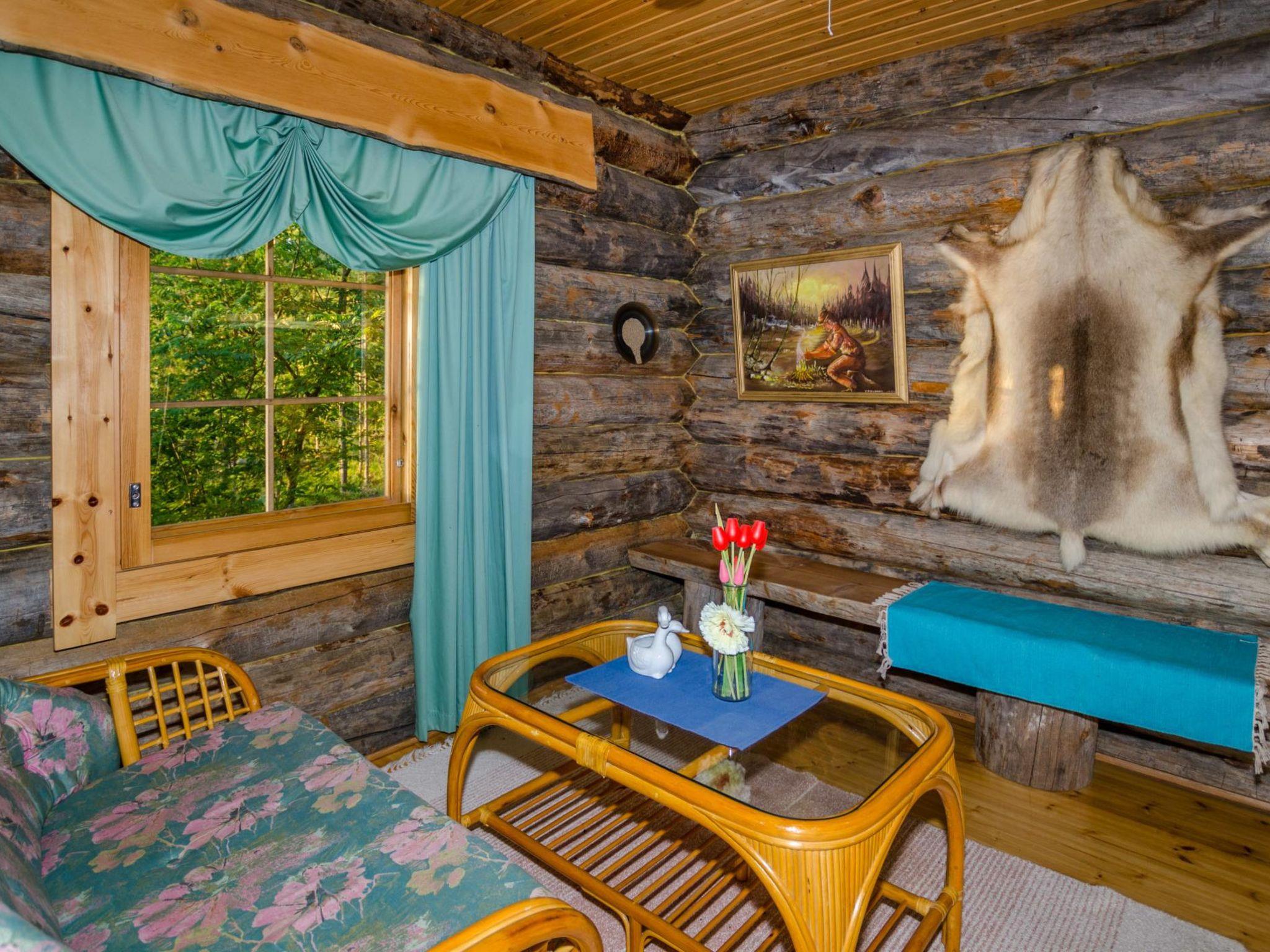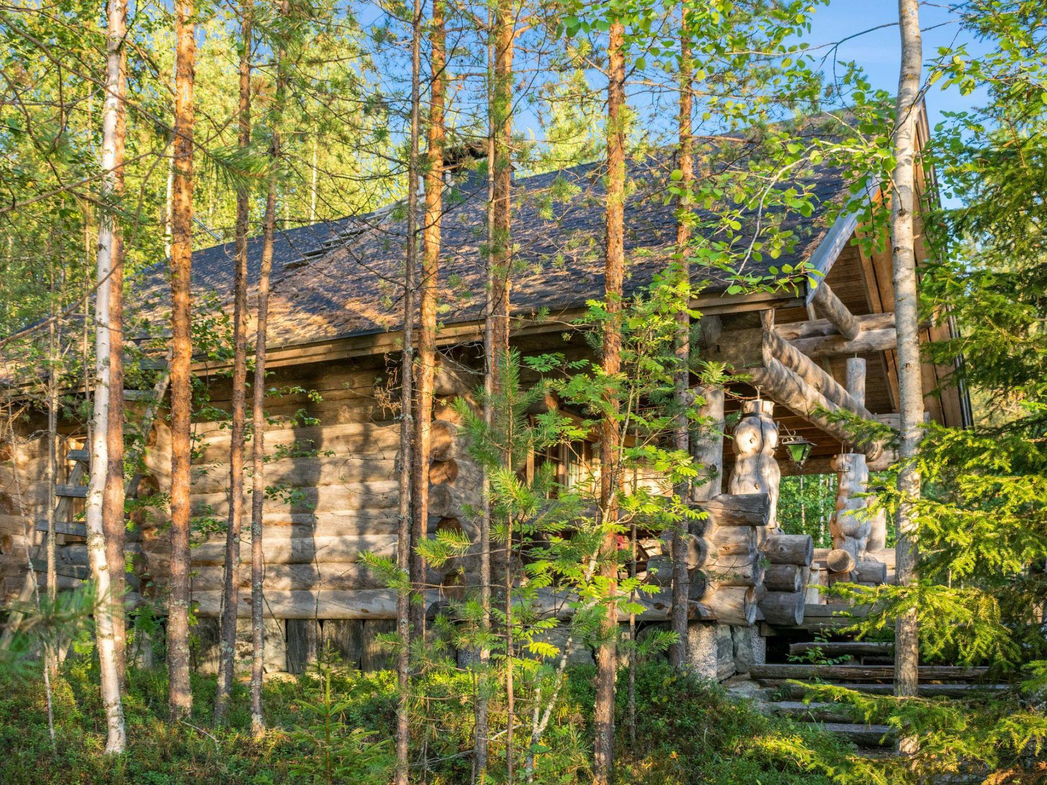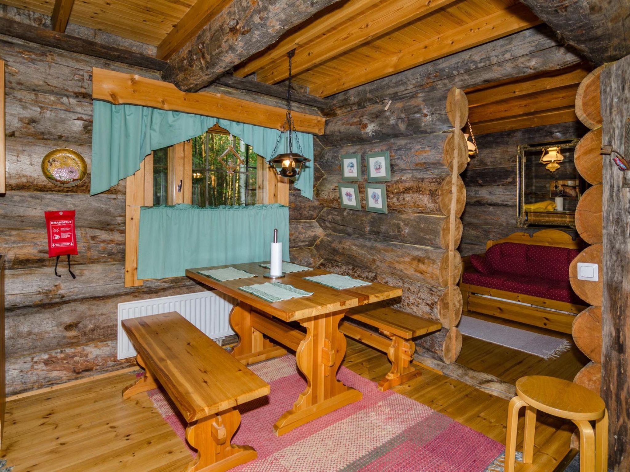 80 km north of Joensuu, L.Pielinen (871,2 km2) 20 m, shallow, sandy bottom, own shore and boat. Log cottage 1996, kitchen-living room with convertible sofa, sleeping alcove (no curtains) with convertible sofa, sleeping gallery with double bed and two separate beds, terrace and balcony. Separate sauna (wood heated stove), shover in the sauna (not separate washroom), dressing/fireplace room. The water of the shower gets warm, when the sauna is heated. The entrance to the sauna is through the veranda.