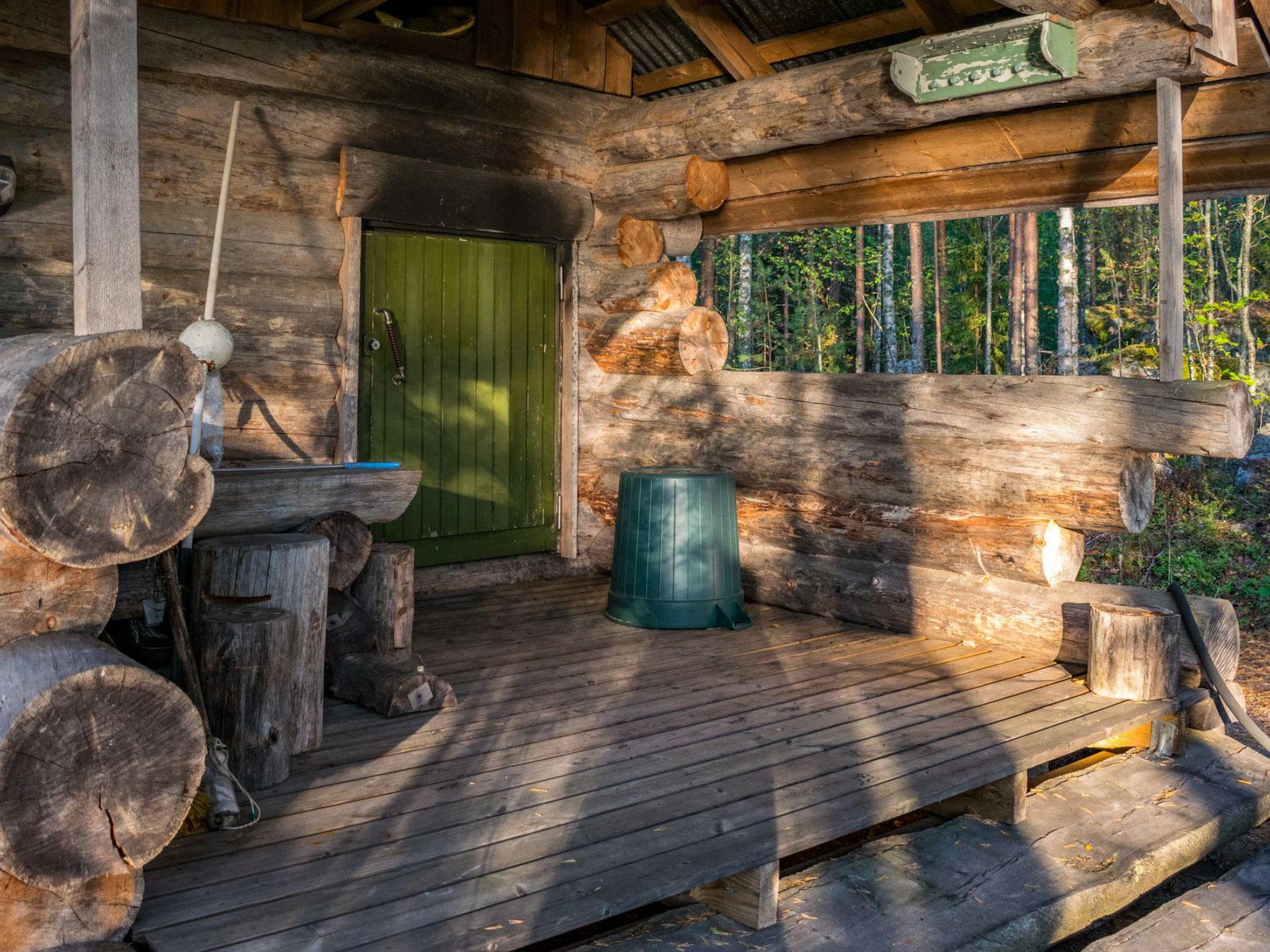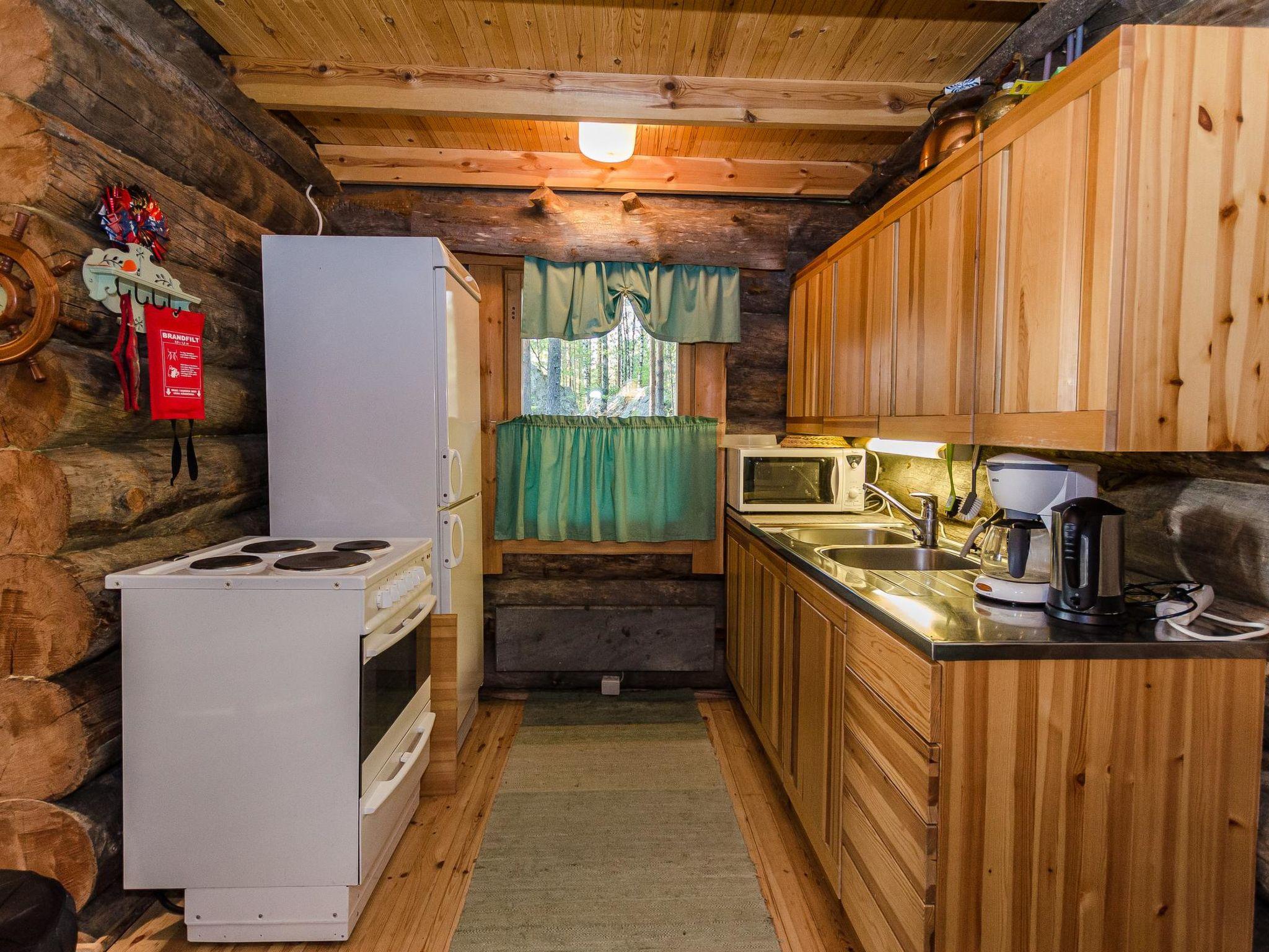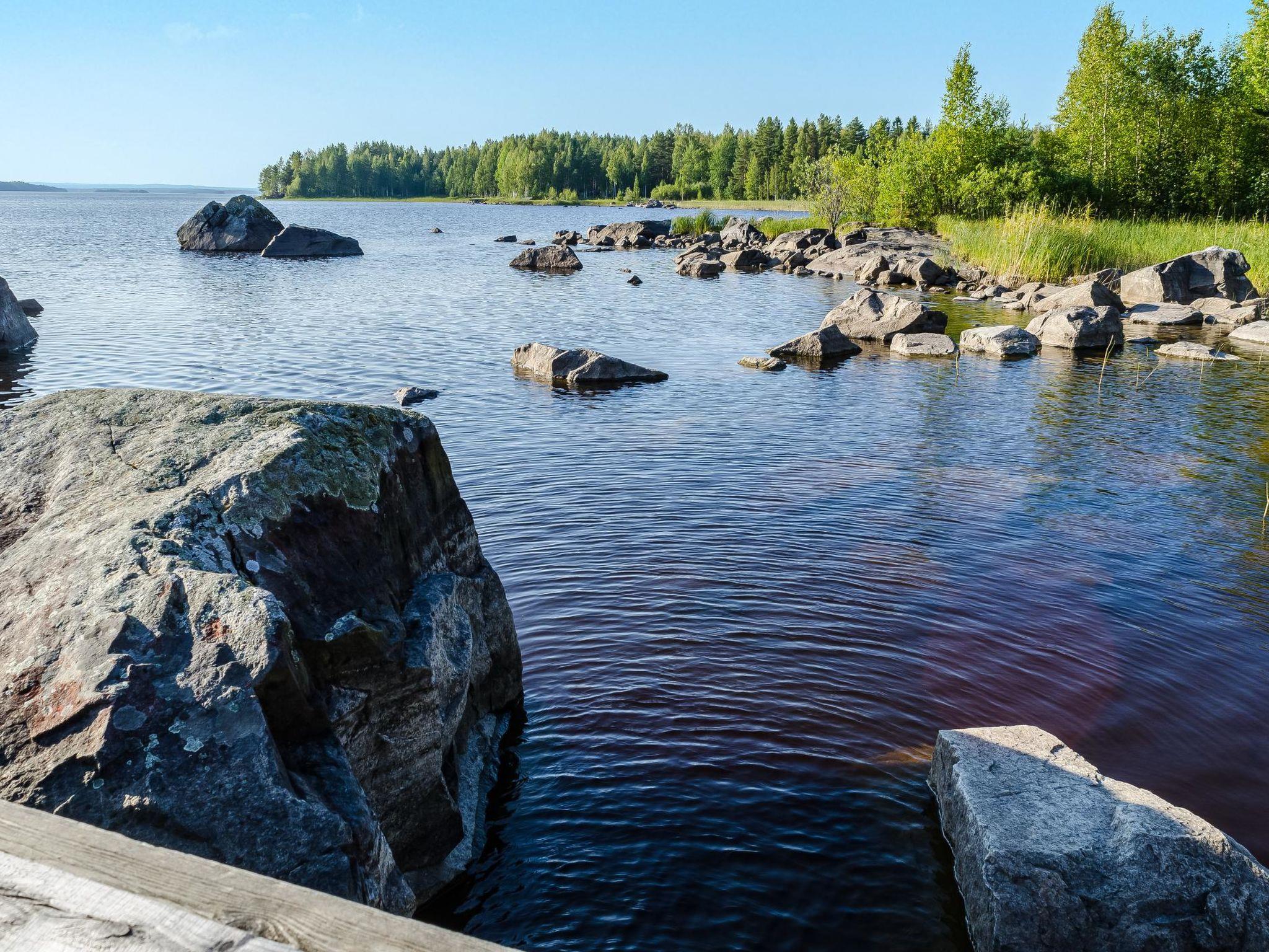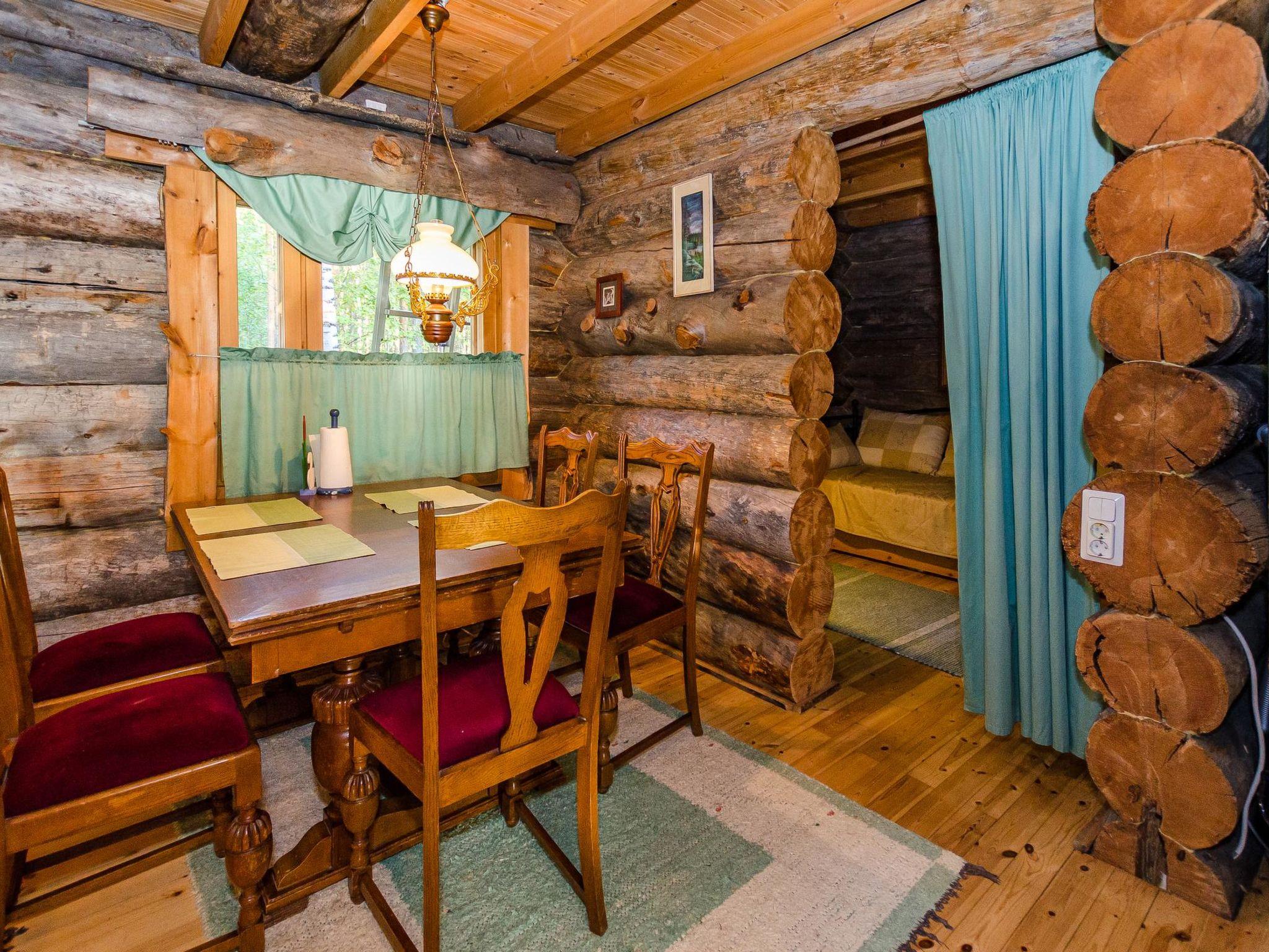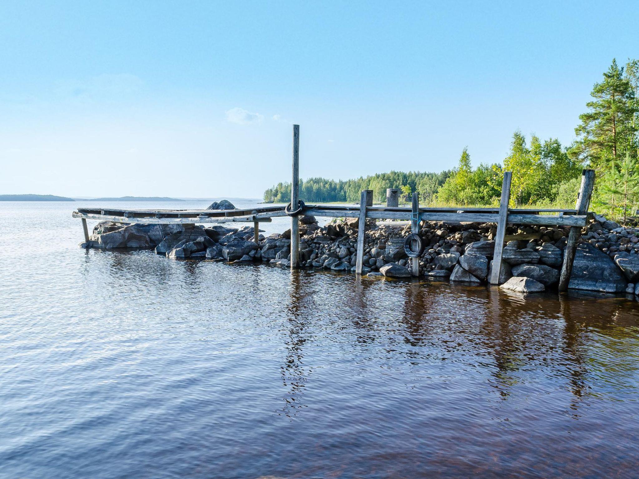80 km north of Joensuu, L.Pielinen (871,2 km2) 25 m, shallow, sandy bottom, own shore and boat. Log cottage 1997, kitchen-living room, sleeping alcove (with curtain) with convertible sofa, sleeping gallery with double bed and convertible sofa, terrace and balcony. Separate sauna (wood heated stove), shower in the sauna (not separate washroom), dressing/fireplace room. The water of the shower gets warm, when the sauna is heated.