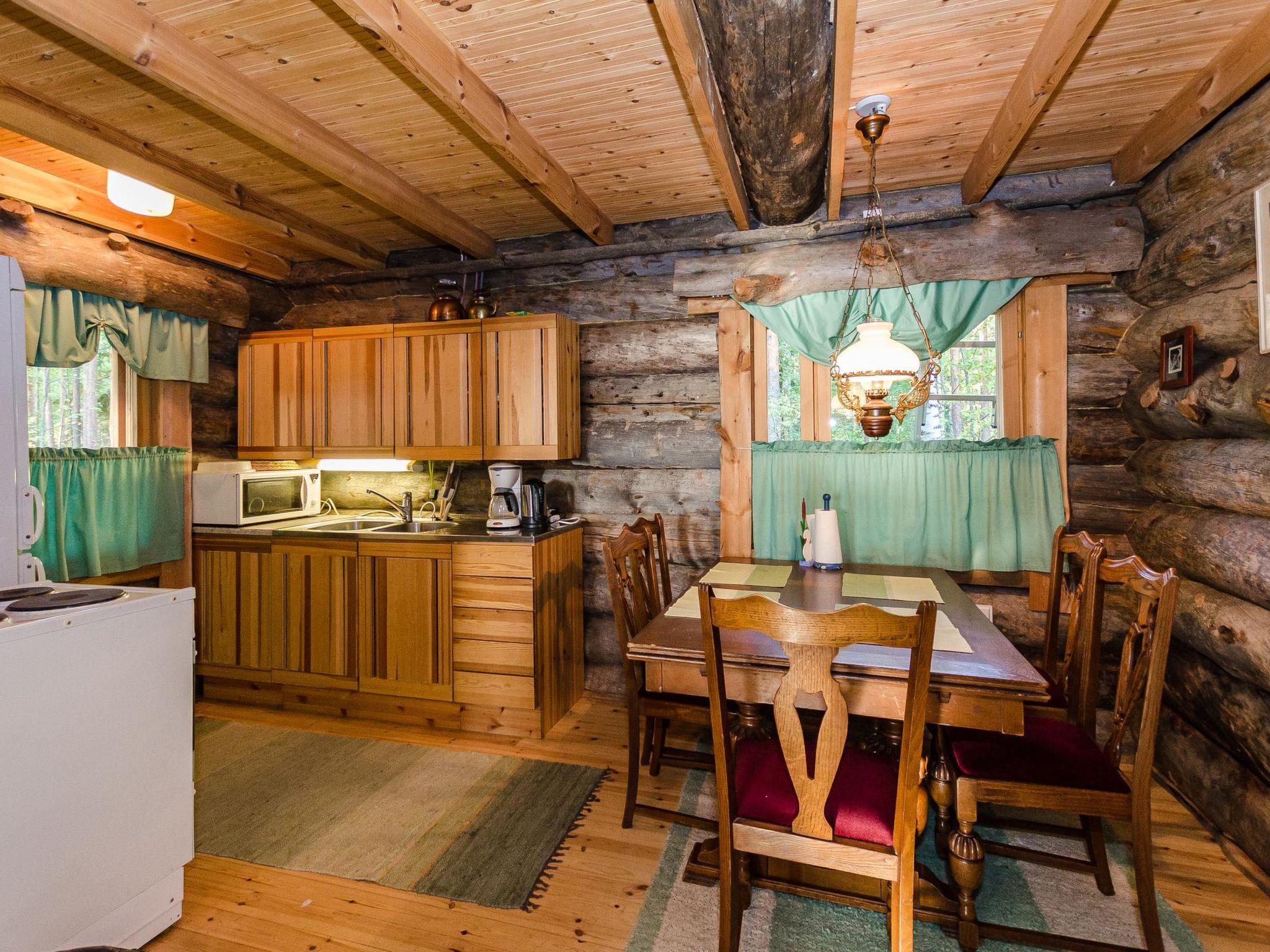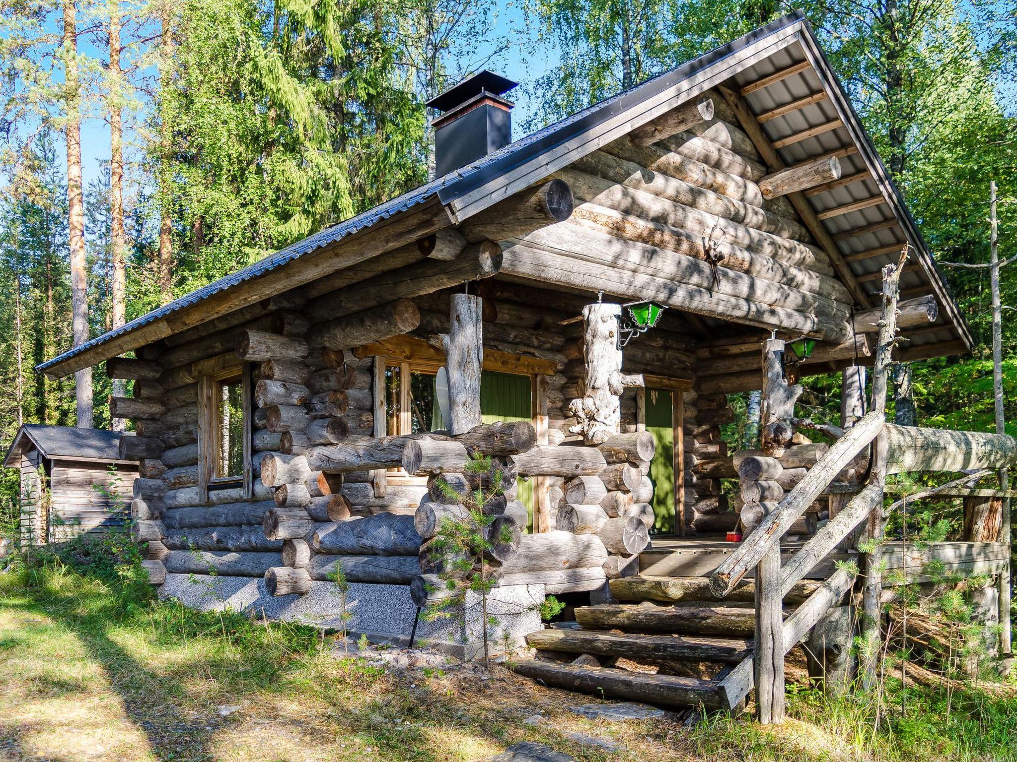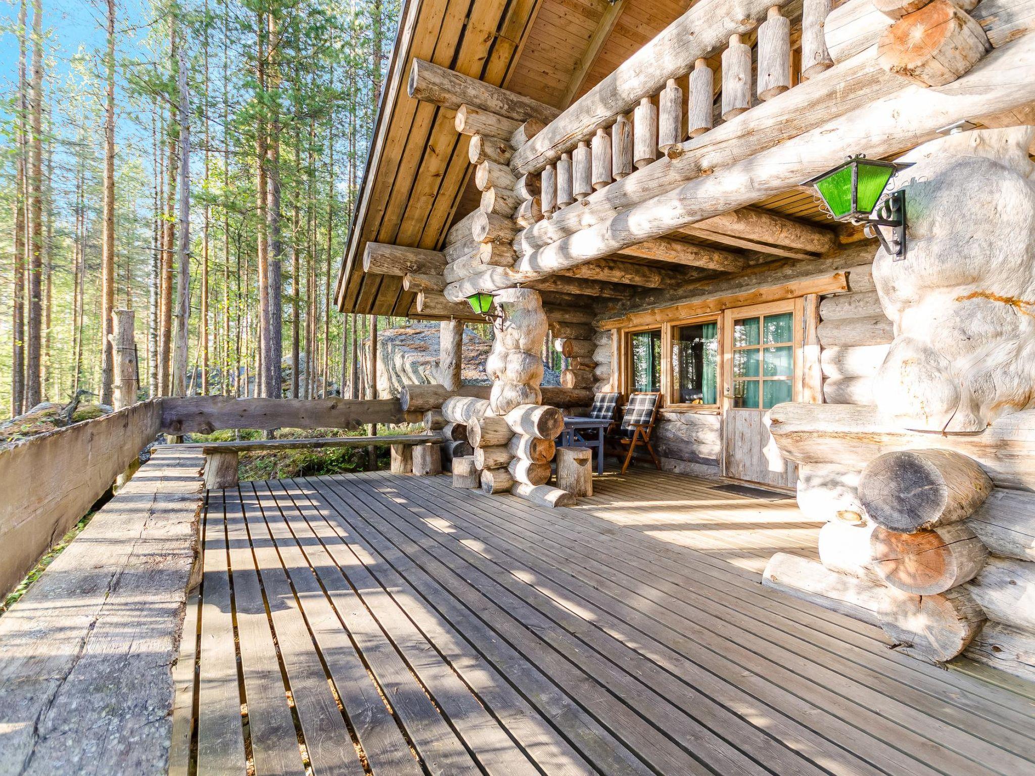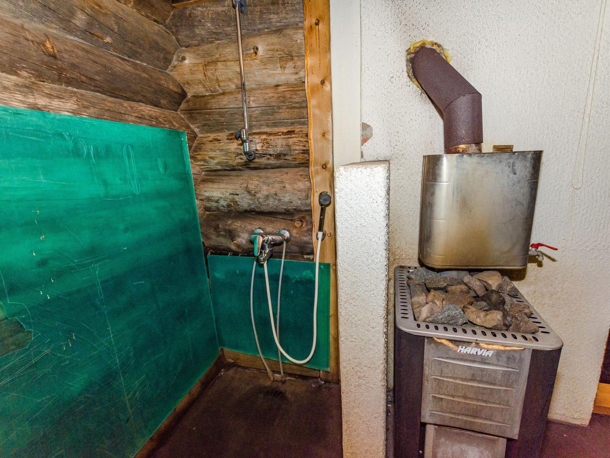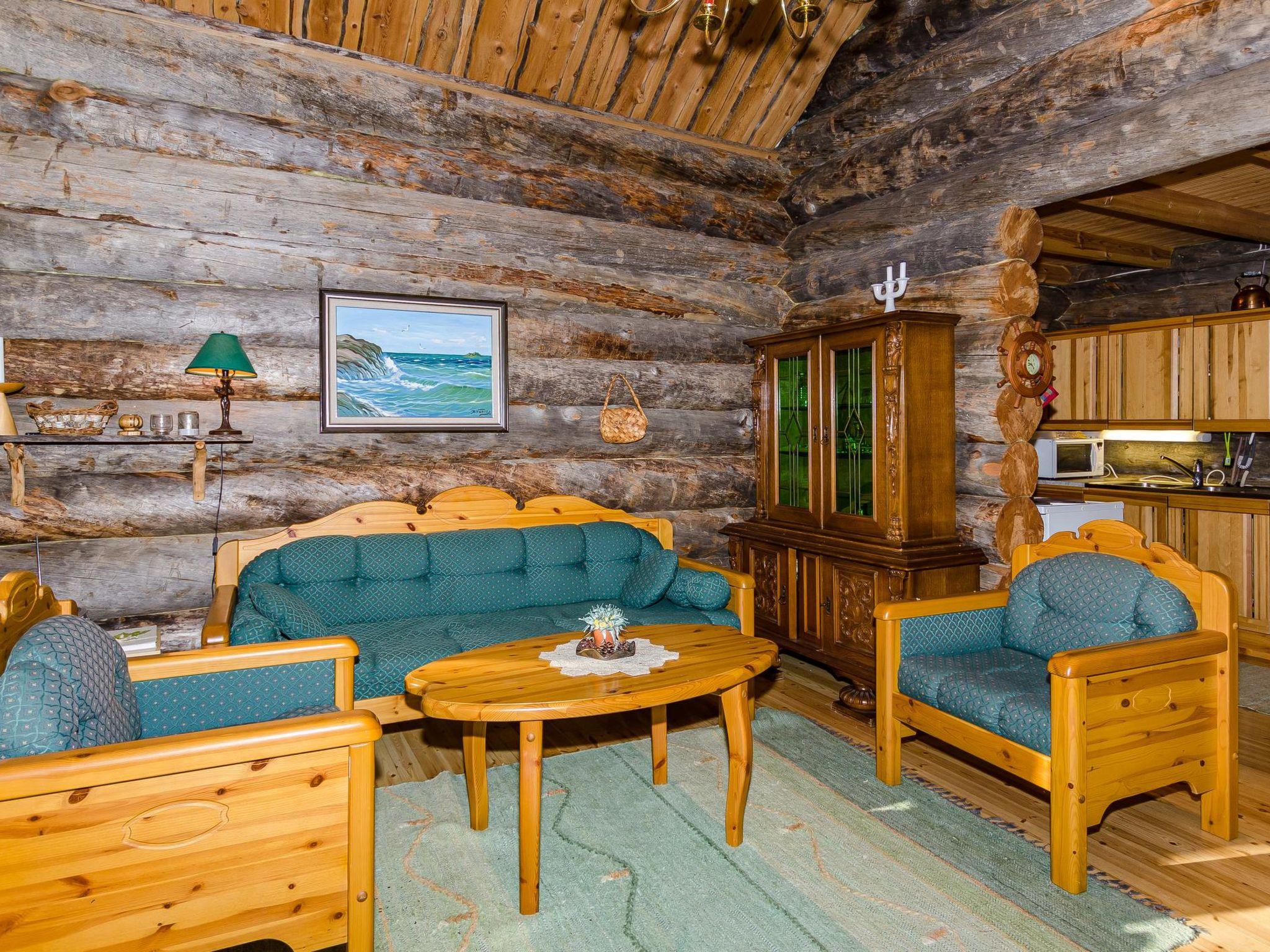 80 km north of Joensuu, L.Pielinen (871,2 km2) 25 m, shallow, sandy bottom, own shore and boat. Log cottage 1997, kitchen-living room, sleeping alcove (with curtain) with convertible sofa, sleeping gallery with double bed and convertible sofa, terrace and balcony. Separate sauna (wood heated stove), shower in the sauna (not separate washroom), dressing/fireplace room. The water of the shower gets warm, when the sauna is heated.