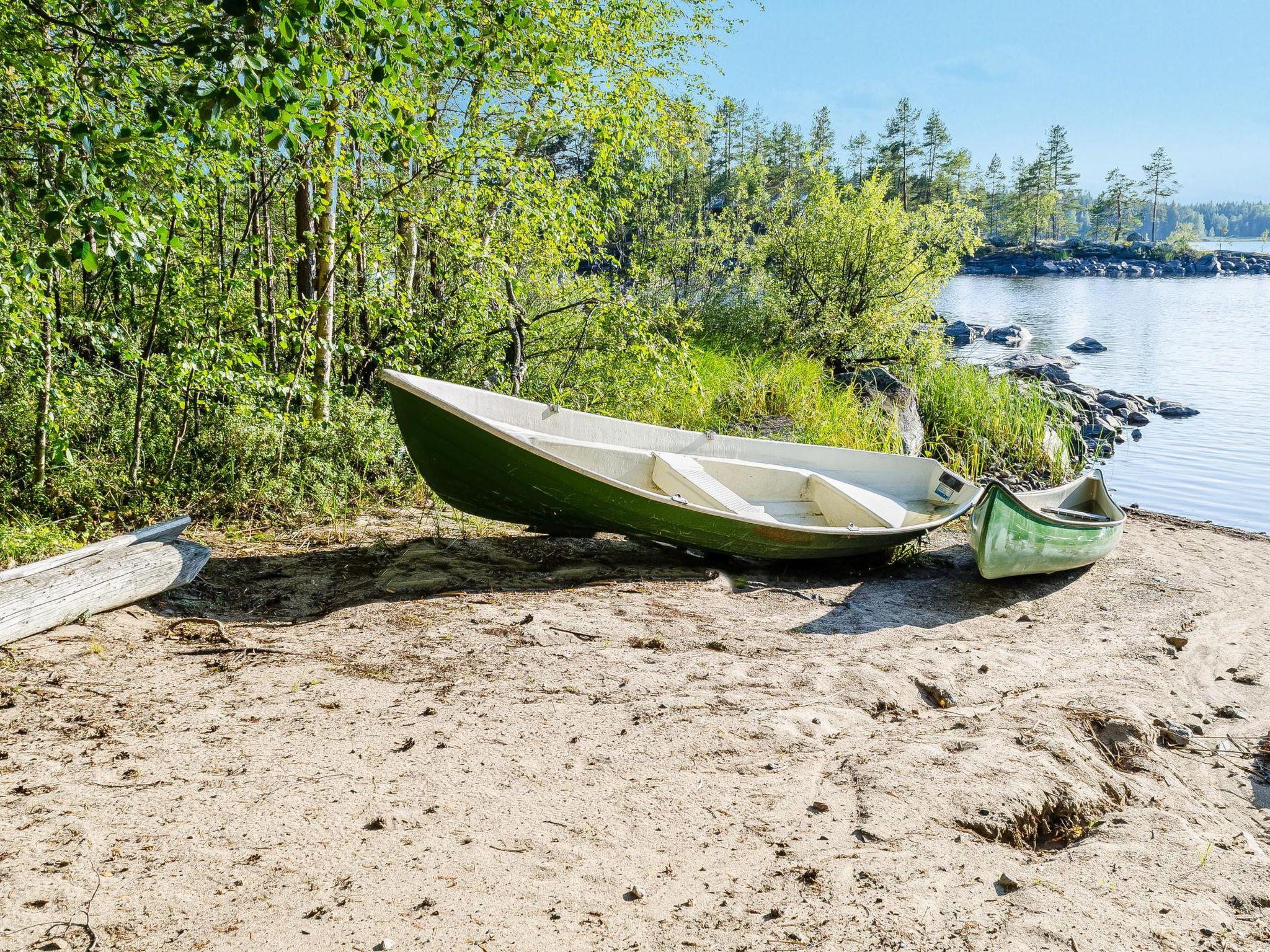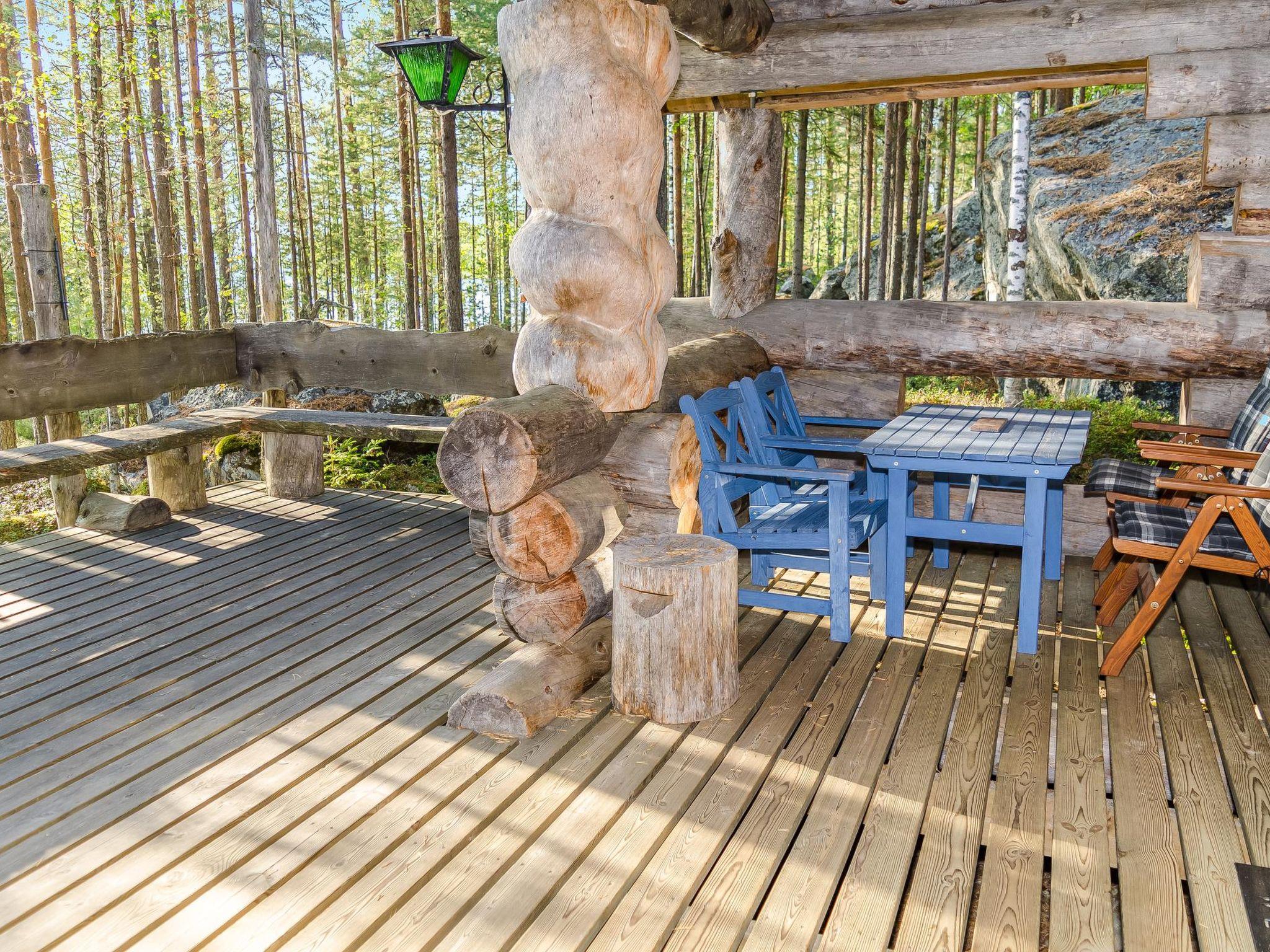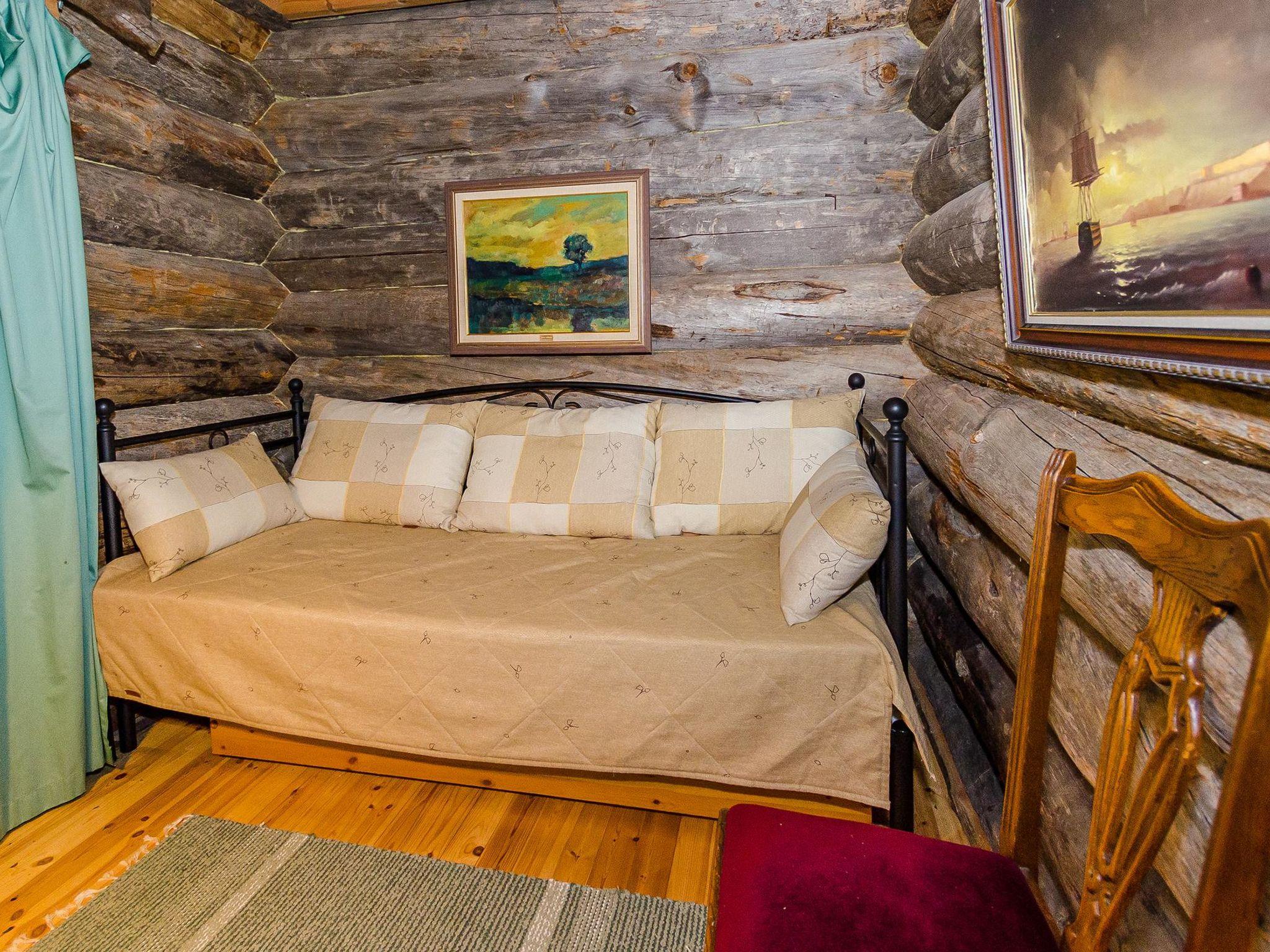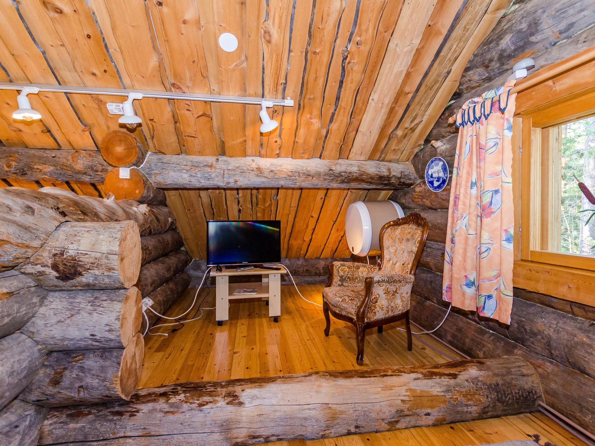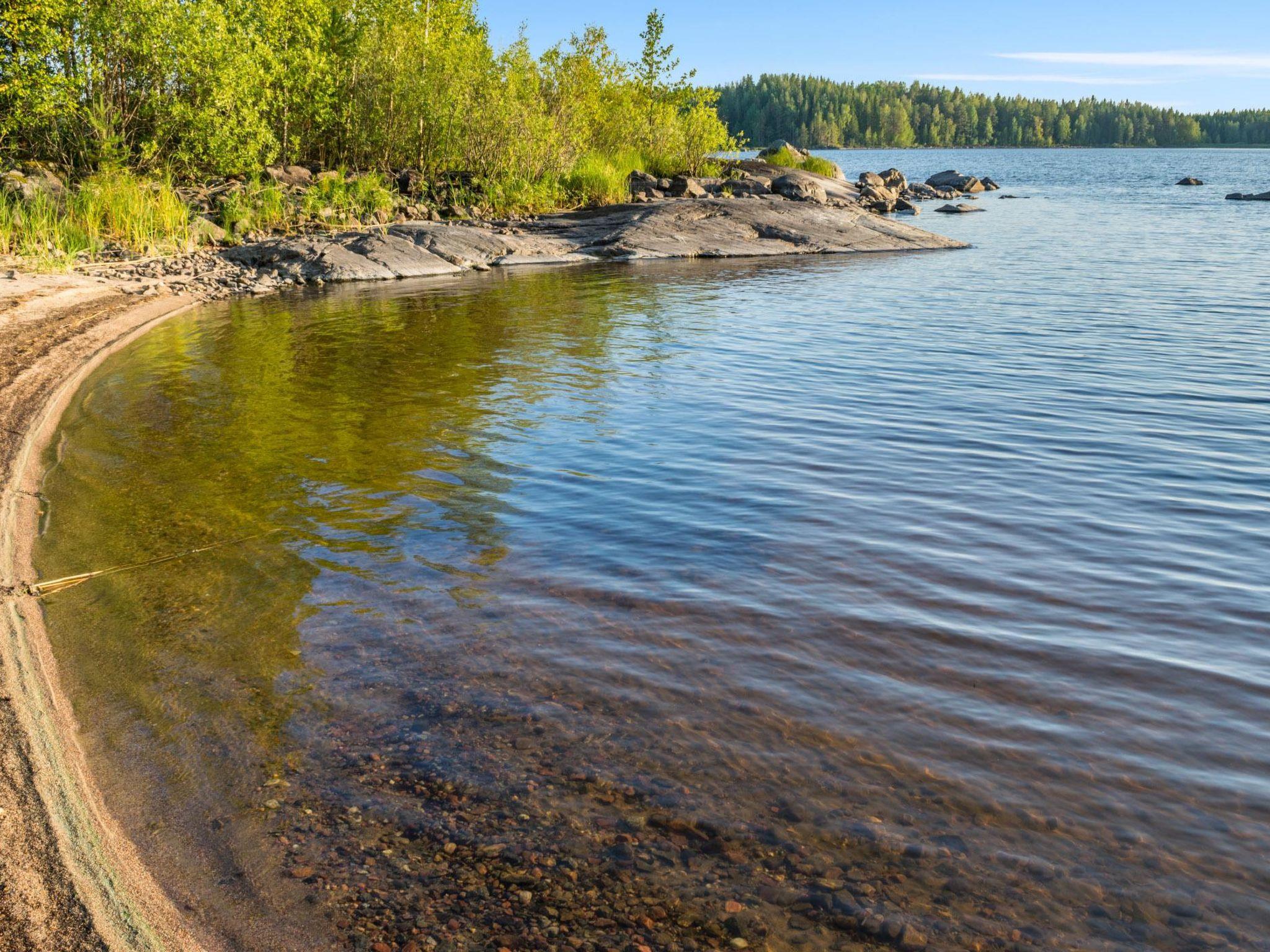 80 km north of Joensuu, L.Pielinen (871,2 km2) 25 m, shallow, sandy bottom, own shore and boat. Log cottage 1997, kitchen-living room, sleeping alcove (with curtain) with convertible sofa, sleeping gallery with double bed and convertible sofa, terrace and balcony. Separate sauna (wood heated stove), shower in the sauna (not separate washroom), dressing/fireplace room. The water of the shower gets warm, when the sauna is heated.