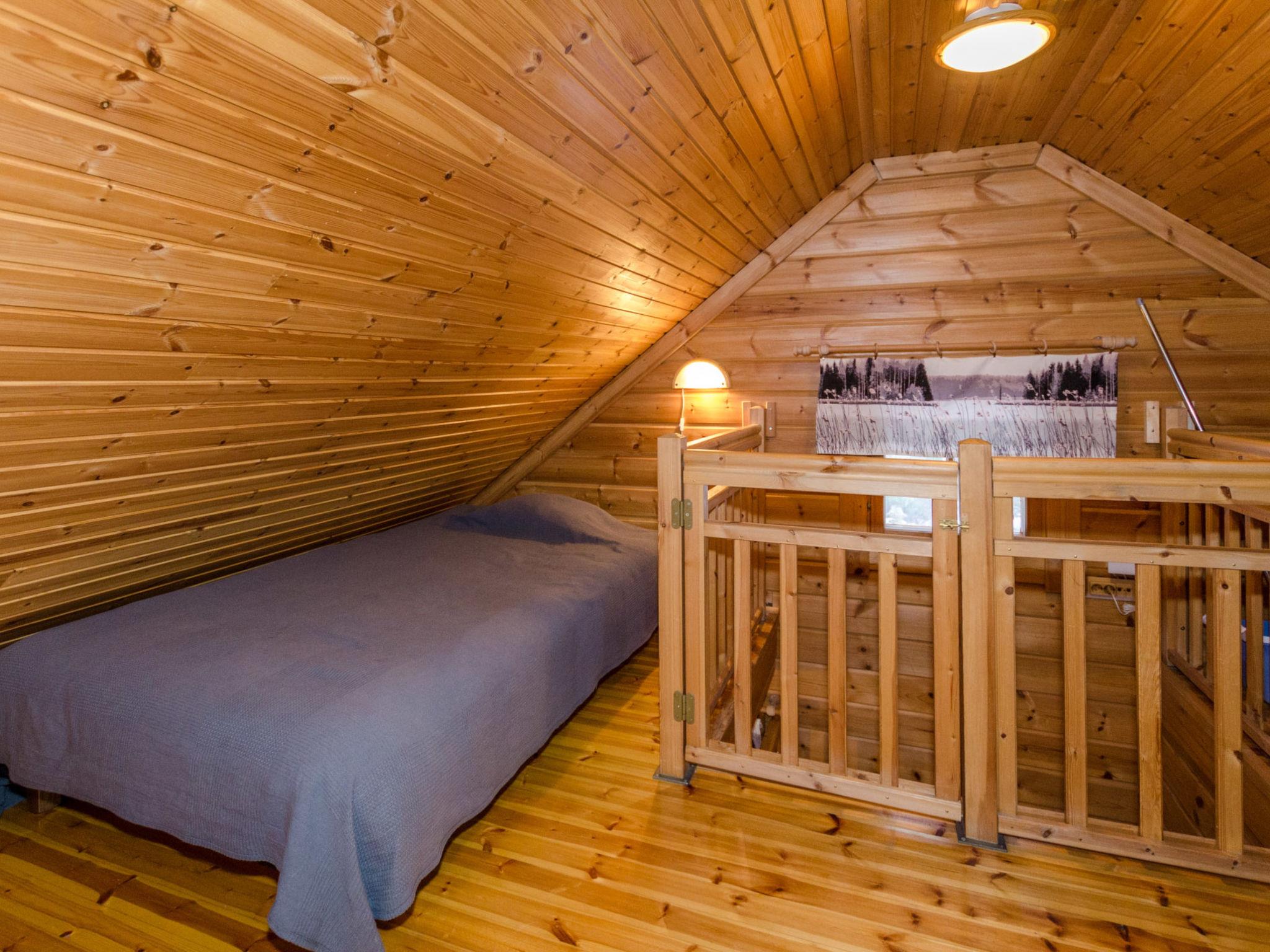 Log building 1999, living room with sofa, kitchenette, sleeping alcove with a double bed separated by a curtain, loft with 2 beds and 120 cm wide bed, washroom.