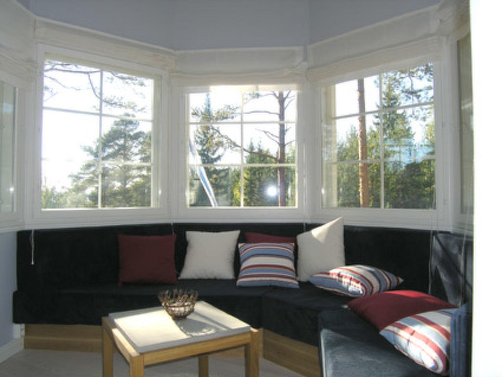 Wooden 2-storey chalet 2005, downstairs kitchen, living room, dinning room (table for 10) bedroom double bed, dressing room, washroom with 2 showers, sauna (elec. stove), infra-red sauna, toilet, lobby and two large open porches. Upstairs 2 bedrooms double bed in each, living room convertible sofa for two person, toilet and balcony. Tell us in advance if you want twin beds instead of double beds.