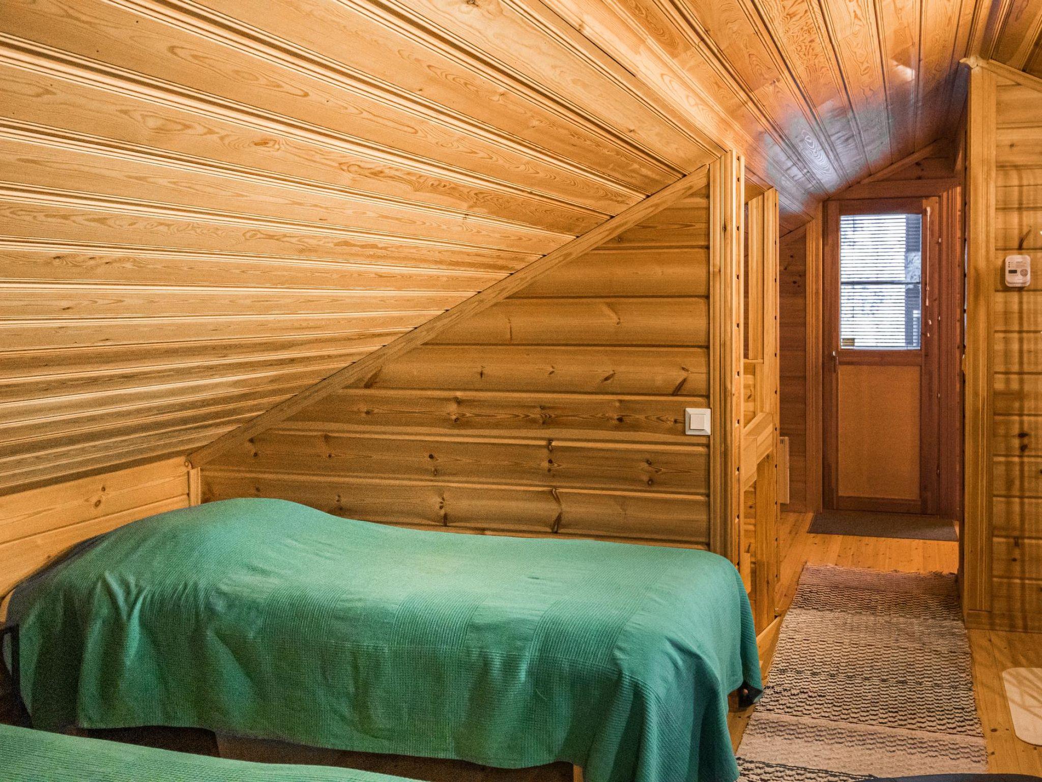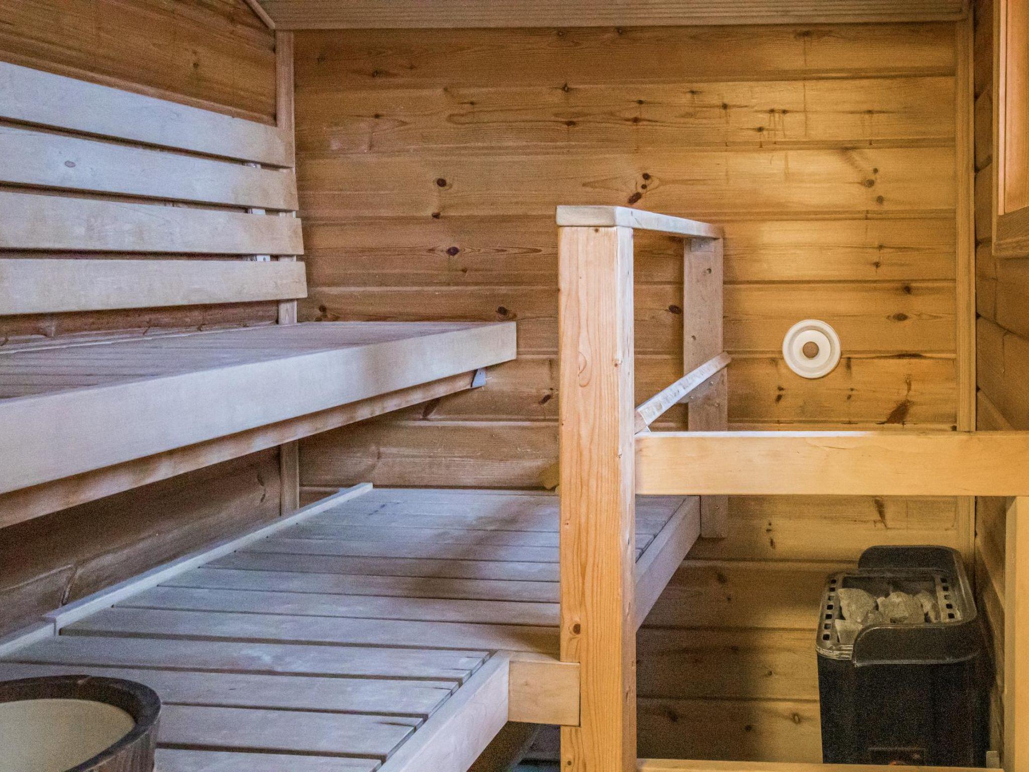 Downstairs: living room, kitchen, bedroom with double bed, sauna (elec. stove) and bathroom. In downstairs living room sofa bed for one person. Upstairs: sleeping loft with double bed, and open loft with 2 beds.