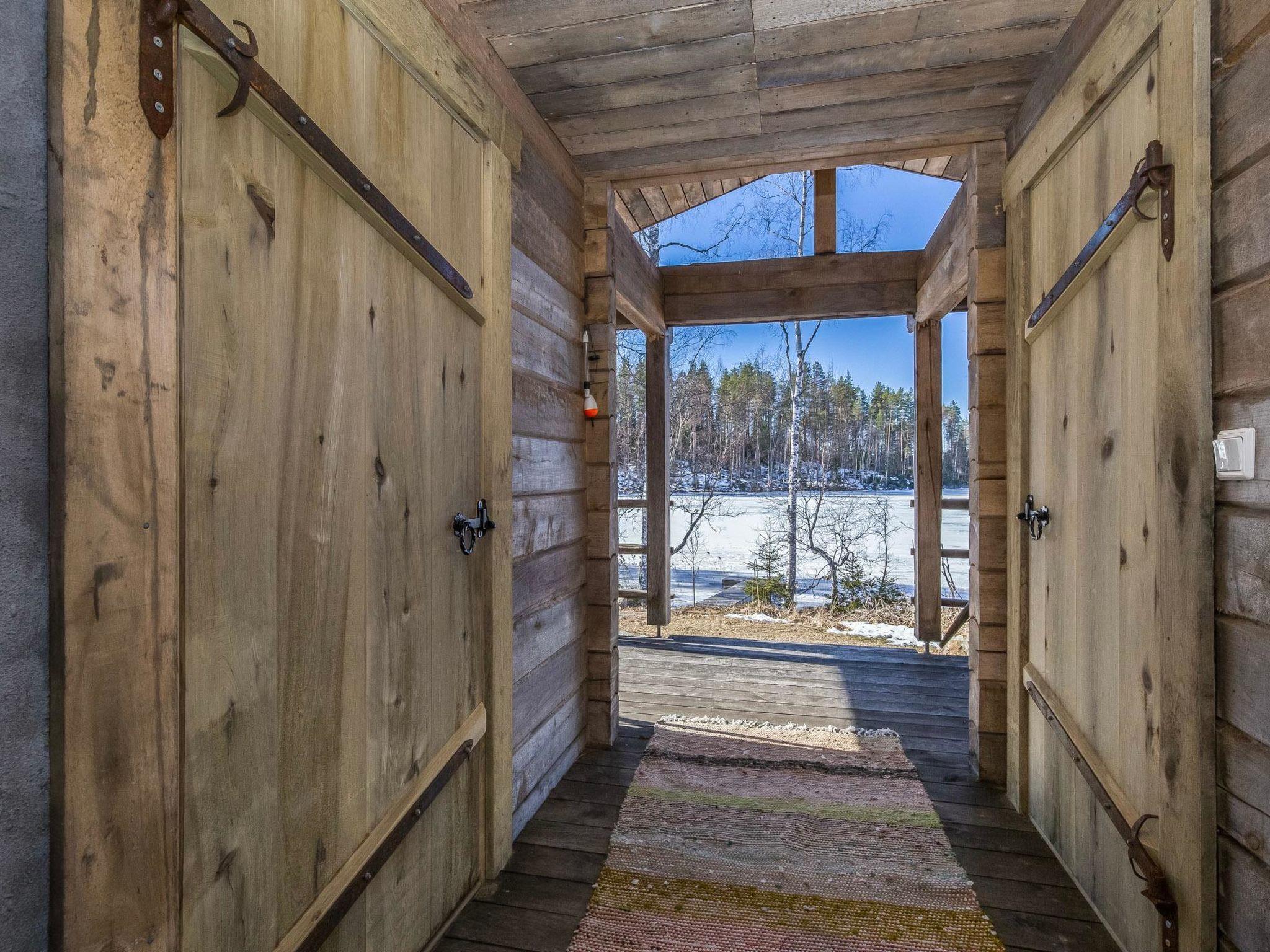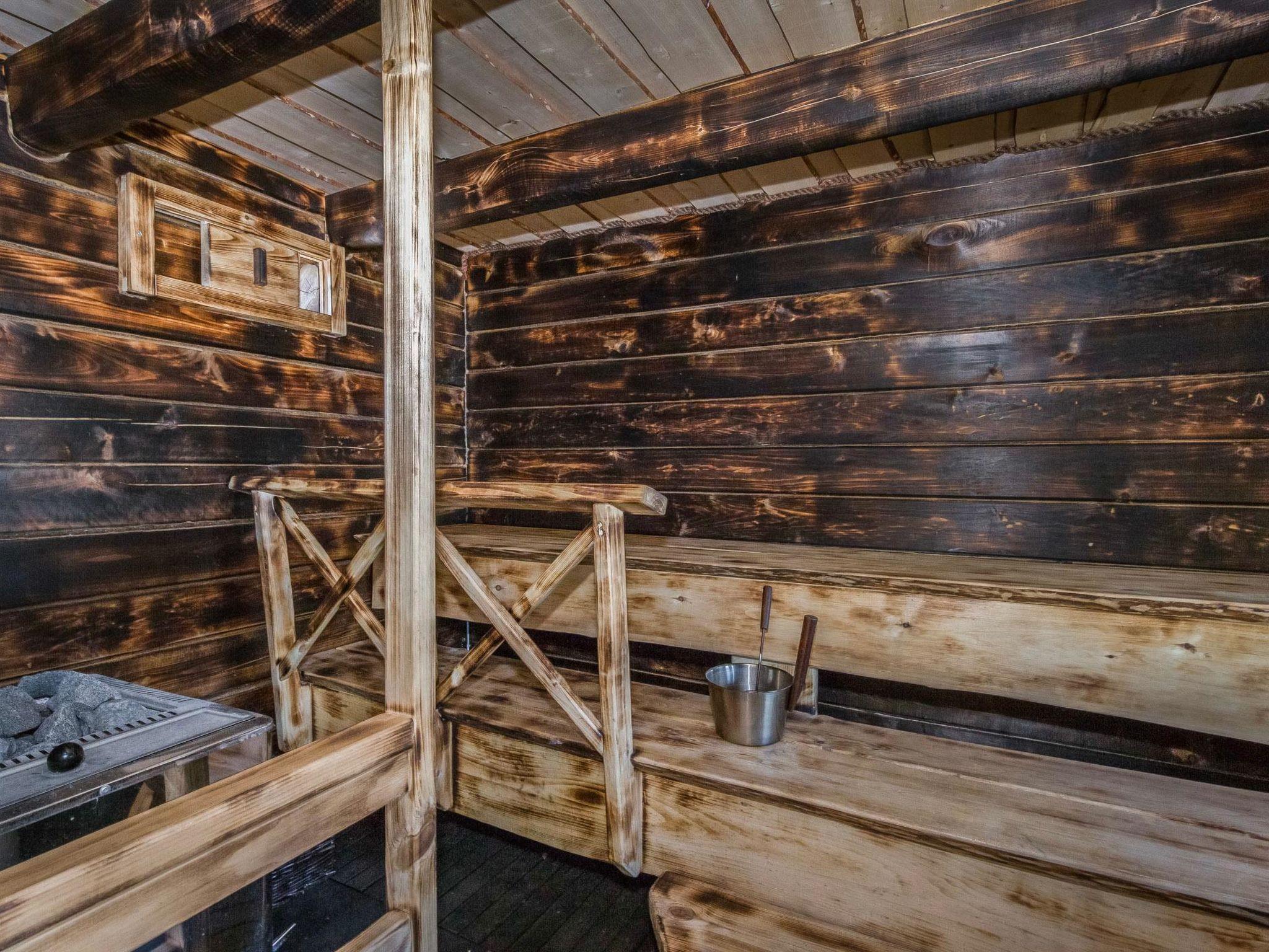Lakeside sauna 2014, sauna lounge and sauna with wood burning sauna stove, turf roof. In the summer time, water comes to the sauna by pump. In the winter time water to sauna must be brought by using bucket.