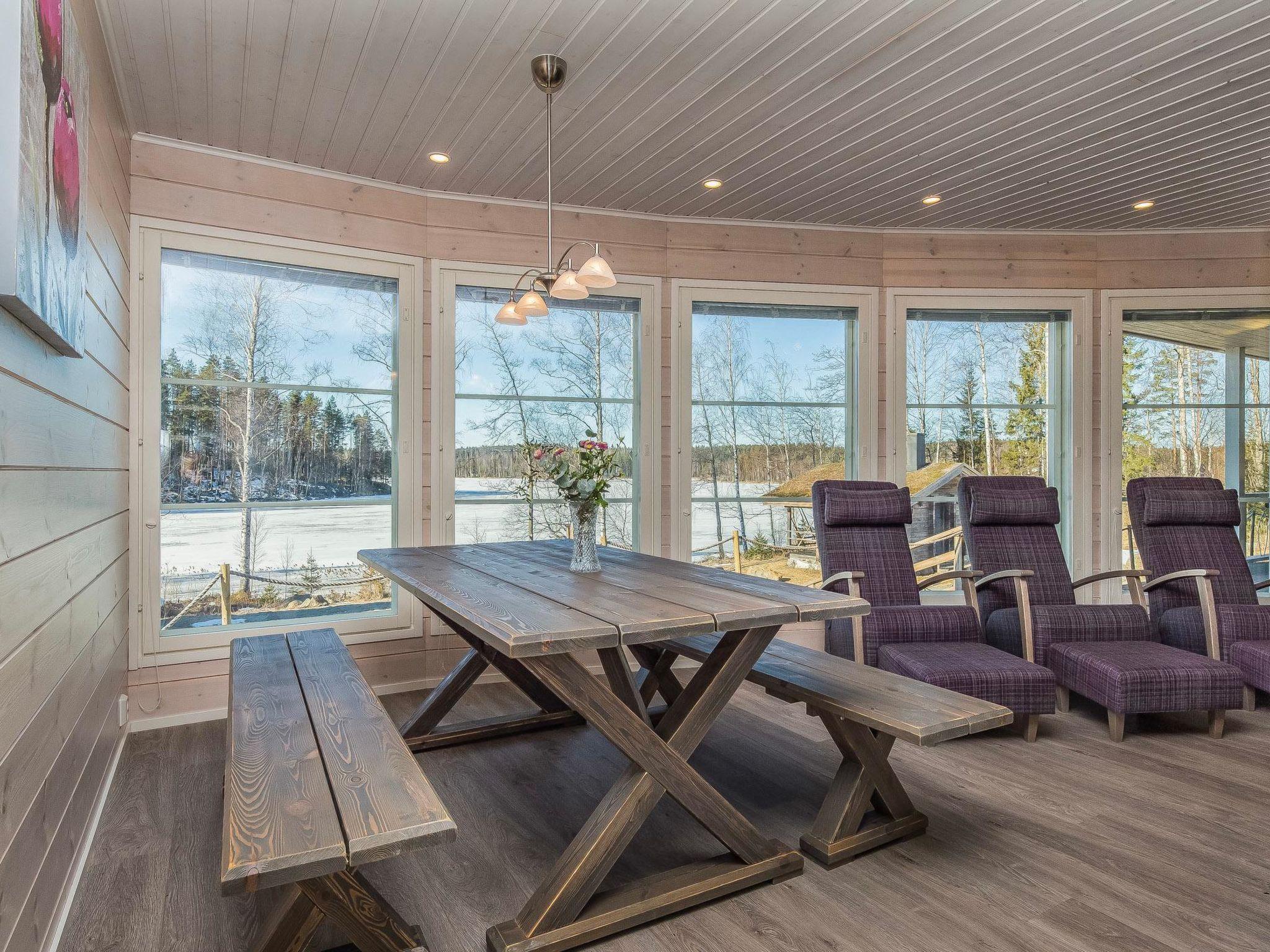 Wooden villa 2014, large livingroom/kitchen with two extra beds on the sofa bed, two bedrooms (10 m²), two beds in both, sofa bed for two in the sauna building, two separate WC’s, washroom and sauna (electric sauna stove), large covered terrace.