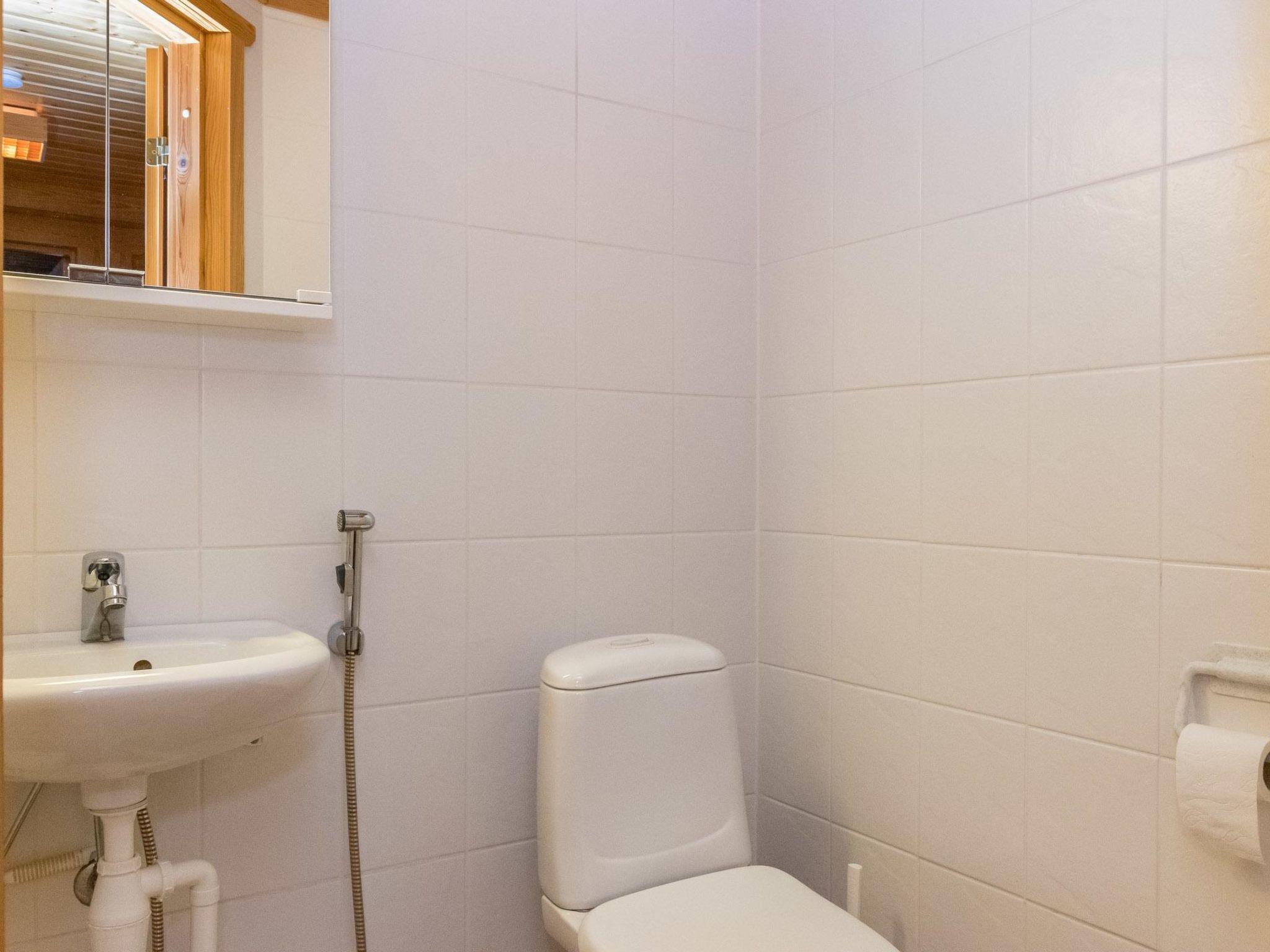 Log cabin 2000, living room/kitchen, bedroom (12 m²) with double bed and bunk bed, dressing room, washroom, sauna, separate toilet, covered terrace.