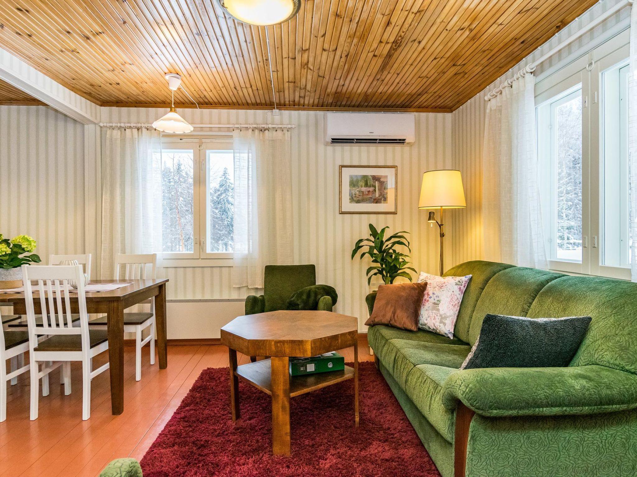 Wooden cabin 1955, renovated in 2008, living room/kitchen (22 m²) bedroom (9 m²) with two beds, washroom with shower and WC, lobby. Air source heat pump, open terrace.