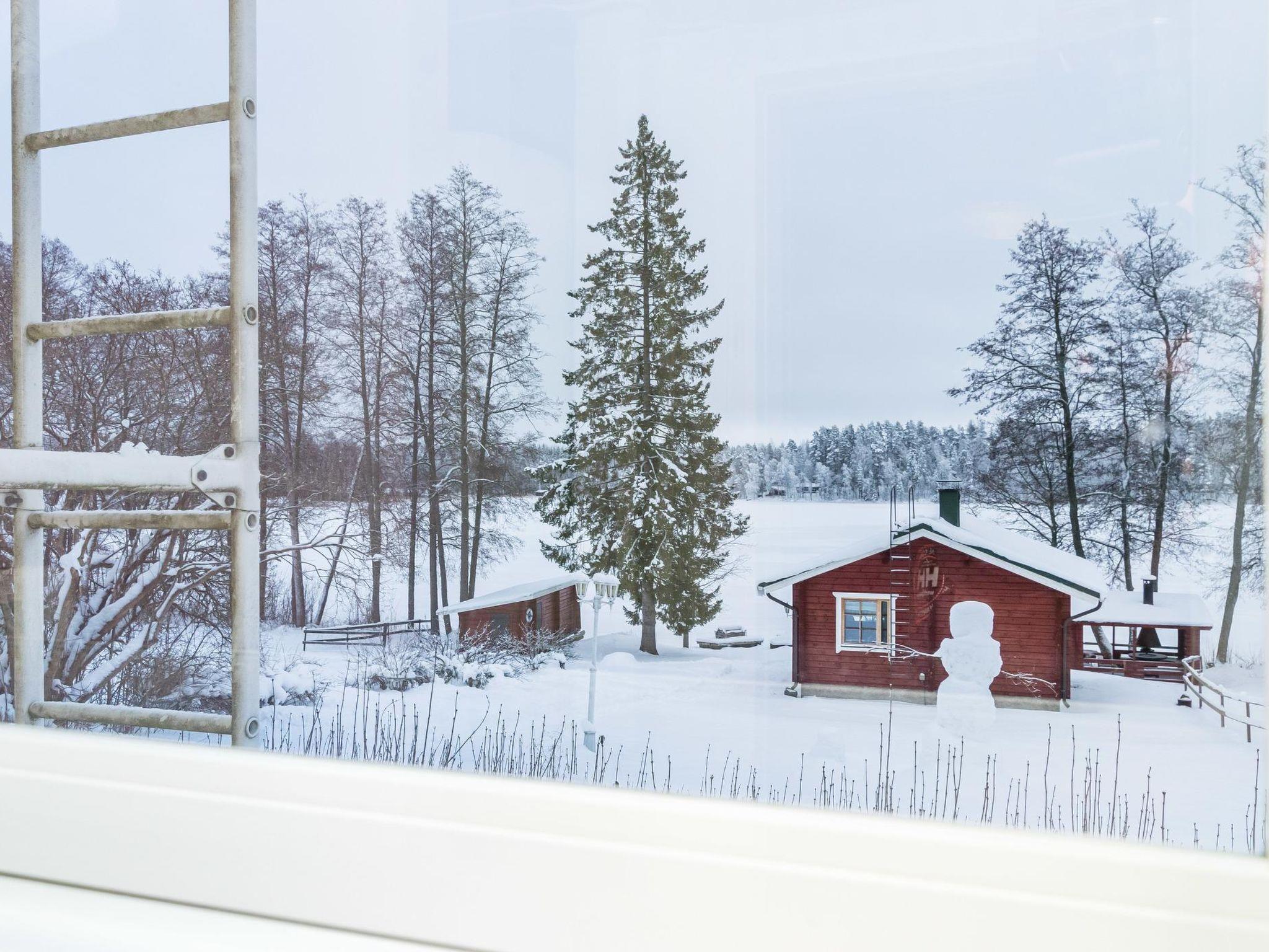 Lakeside sauna 2008 (21 m²), fireplace room with kitchenette, shower in washroom, wood-burning and electric sauna stove in sauna, covered terrace. Covered cooking area and terrace on the beach.
