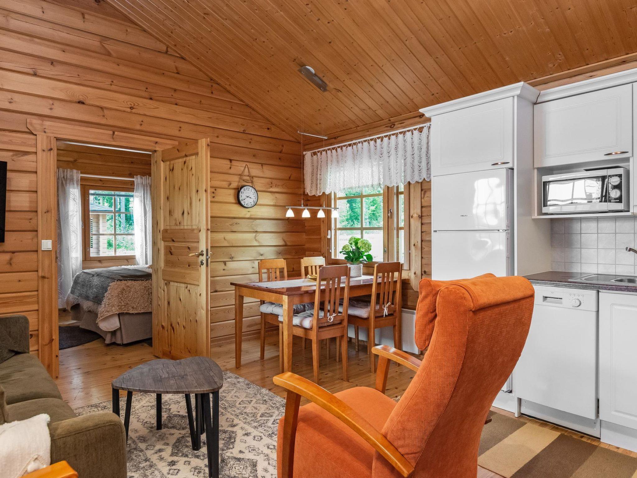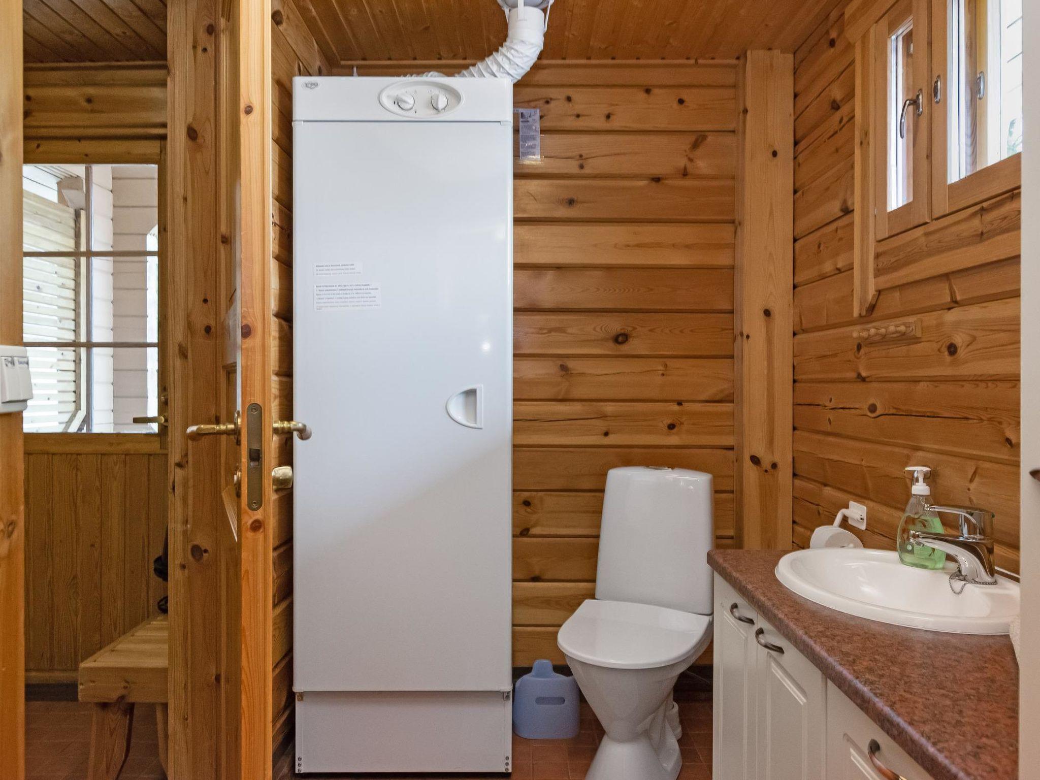 This log cabin, originally built in 1974 and fully renovated/rebuilt in 2007, features a living room/kitchen with a sofa bed for two, a bedroom with two single beds, and a WC with access to the bathroom with a shower. The sauna has a wood-burning stove. Enjoy the covered porch and the open terrace just a few steps from the water.