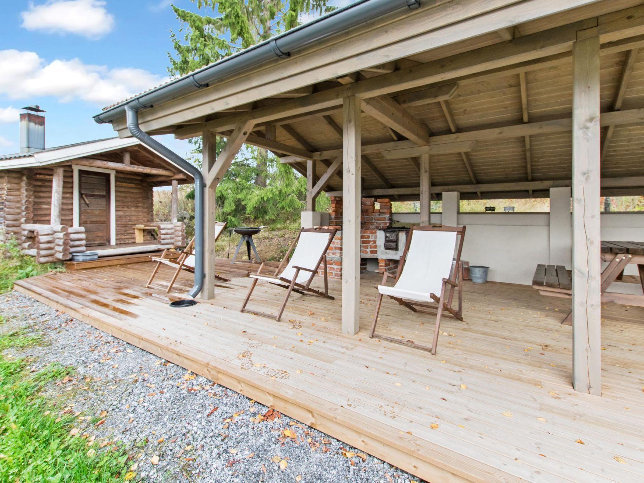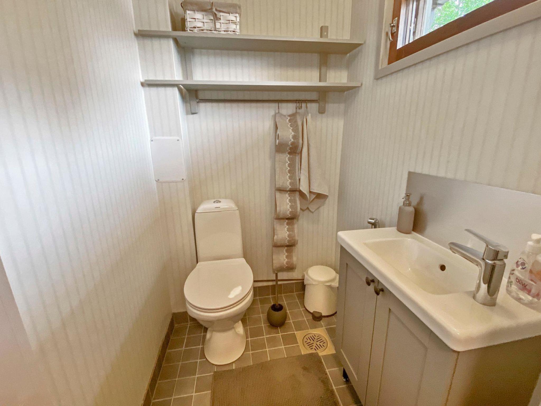 38 km west of Jyväskylä. Lake Kirrinjärvi 25 m ( length 2 km, breadth 700 m), shallow water, reasonably soft sandy mud bottom. Own boat. Log cabin 1991, kitchen, living room, bedroom with double bed, bedroom 2 beds, sleeping loft (12 m², sloping ceilings, highest point 180 cm) with 2 beds and 2 mattresses, dressing room, washroom, sauna (electric stove), open veranda. Separate lakeside sauna.