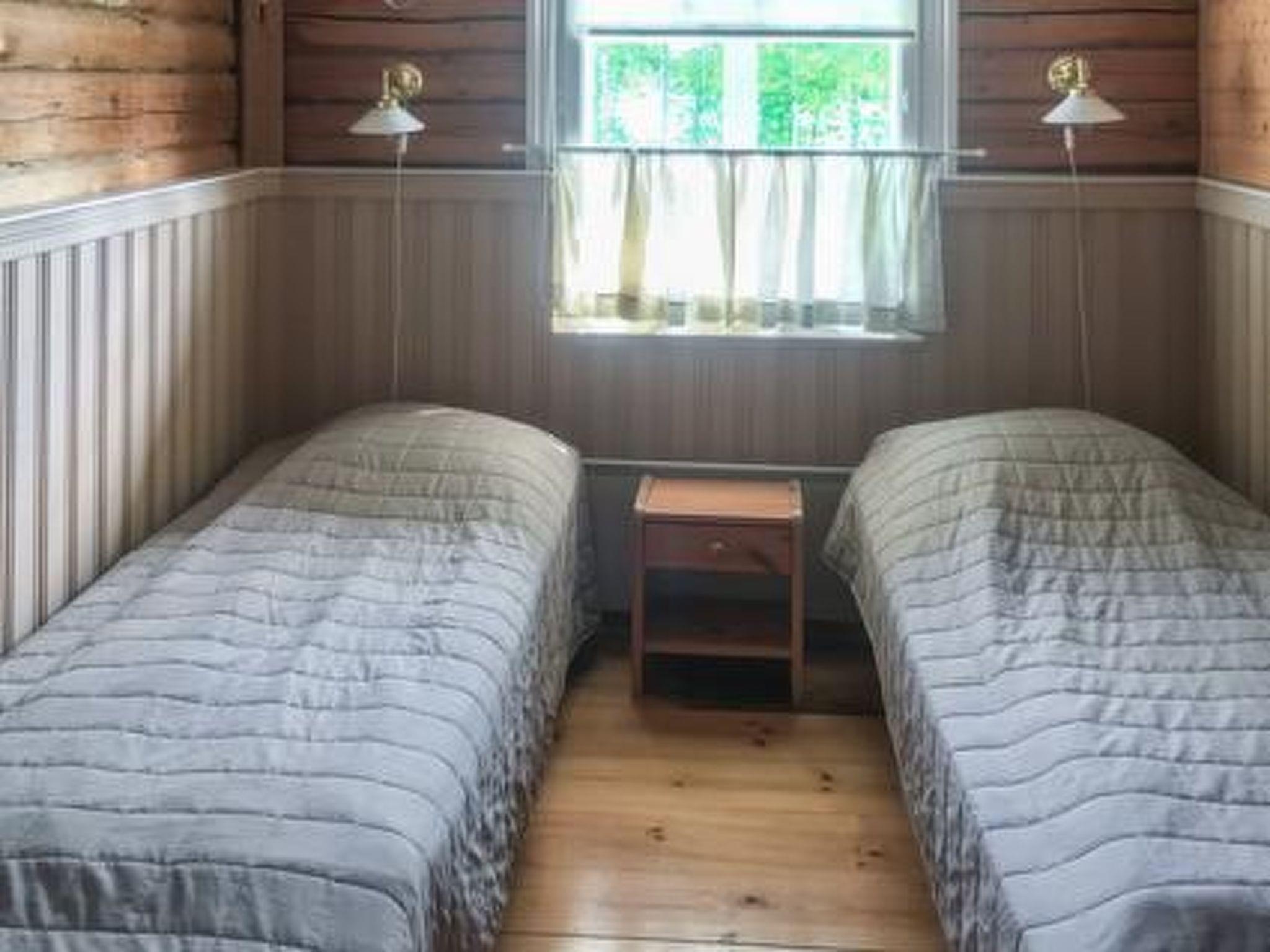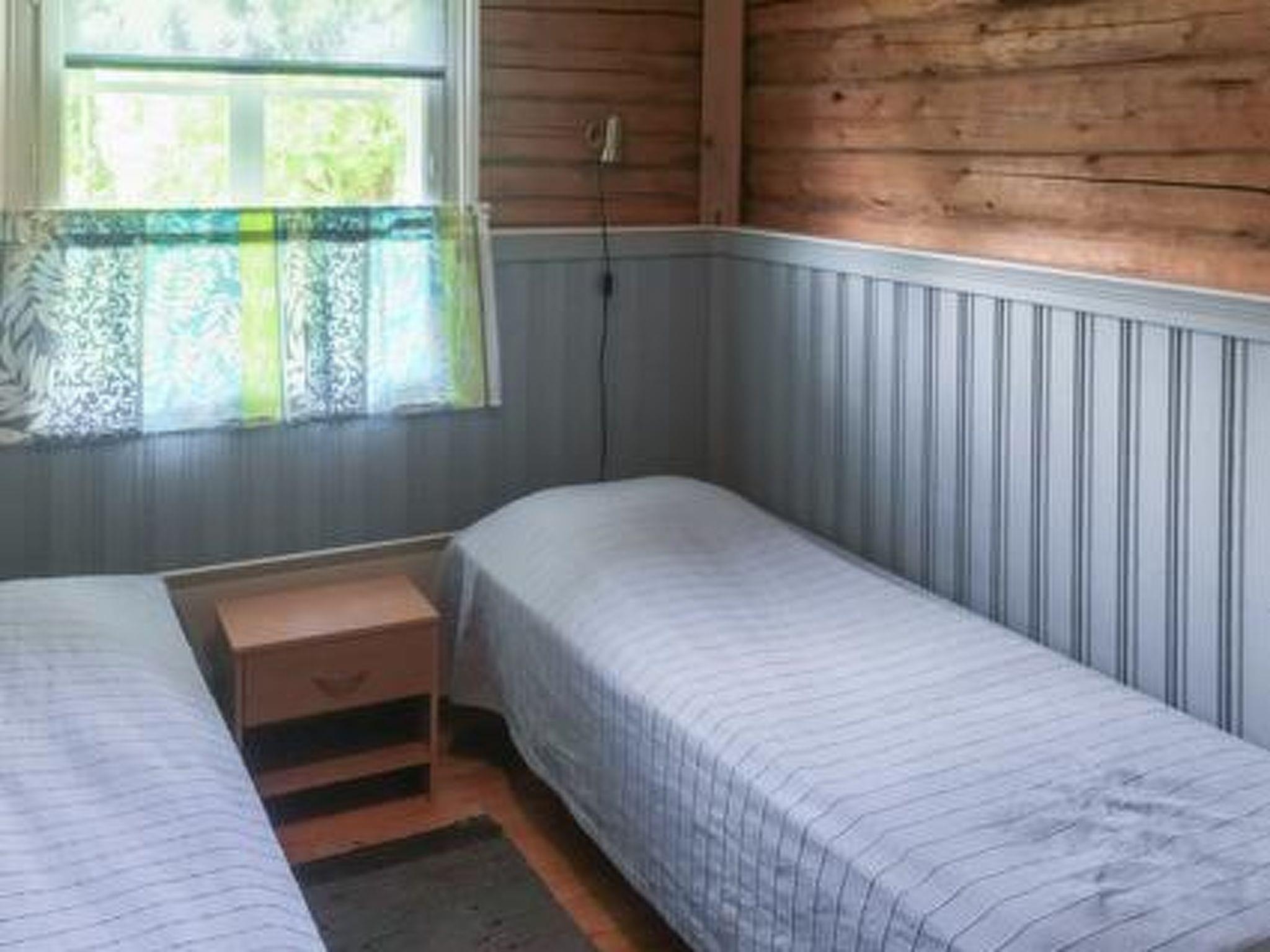 32 km west of Jyväskylä, lake Kirrinjärvi 30 m (length 2 km, breadth 700 m), shallow water, hard sanded bottom, own boat. Wooden cabin 2001, living room/kitchen, 2 bedrooms 2 beds in each (other with sliding door, other with a normal door), 2 beds in the loft (12 m²), washroom, sauna, terrace.