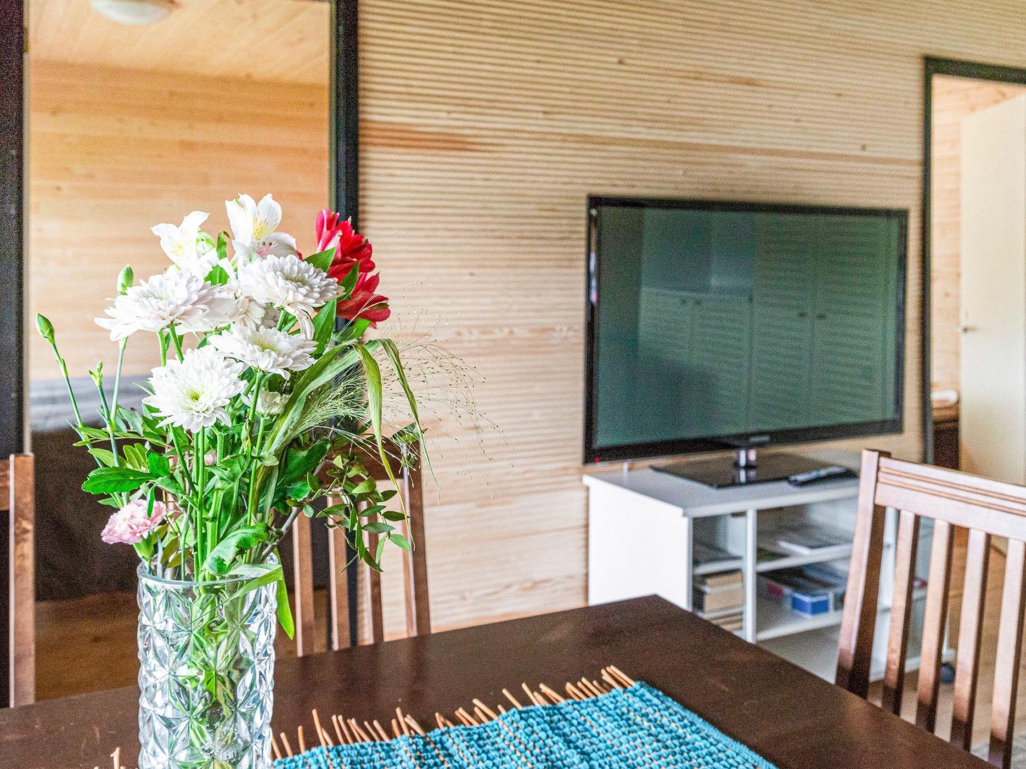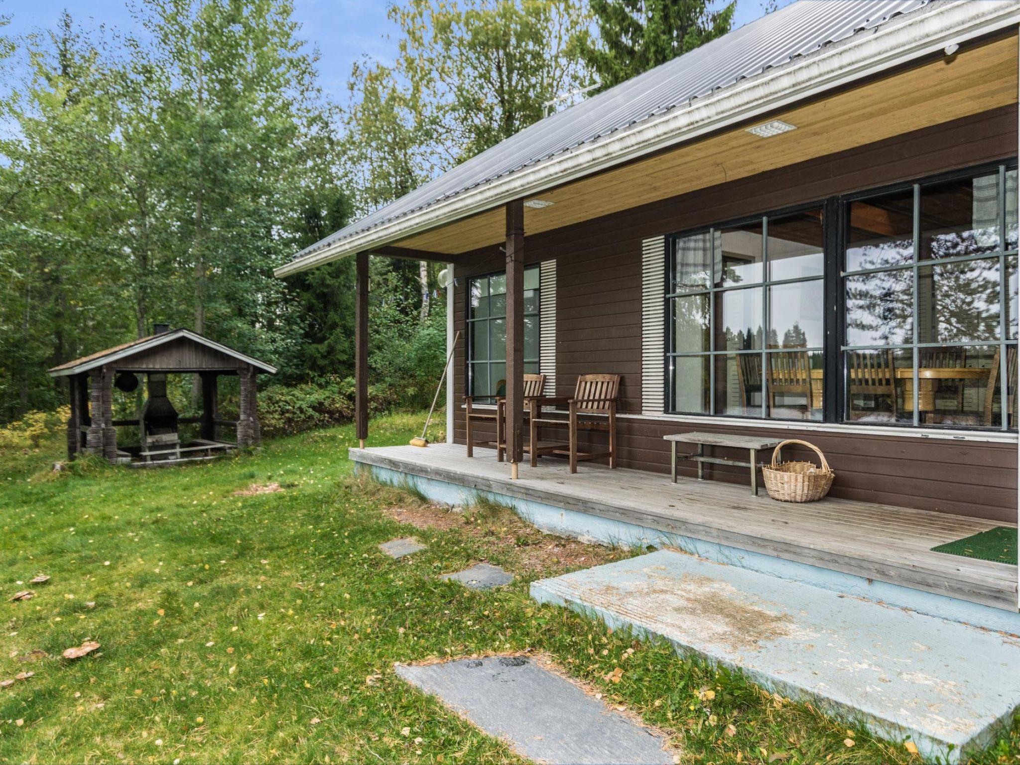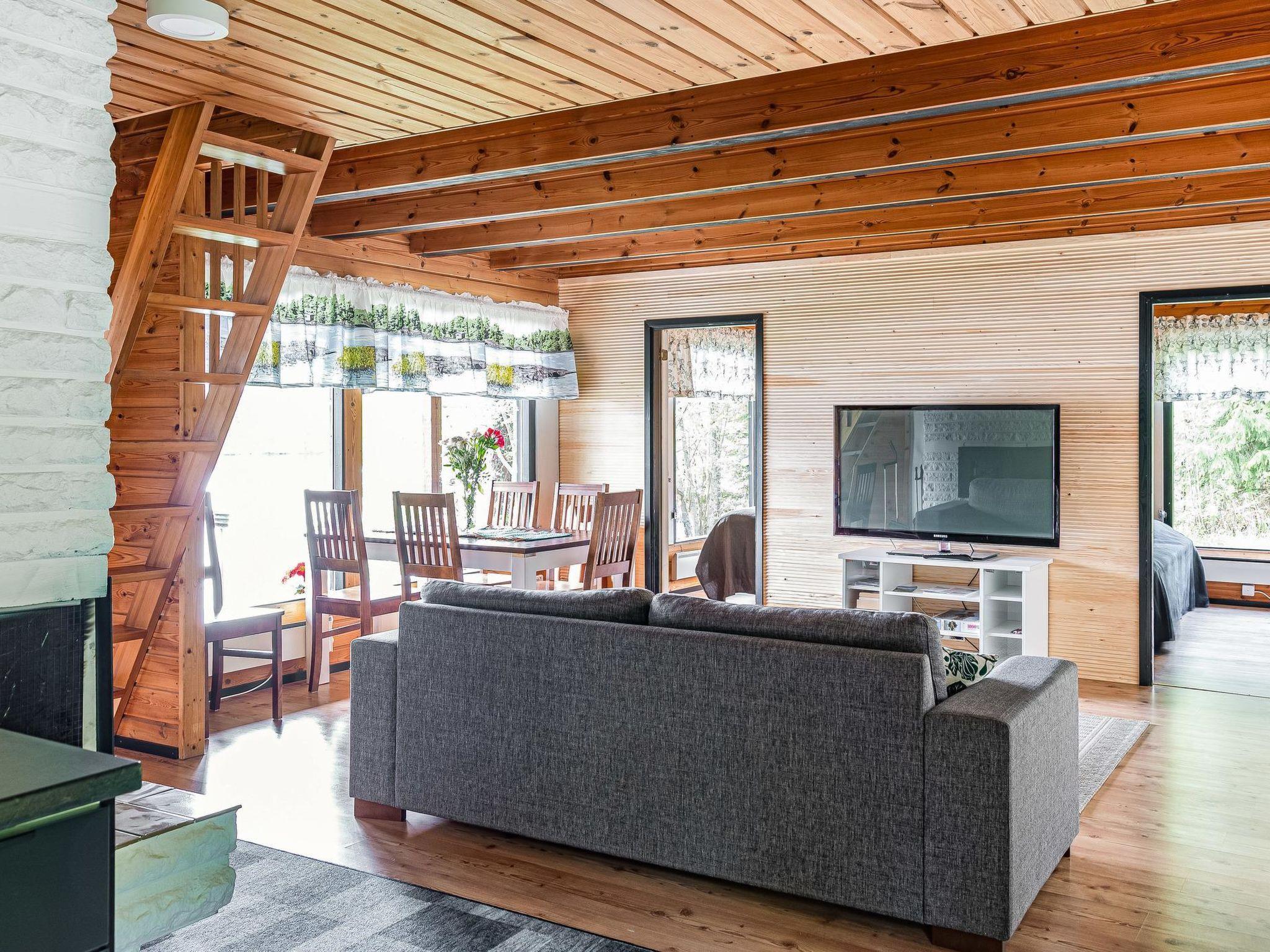 Wooden cabin 1987, renovated 1993 and 2022. Kitchen/living room, 2 bedrooms (one with double bed, another with 2 single beds), sleeping loft with 2 beds, steep stairs, washroom, sauna, open veranda.
