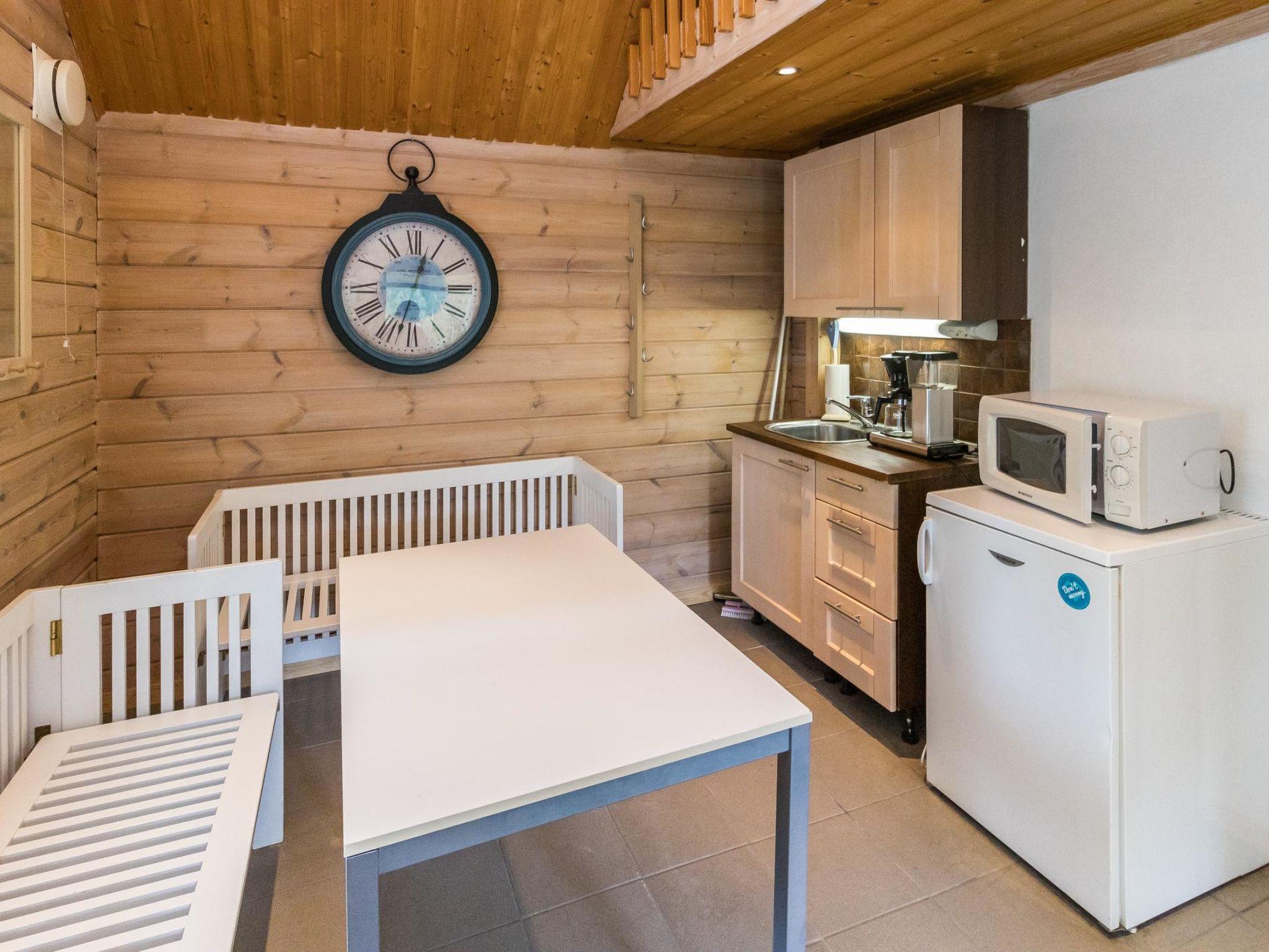 On the ground floor of the main building, there is a large living room/kitchen area with a high ceiling. The kitchen is well-equipped, and there is plenty of space for a larger group to dine together. Two bedrooms, each with two beds (size 80 x 200 cm). In addition, there is an electric sauna and a bathroom with WC.