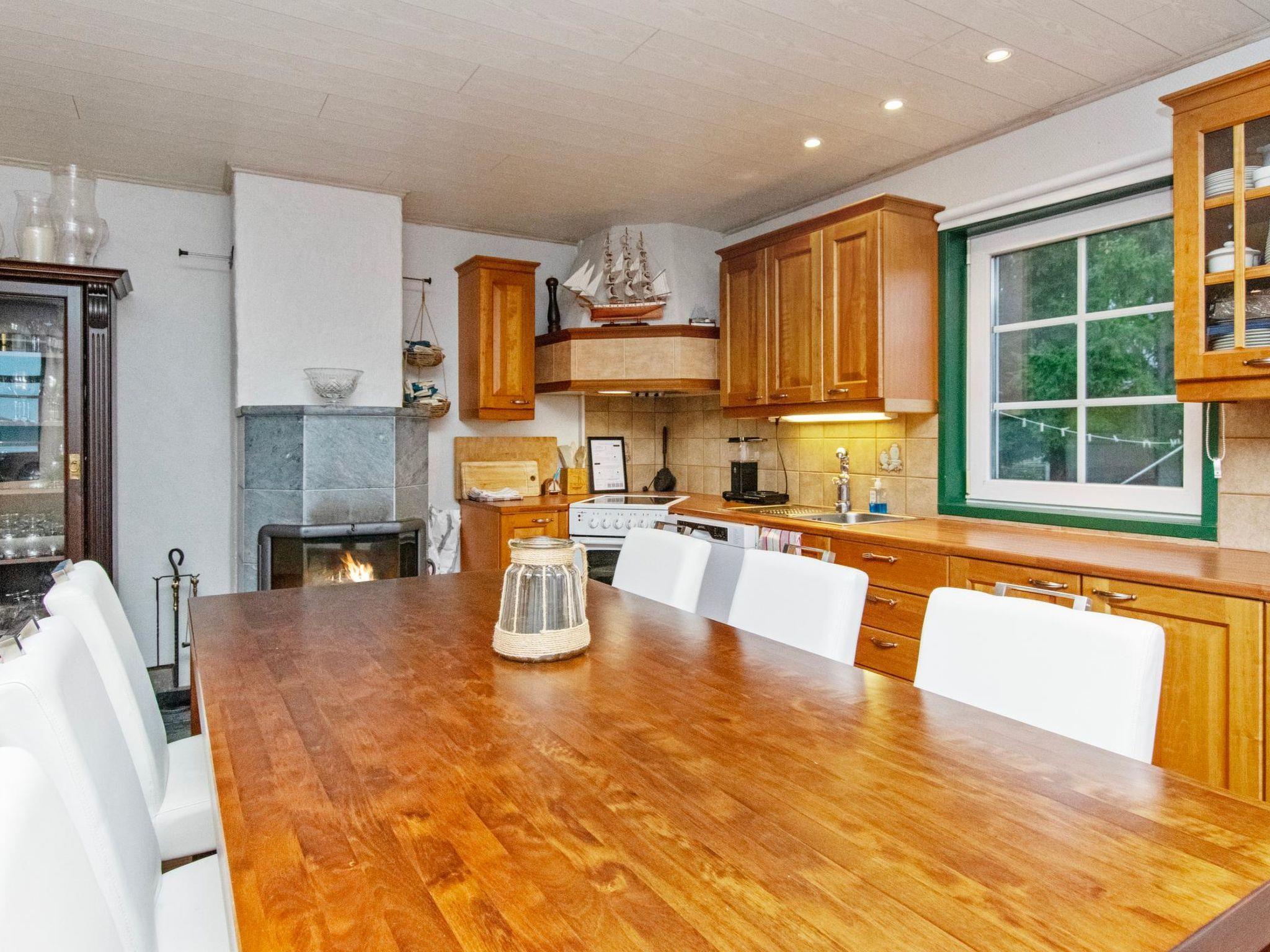 Wooden villa 2000, living room-kitchen (2 sofa beds, spread out 160 cm wide), bedroom with double bed, shower room / WC, sauna (electric stove), hall, glazed terrace (the glass wall facing sea can be completely opened). There is a fireplace on the terrace.