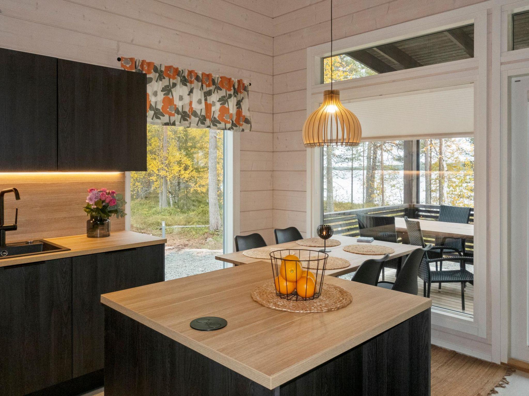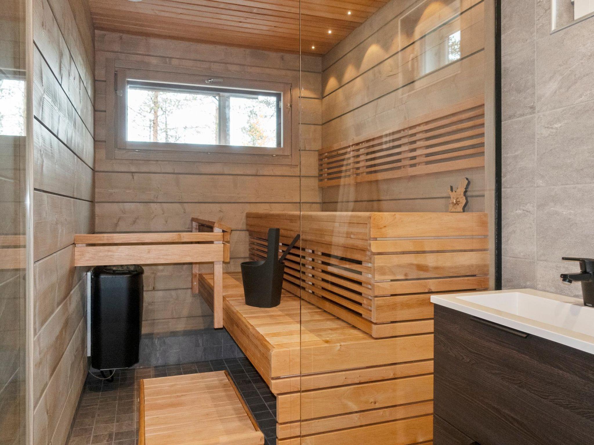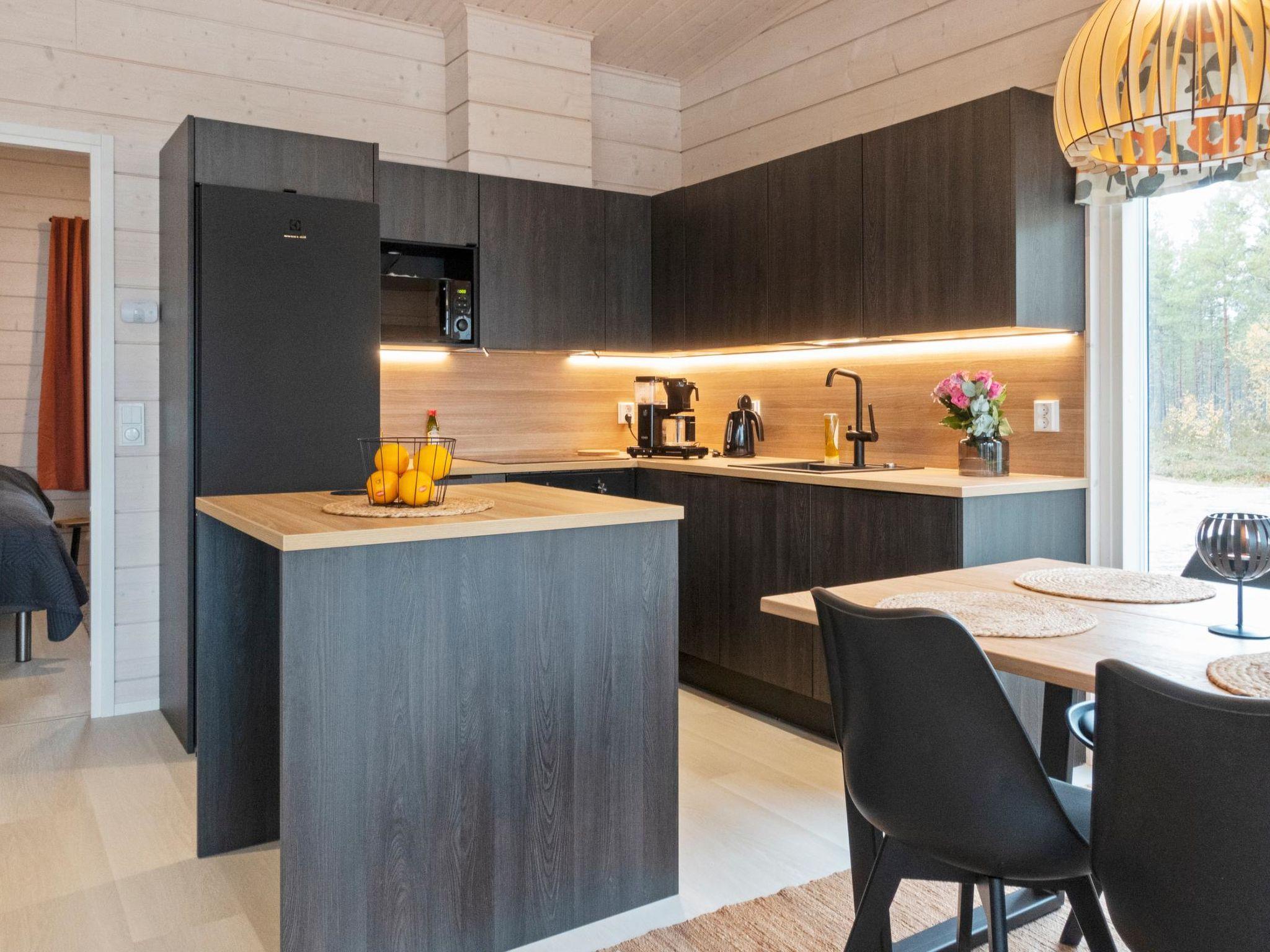 Log villa, completed in 2022. Living room/kitchen, bedroom with double bed, another bedroom with 2 single beds, sauna, washroom/WC, utility room and also a separate WC. Hairdryer. Two cube mattresses as extra beds. Large covered terrace with an always warm hydro massage bath. The hydro massage bath can be rented for an extra fee, payment per reservation.