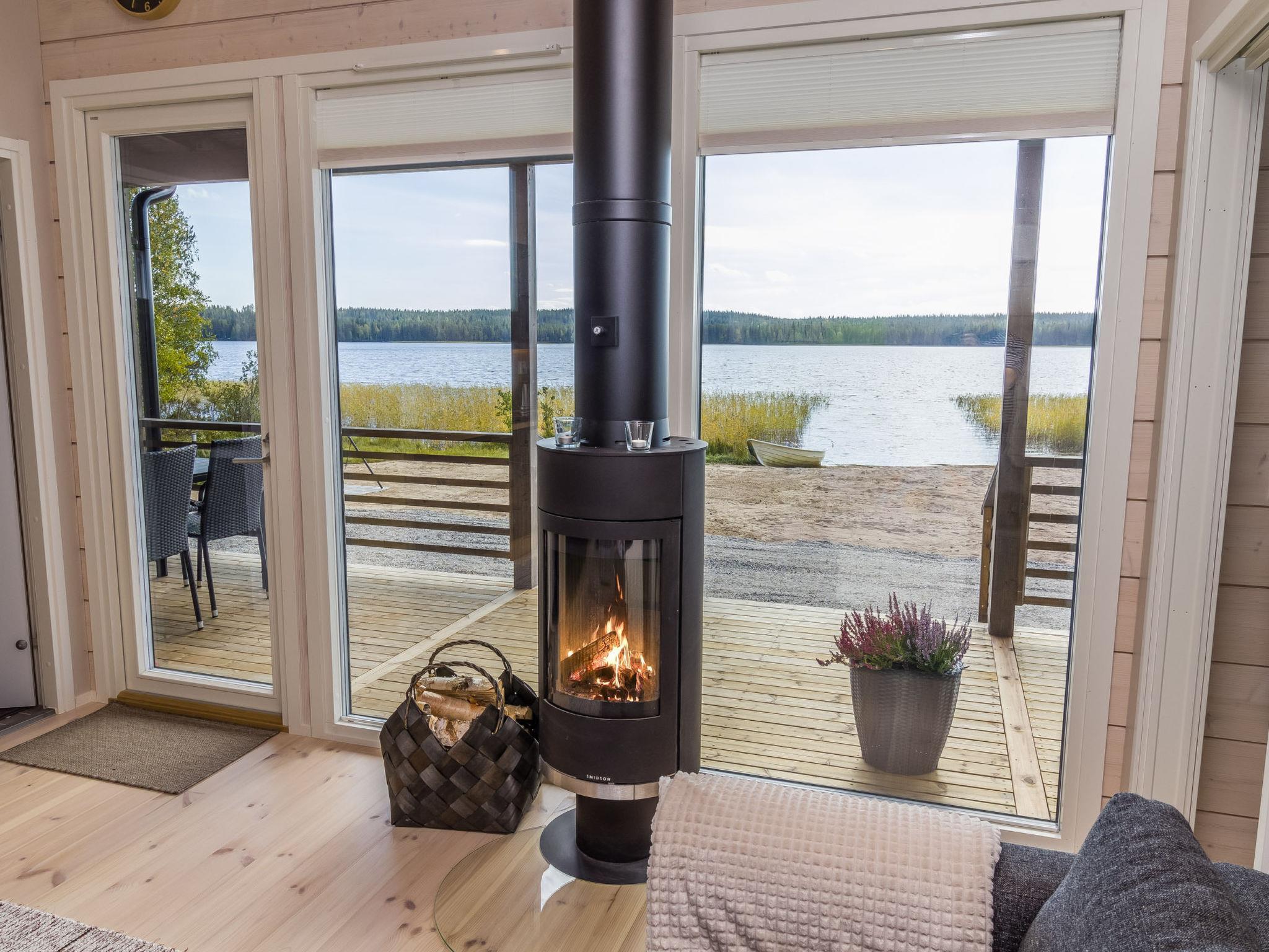 A living room/kitchen provides a cozy setting for cooking and dining, while the wood-heated sauna adds a relaxing touch to your holiday. The tranquil location, private beach, and modern facilities ensure a comfortable and enjoyable stay year-round.