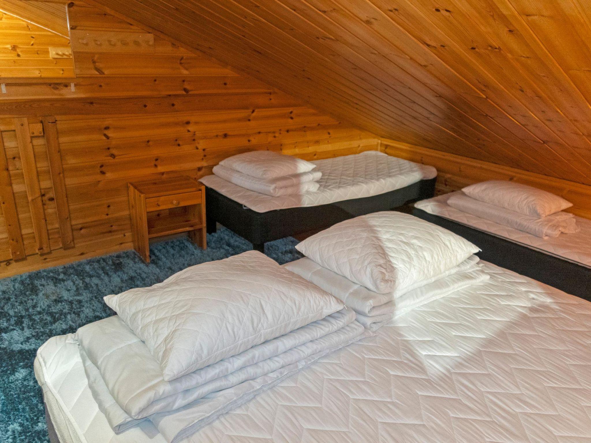 140 km northeast of Oulu, in the Pikku-Syöte ski resort in the Syötekeskus area. End apartment in a planed log terraced house, paneled inside, built in 1985. Sofa bed in the living room and kitchen, double bed and 2 single beds in the loft, steep stairs to the loft, the loft is low and has a sloping ceiling, the maximum height of the loft is 2 m, sauna and washroom/toilet and storage.