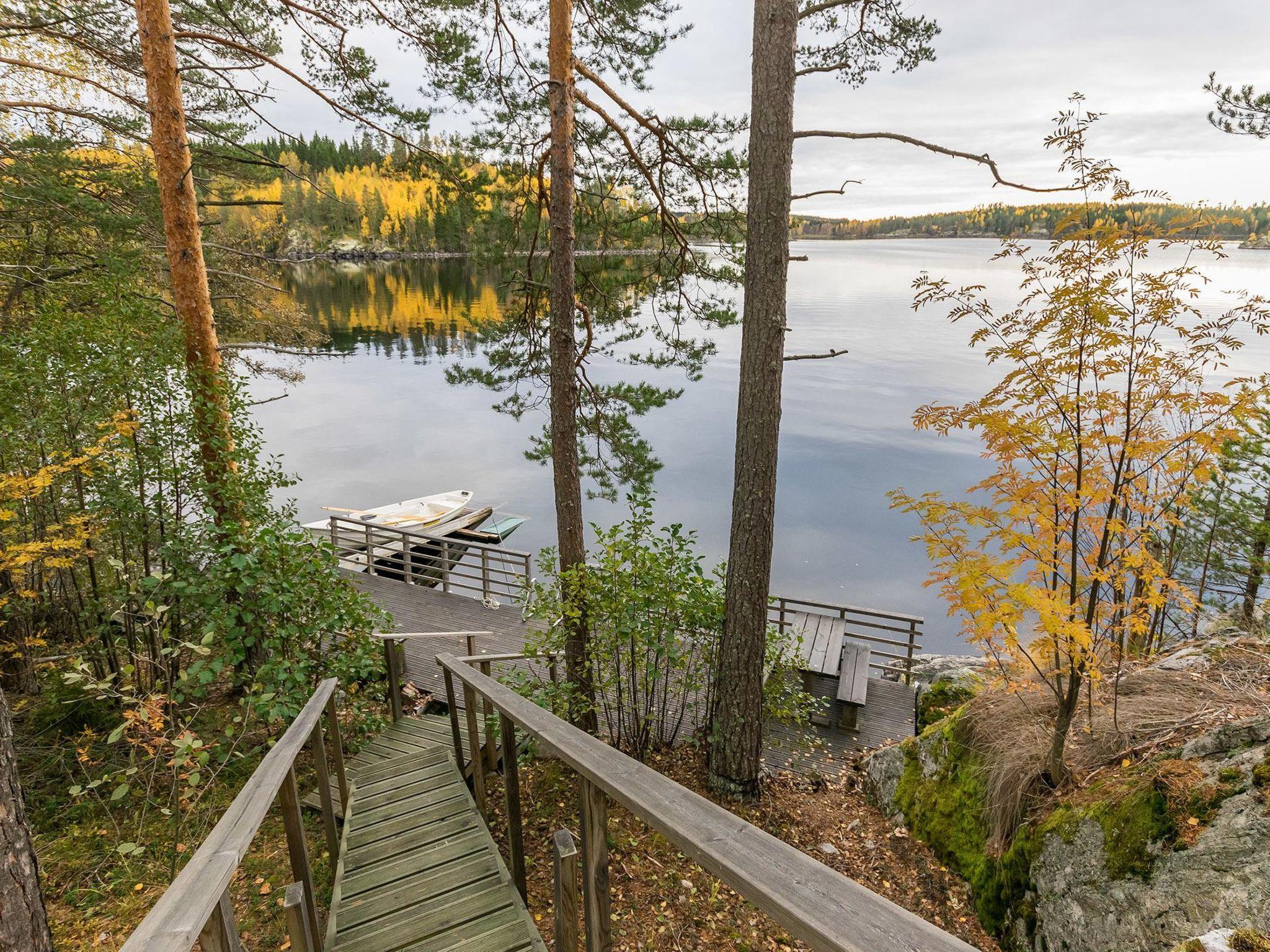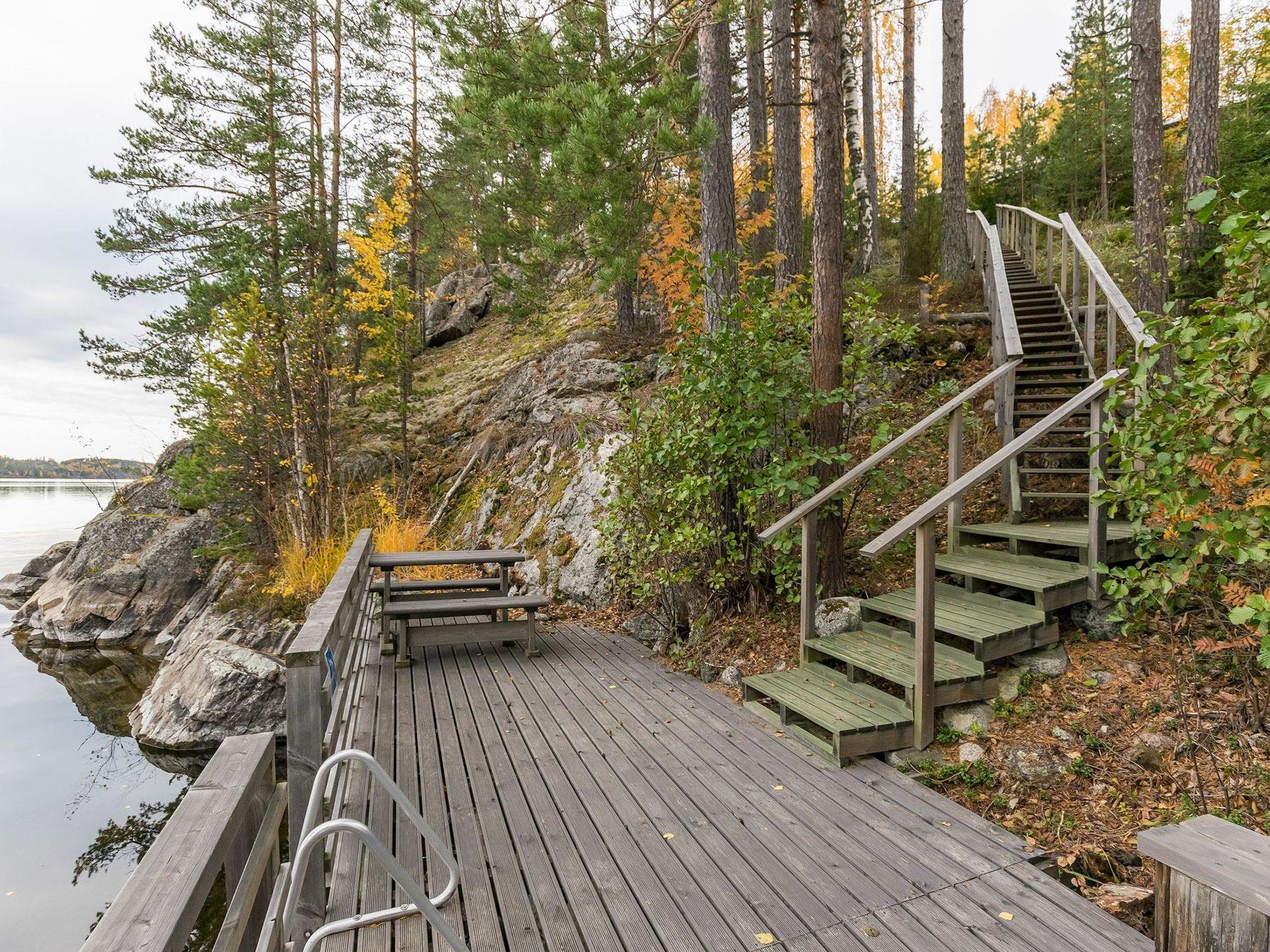 56 km south of Savonlinna, Lake Saimaa Pihlajavesi 35 m, shore deepening rapidly, hard rock bottom, steep slope with steep stairs to the beach, large pier on the beach, own boat in the summer. Stony and rocky beach. Log House 2011, a big kitchen, 3 bedrooms, each with two beds, shower room, dressing room, sauna (electric stove), two porches. Separate sauna with dressing room (sauna heated by wood).