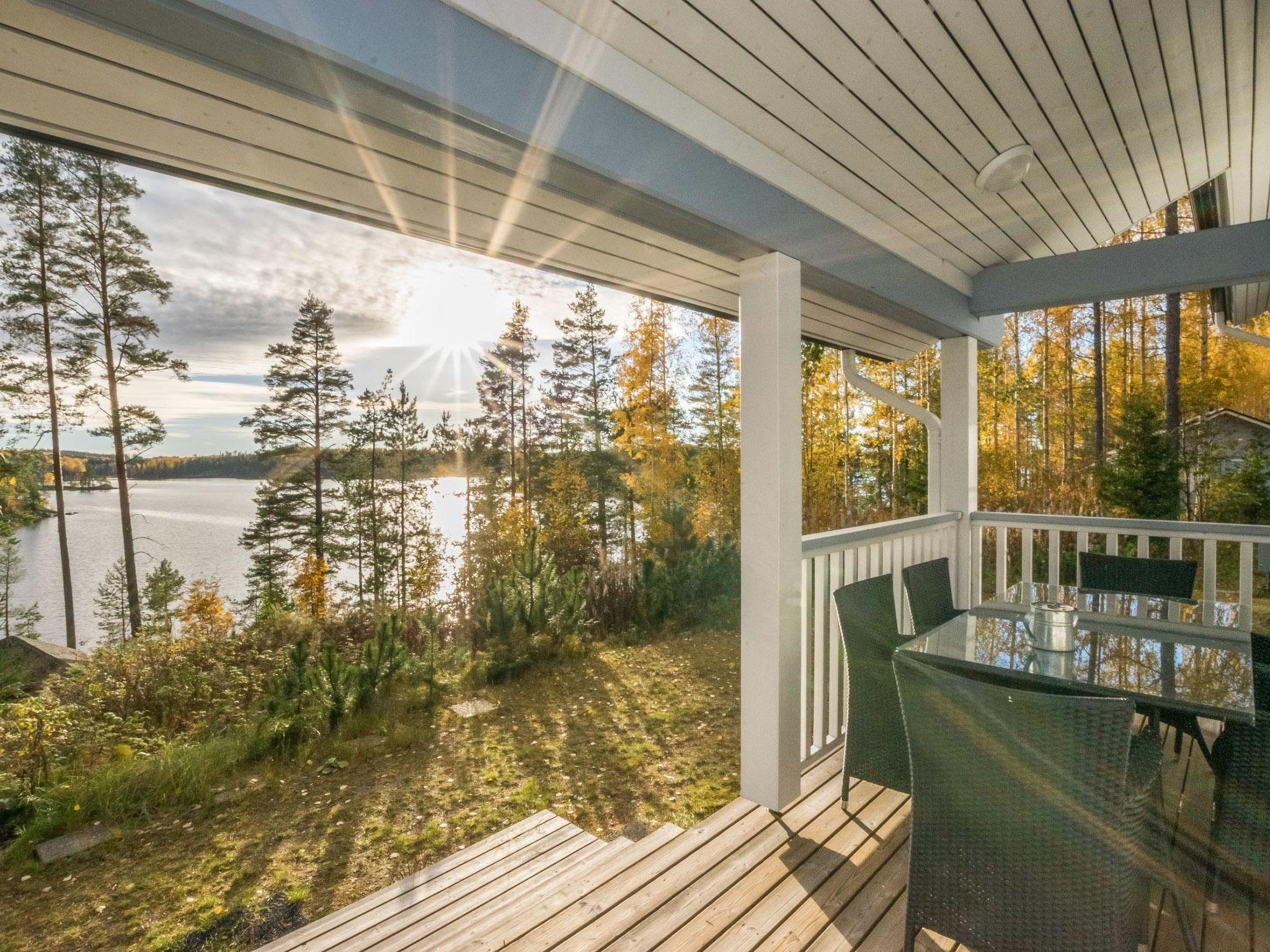 56 km south of Savonlinna, Lake Saimaa Pihlajavesi 50 m, shore deepening rapidly, hard rock bottom, steep slope with steep stairs to the beach, large pier on the beach. Stony and rocky beach. Log House 2011, a big kitchen, 3 bedrooms, each with two beds, shower room, dressing room, sauna (electric stove), two porches. Separate sauna available from Juni 2012 with dressing room (sauna heated by wood).