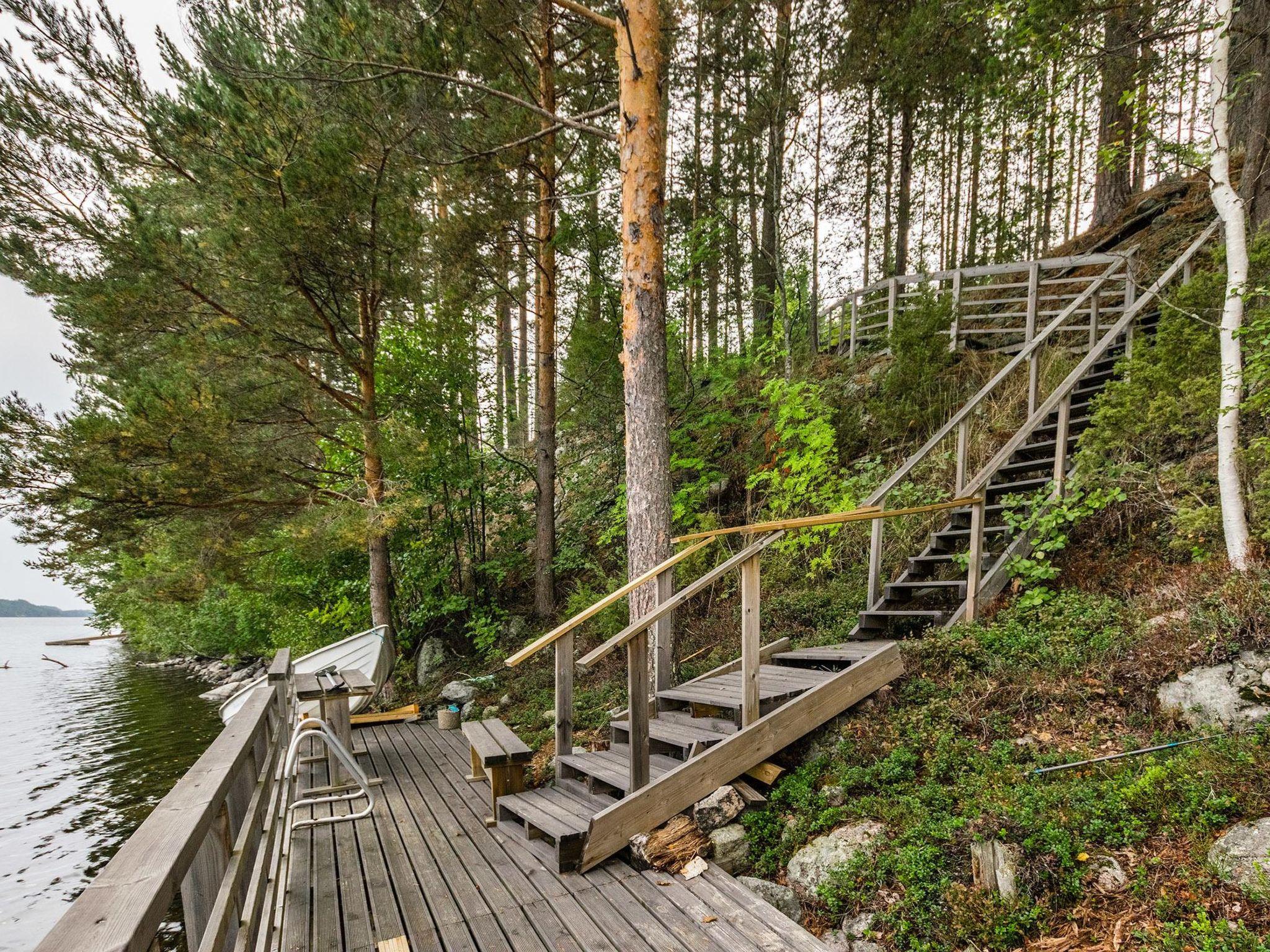 56 km south of Savonlinna, Lake Saimaa Pihlajavesi 35 m, shore deepening rapidly, hard rock bottom, steep slope with steep stairs to the beach, large pier on the beach. Own boat.Stony and rocky beach. Log House 2011, a big kitchen, 3 bedrooms, each with two beds, shower room, dressing room, sauna (electric stove), two porches. Separate sauna with dressing room (sauna heated by wood).