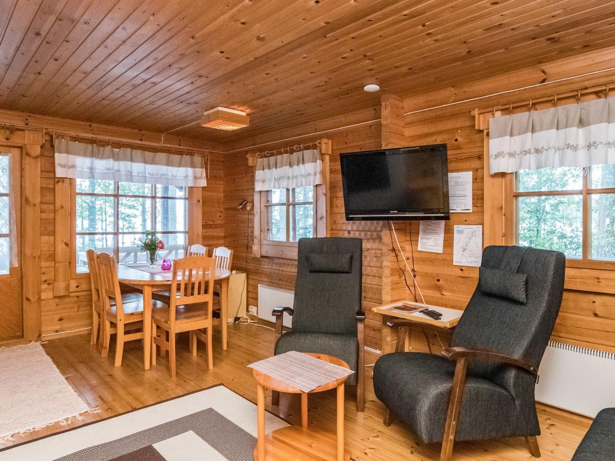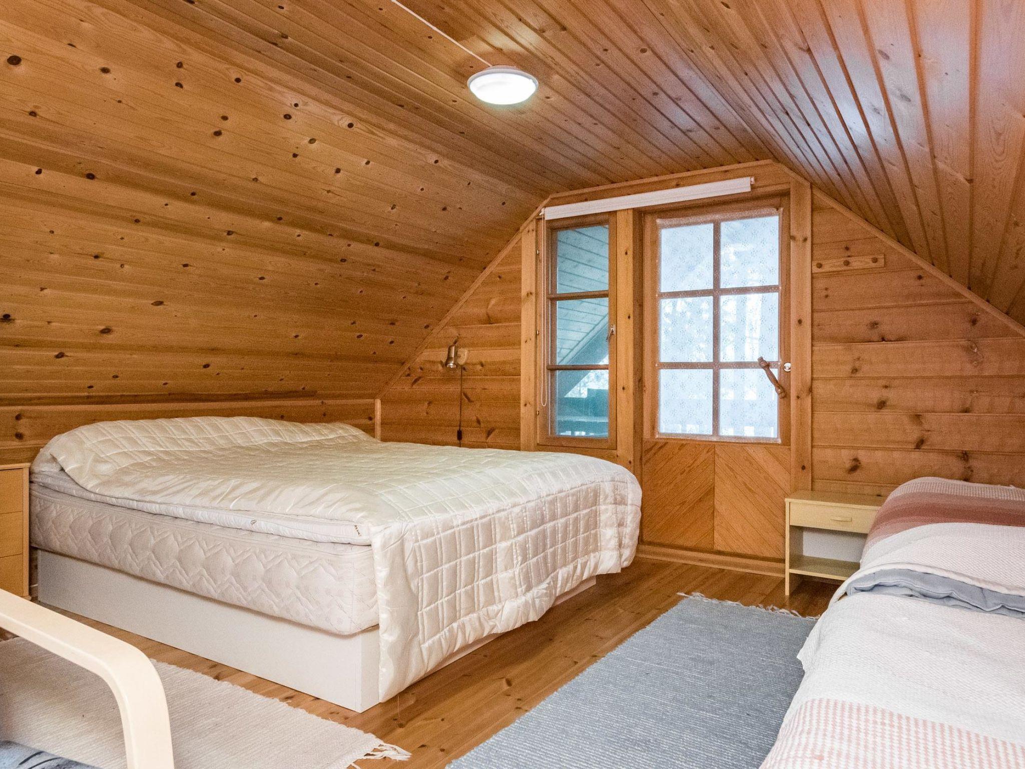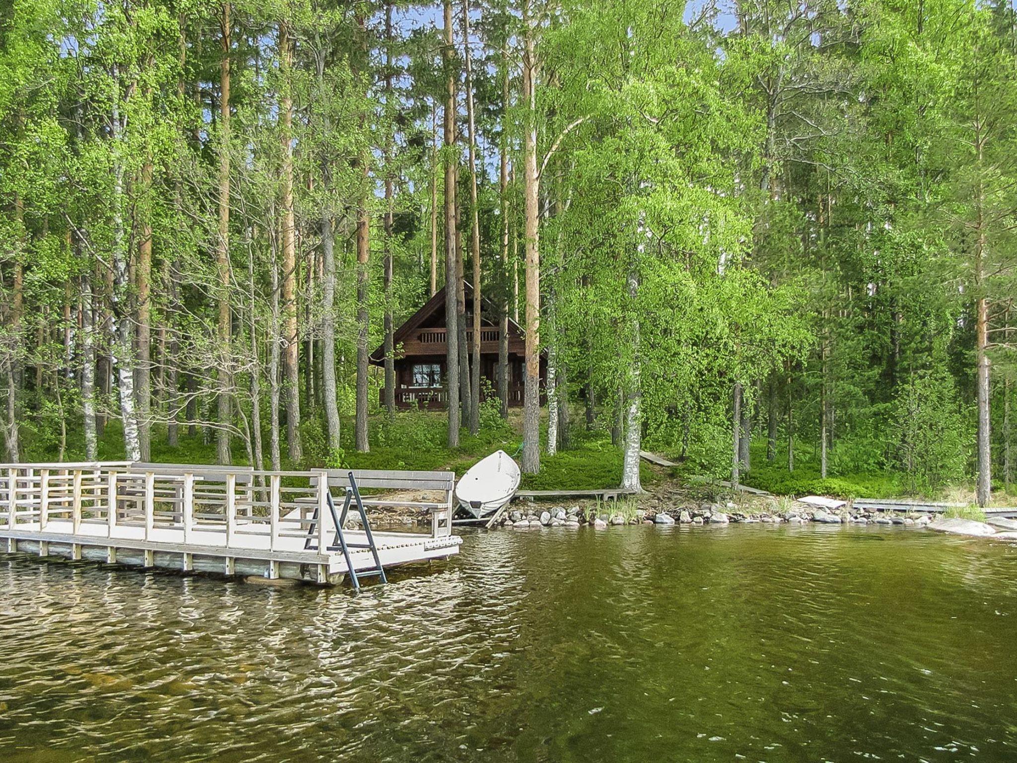 56 km south-east of Savonlinna. Lake Pihlajavesi 20 m, shallow and deep water, firm sand/rock bottom. Own boat. Log cabin 1986, kitchen/living room, sleeping loft (steep stairs) with 2 beds and double bed, dressing room, sauna, balcony, open veranda. In sommer alternative sleeping choise: outbuilding (el. heating) with 2 beds.
