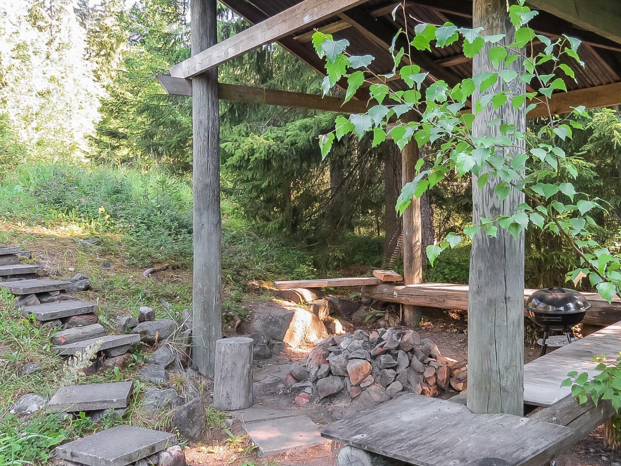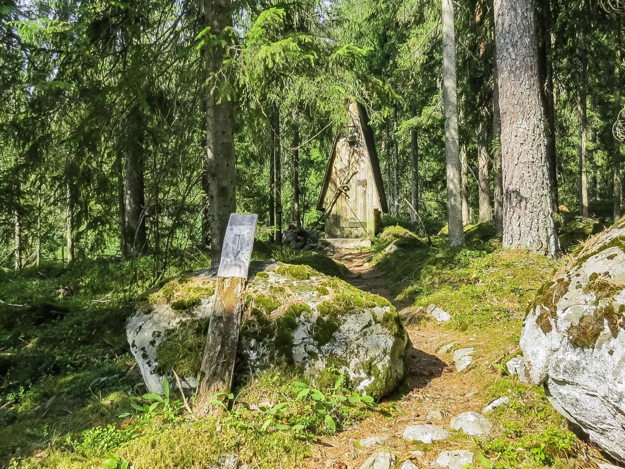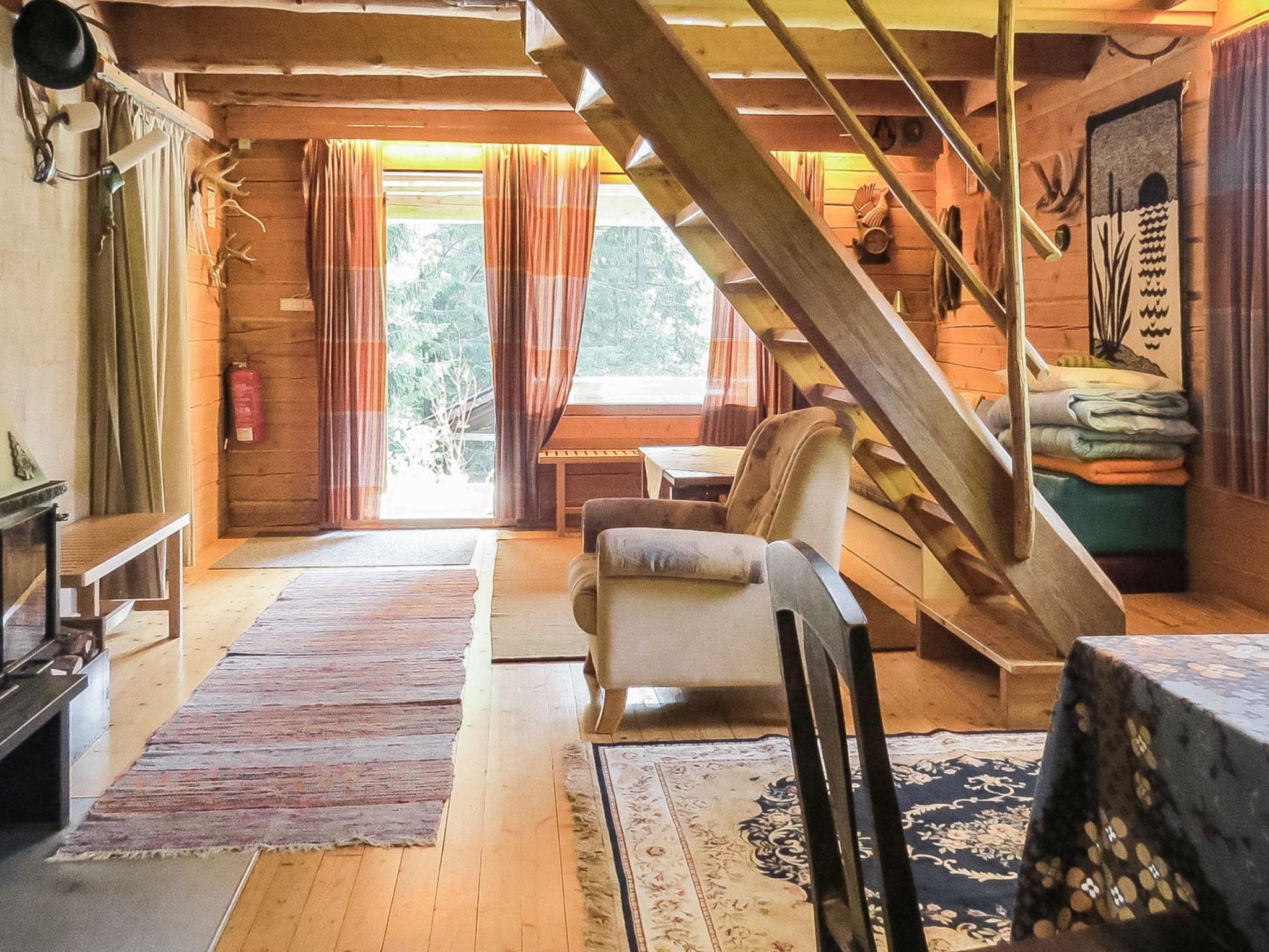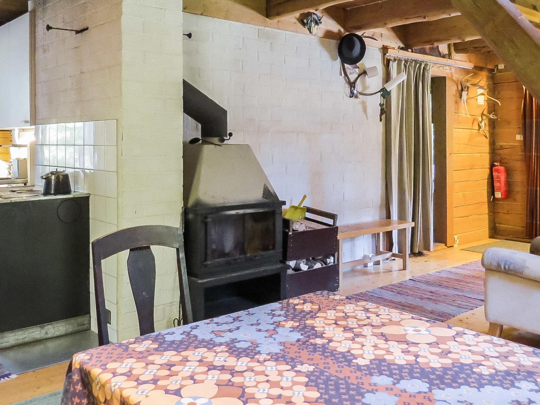 Log cabin 1994, living-room/kitchen with 2 extra beds, alcove with 2 beds, sleeping loft 2+2 beds, alcove in the loft with 2 beds, dressing room (electric toilet), sauna, open veranda and balcony. The cottage has a metal fireplace.