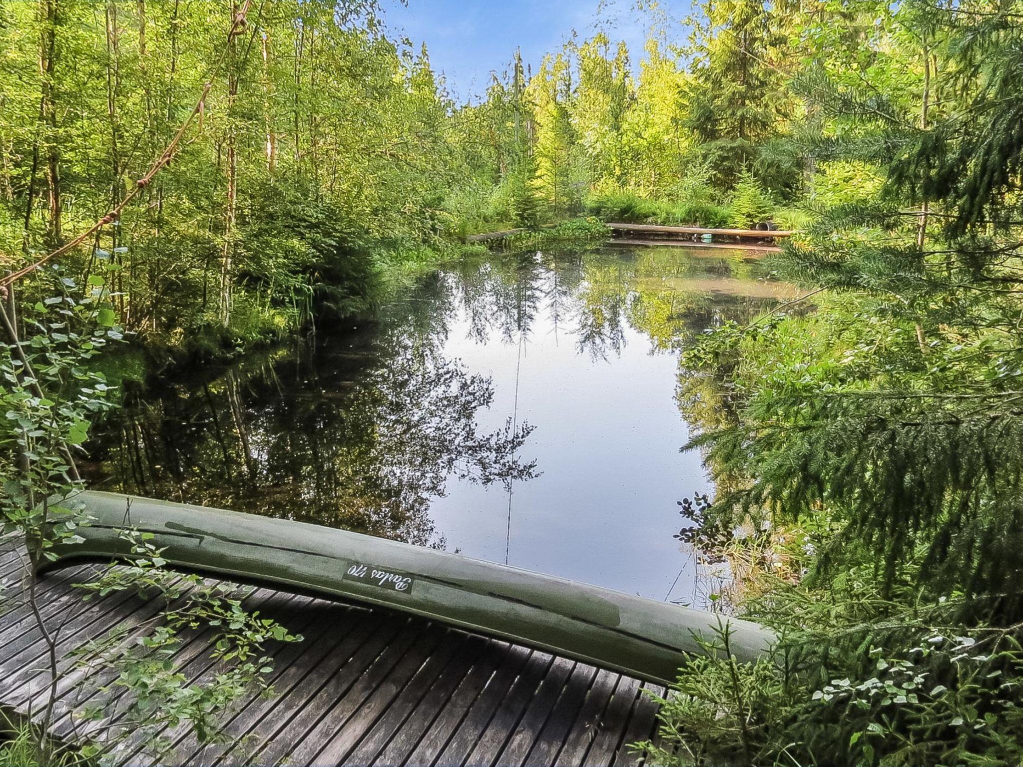 100 km north-east of Turku. Pihalampi Pond 20 m (length 30 m, breadth 20 m), water flows through the pond, deep water, soft bottom, pier. Own canoe. The pond is more than 2 m deep.