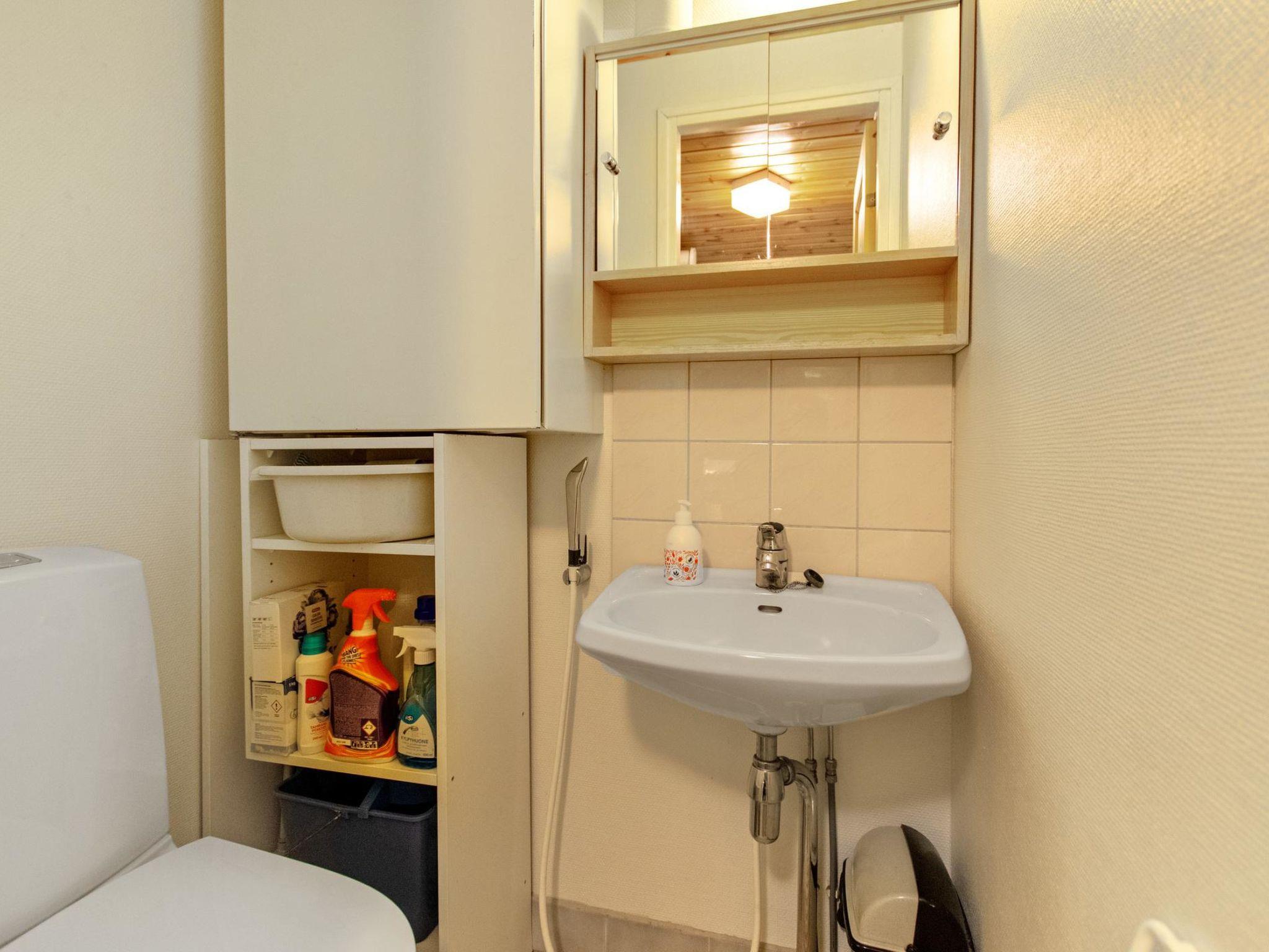 Built in 1991. Bedroom with doublebed, kitchenette and living room, sauna with adjoining washroom and WC, 4 beds on the loft. Firewood included.