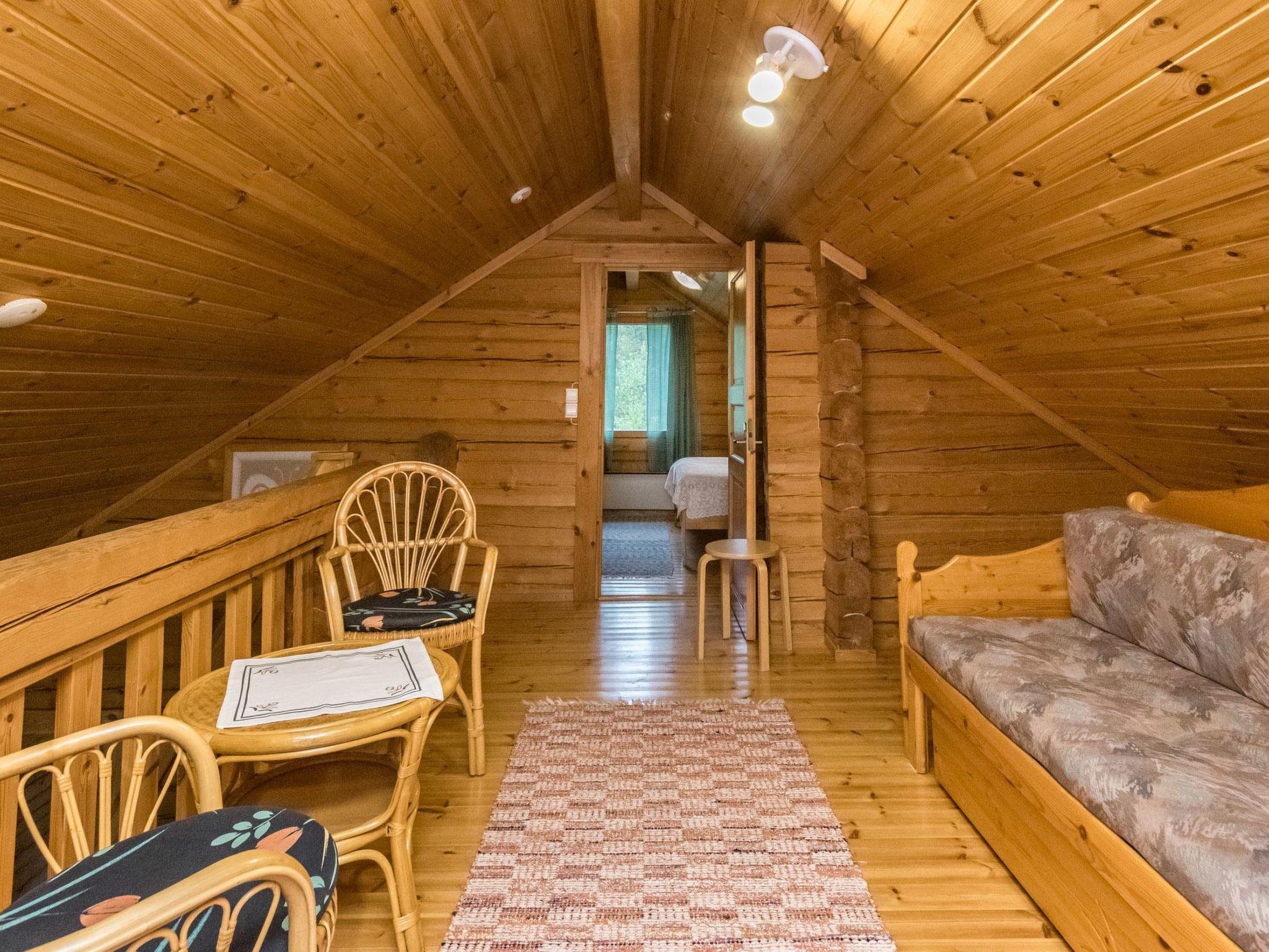 Upstairs: bedroom with double bed, sleeping loft there is possibility to make two extra beds to the sofa, balcony.