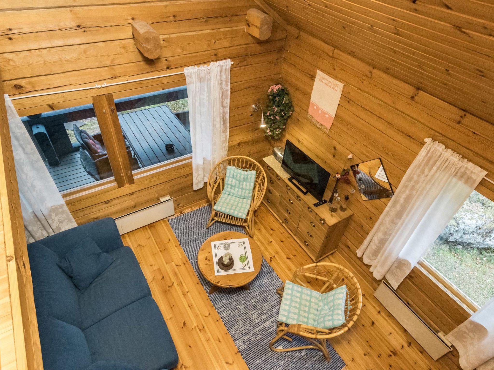 Log cabin 1998, living room/kitchen, bedroom with double bed (140 cm), sauna (electric sauna stove), washroom (sauna and washroom renovated 2014), toilet, veranda.