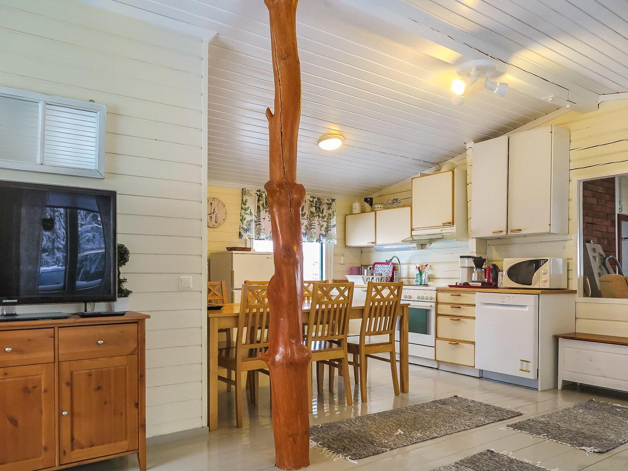Combined kitchen-living room, 2 bunk beds in extension part, bedroom with double bed (width 140 cm), wood-heated sauna, wash room, separate toilet, terrace.