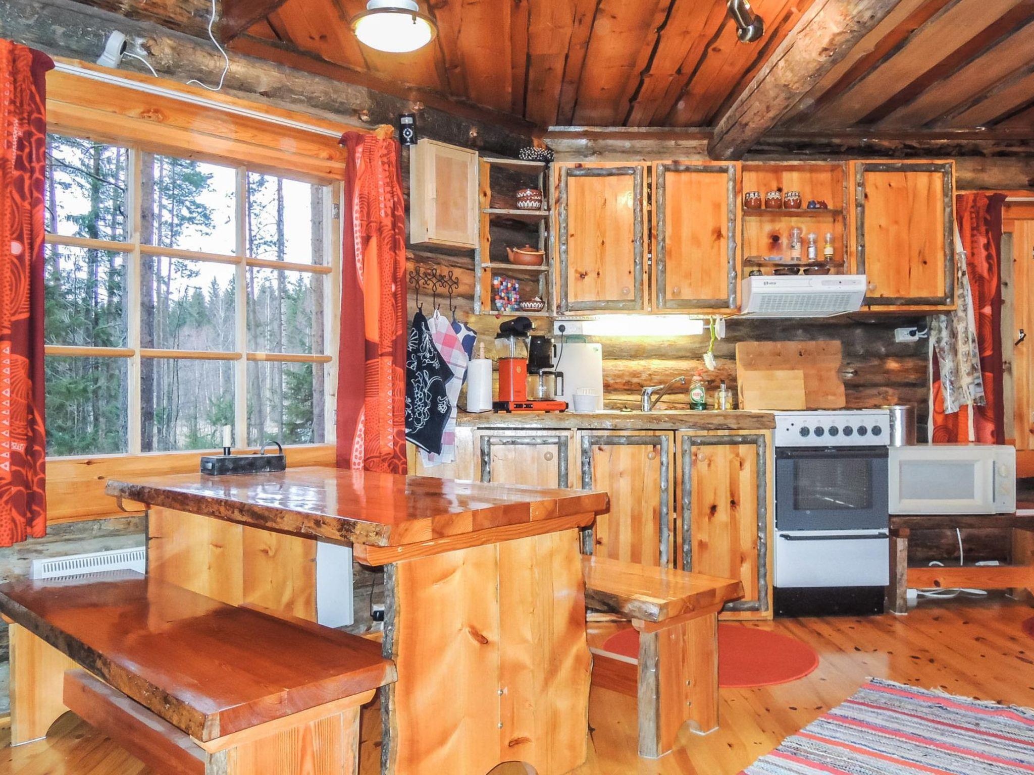 Log cottage built in 2002. Living room/kitchen, alcove (double bed 140 cm), wood-heated sauna (shower in the sauna), dressing room and loft (double bed 200 cm). Veranda. In Summer sleeping outbuilding for 2 persons available.