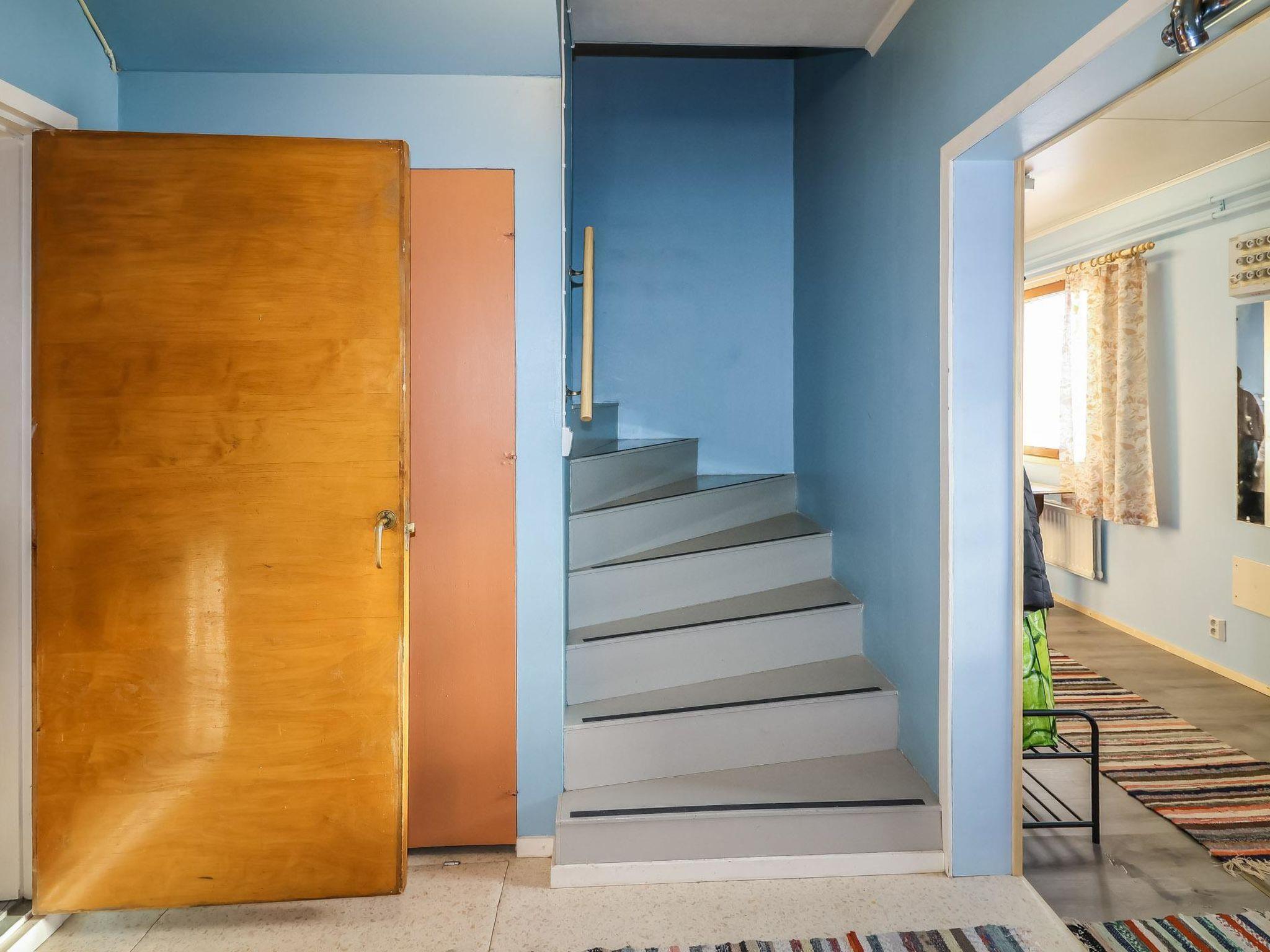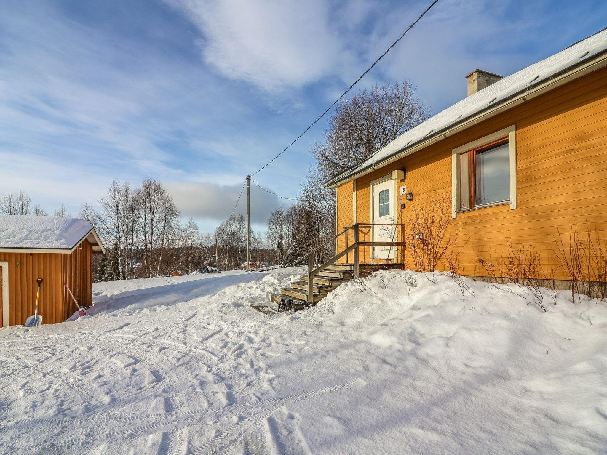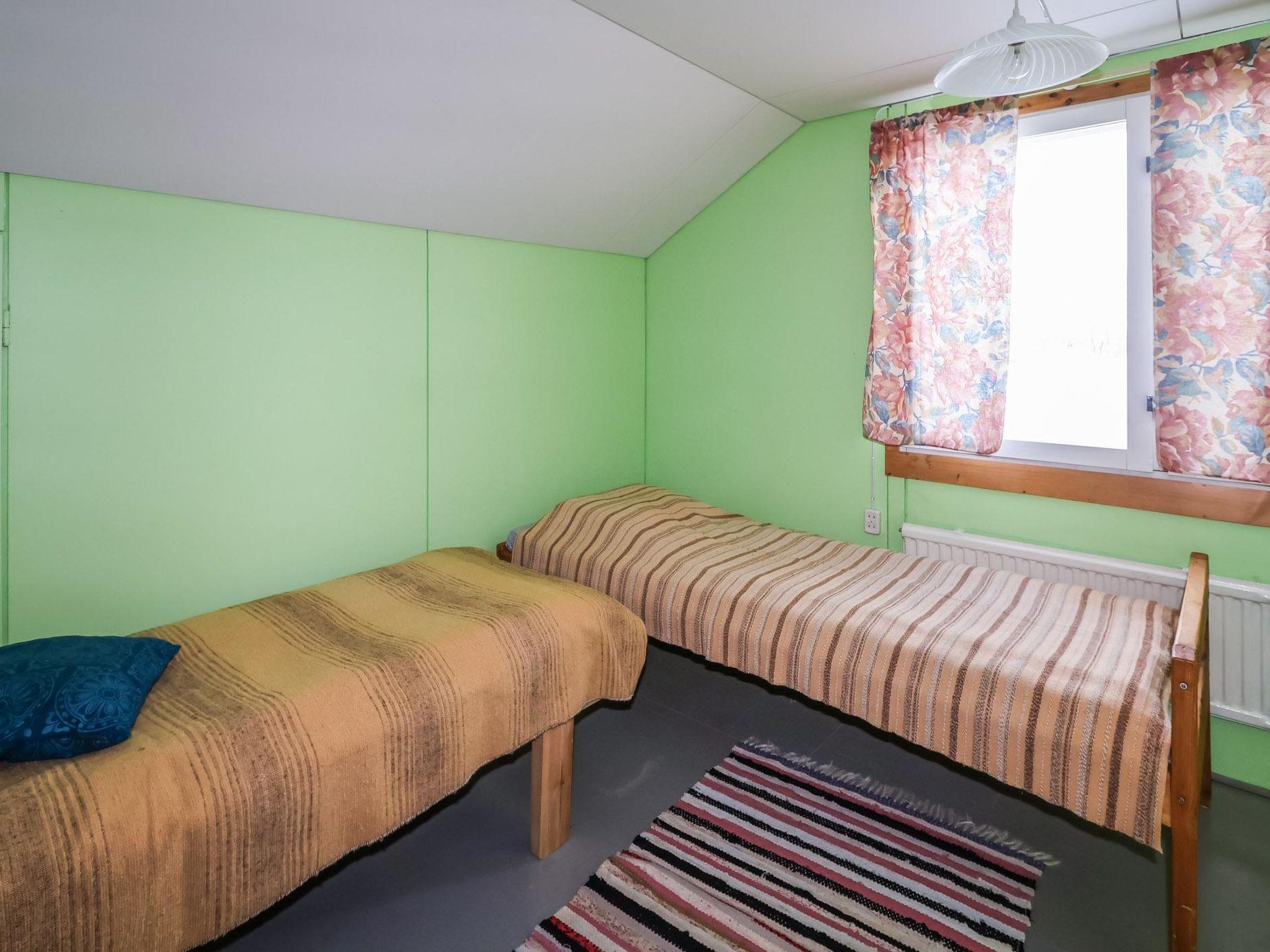 250 km north of Rovaniemi. The house was originally built in 1968, extended in 1985, and renovated in 2014 and 2024. The ground floor features a living room, kitchen, one bedroom with a double bed (160 cm wide), a wood-heated sauna, and a washroom. On the upper floor, there are two bedrooms, each with two single beds (80 cm wide).