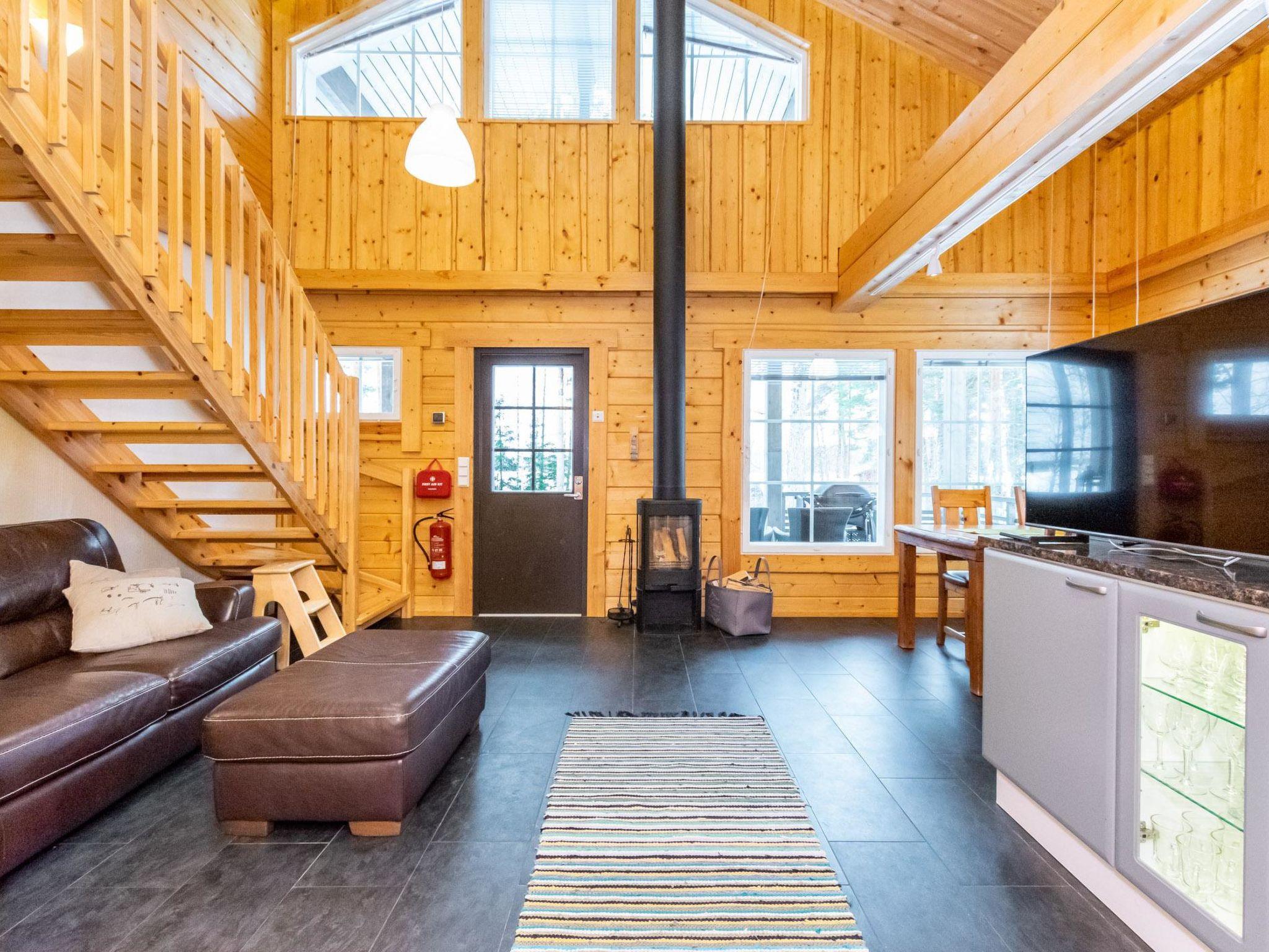 On the ground floor, there is a living room/kitchen, two bedrooms, both with two beds, TV and DVD. Dressing room, bathroom, sauna and WC. Well-equipped kitchen also has a wine cabinet.