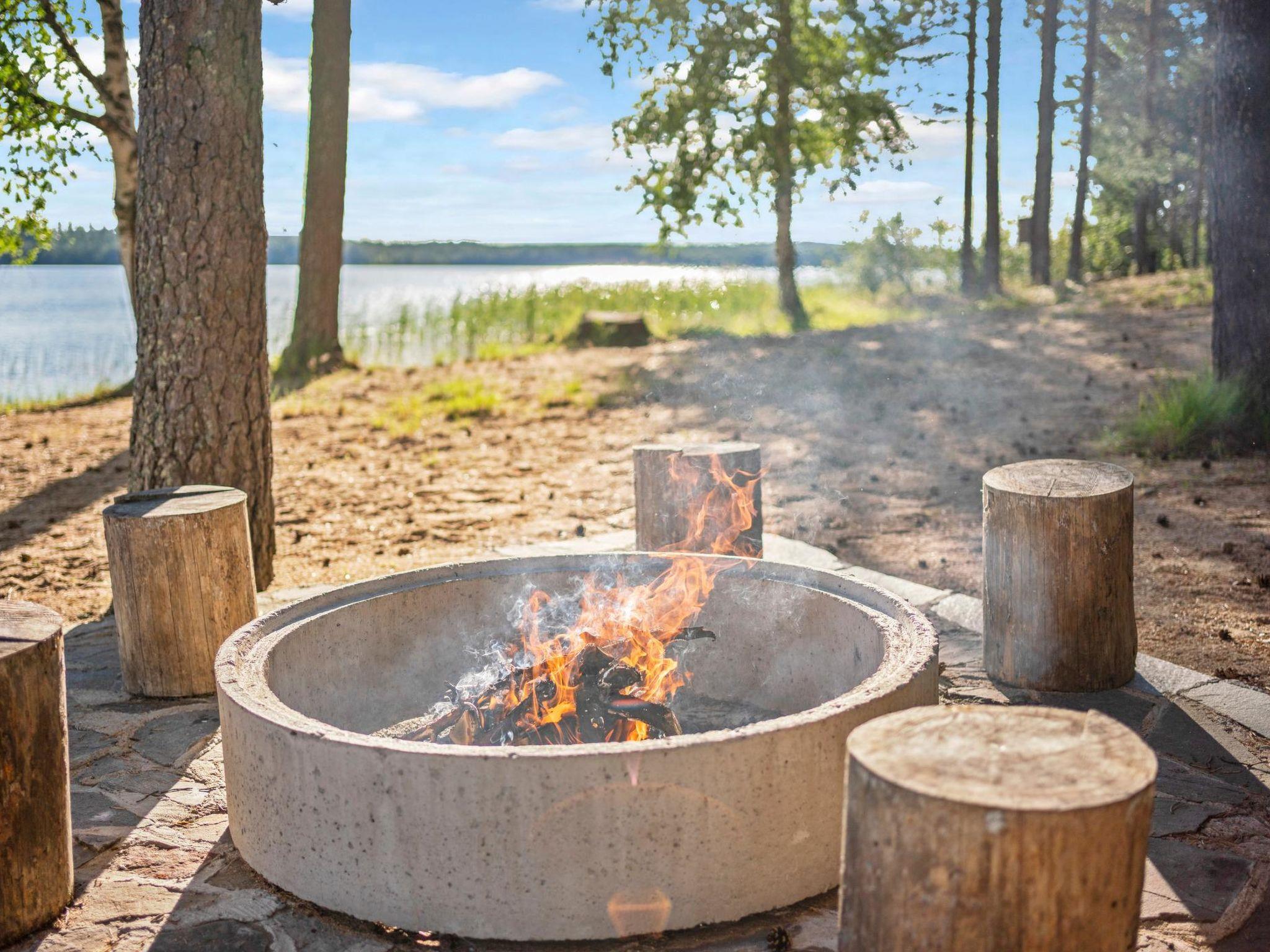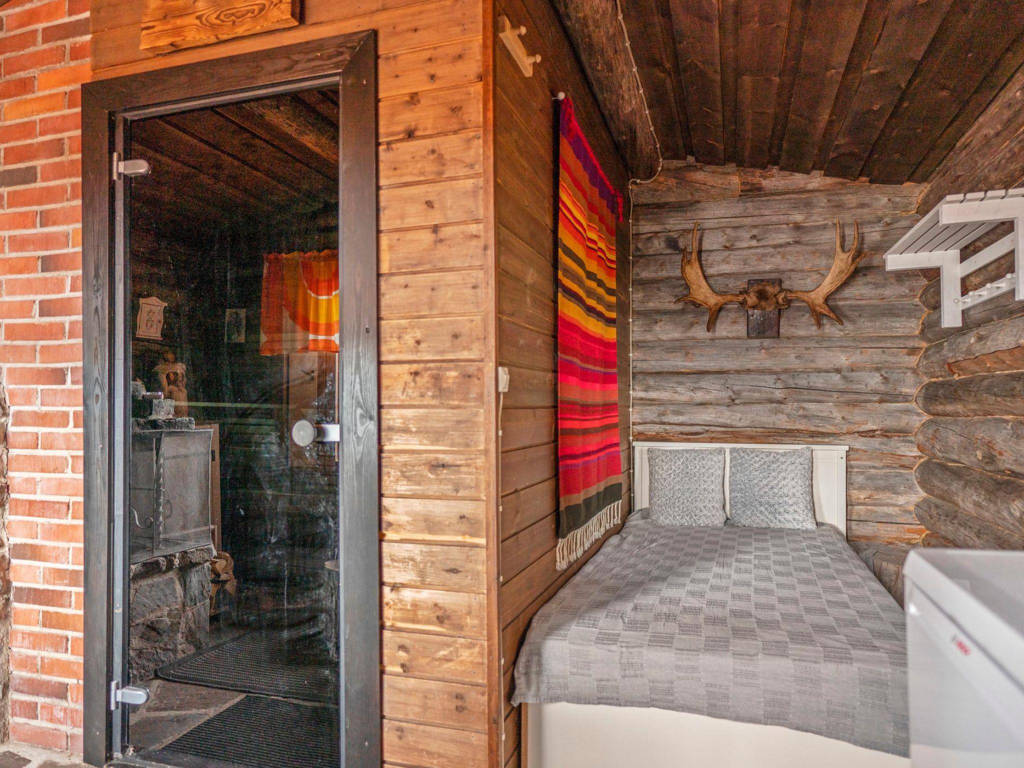 Lakeside sauna with steam room and fireplace room. 1 bed in the fireplace room. Lakeside sauna is renovated in 2020. The sauna has a shower in the steam room, electric light and electric heating. In the fireplace room, there is a refrigerator.
