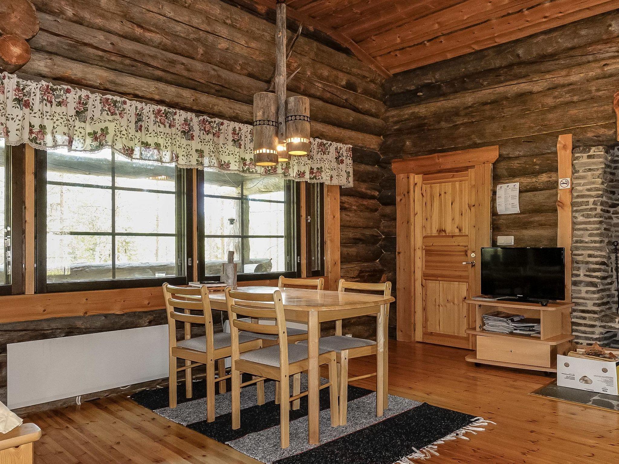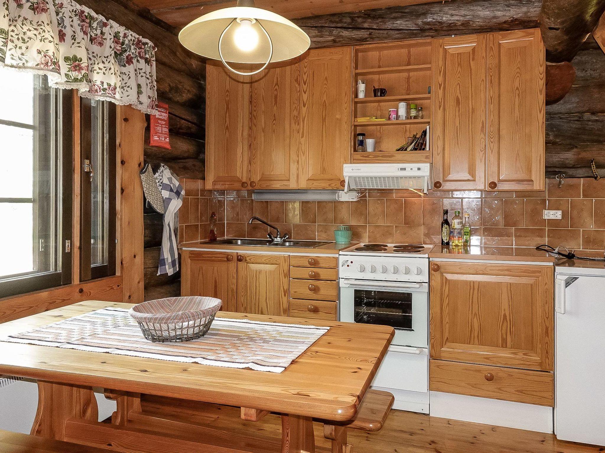 Log cottage, built in 2006. Living room-kitchen with wooden sofa bed, bedroom with double bed, second bedroom with 2 single beds, loft with 2 mattresses (loft is low and stairs steep), sauna with wood stove, shower in the steam room, separate toilet and large covered terrace on the river side.