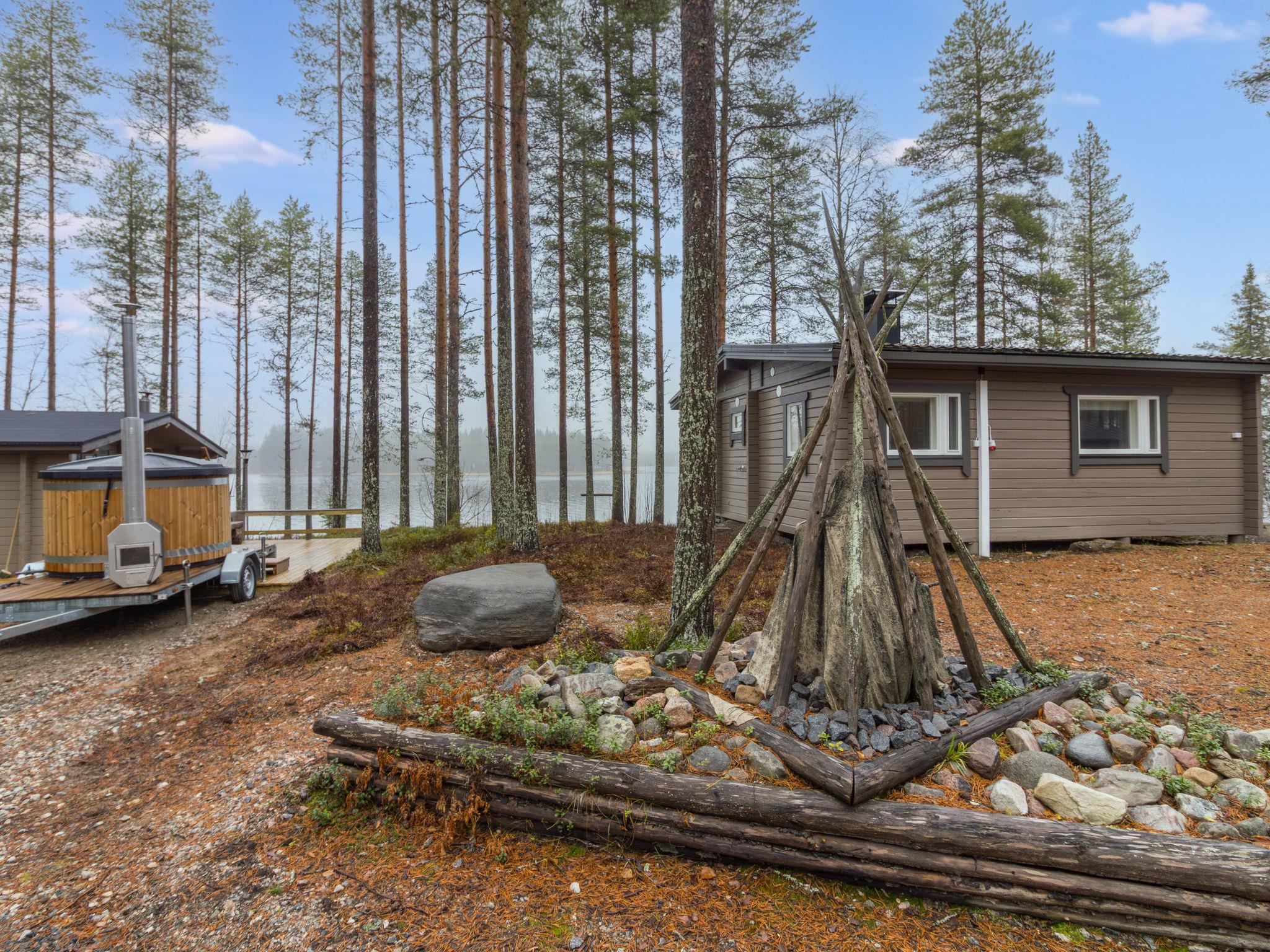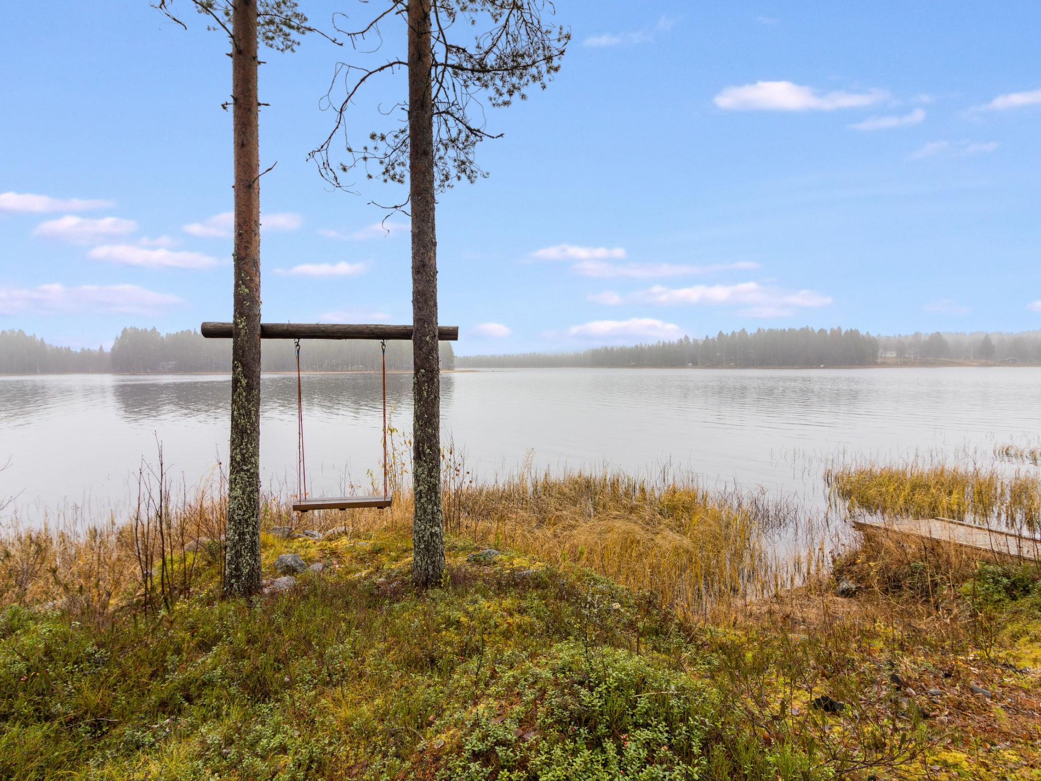 58 km southeast of Rovaniemi, Lake Siika-Kämä is just 20 m away (lake length 2 km, width 800 m), with a gently deepening shore, firm sandy/rocky bottom, a pier, and a private boat. There is also a child-friendly sandy beach 50 m from the cabin where swimming is possible.
