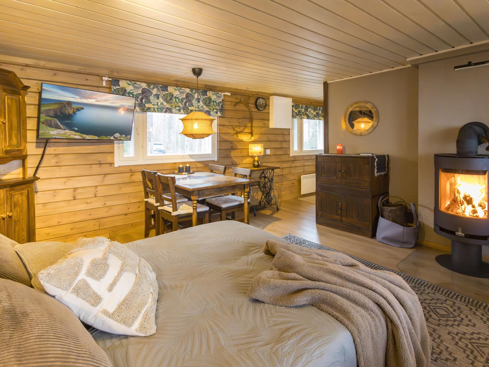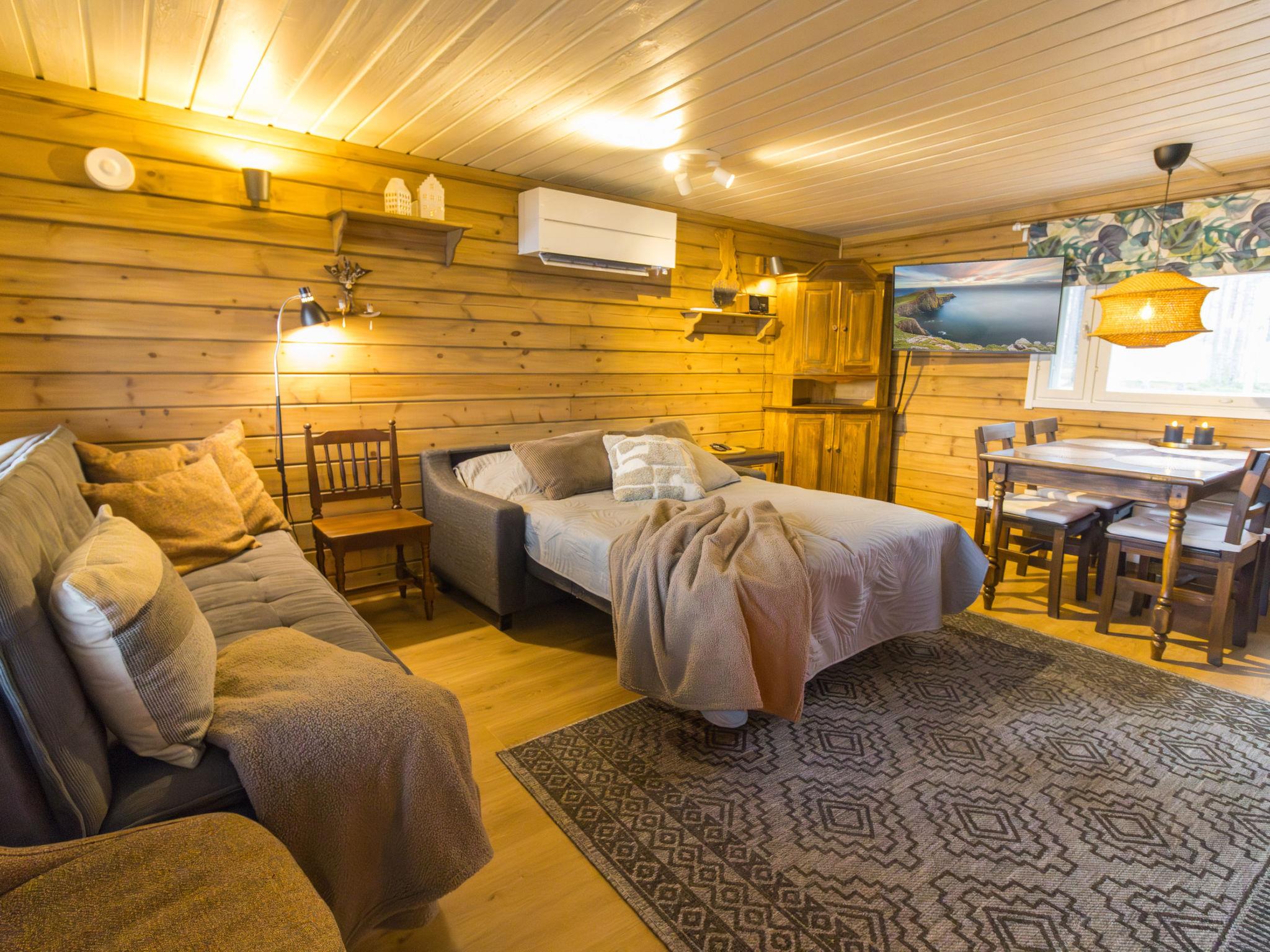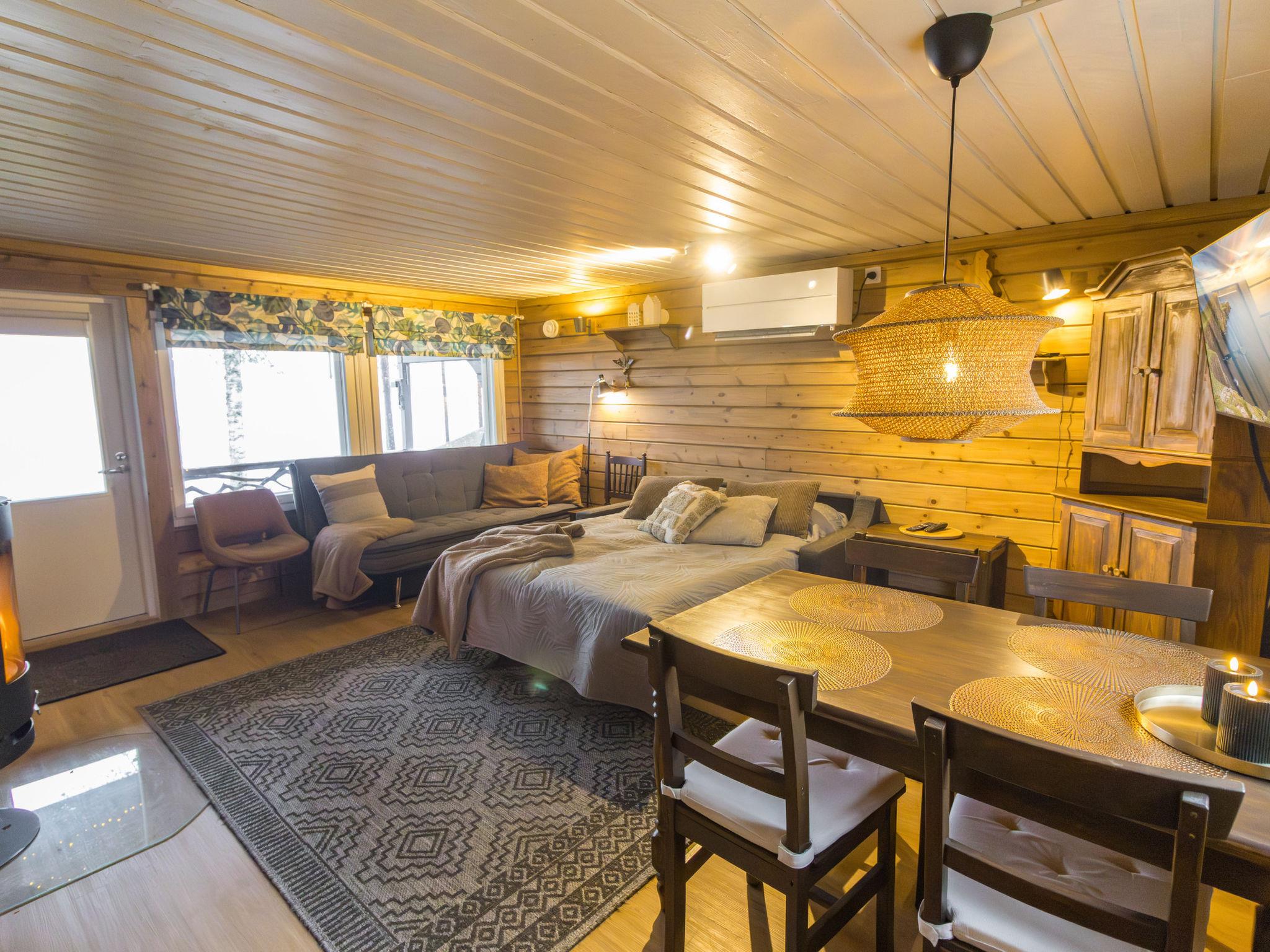 This small wooden house was originally built in 1970 and has been completely renovated and modernized in 2024. The living area includes a double bed (140 cm) and a sofa bed for one (110 cm). There is a combined kitchen/living room and a bathroom with a toilet. Wireless internet connection (WiFi) is available.