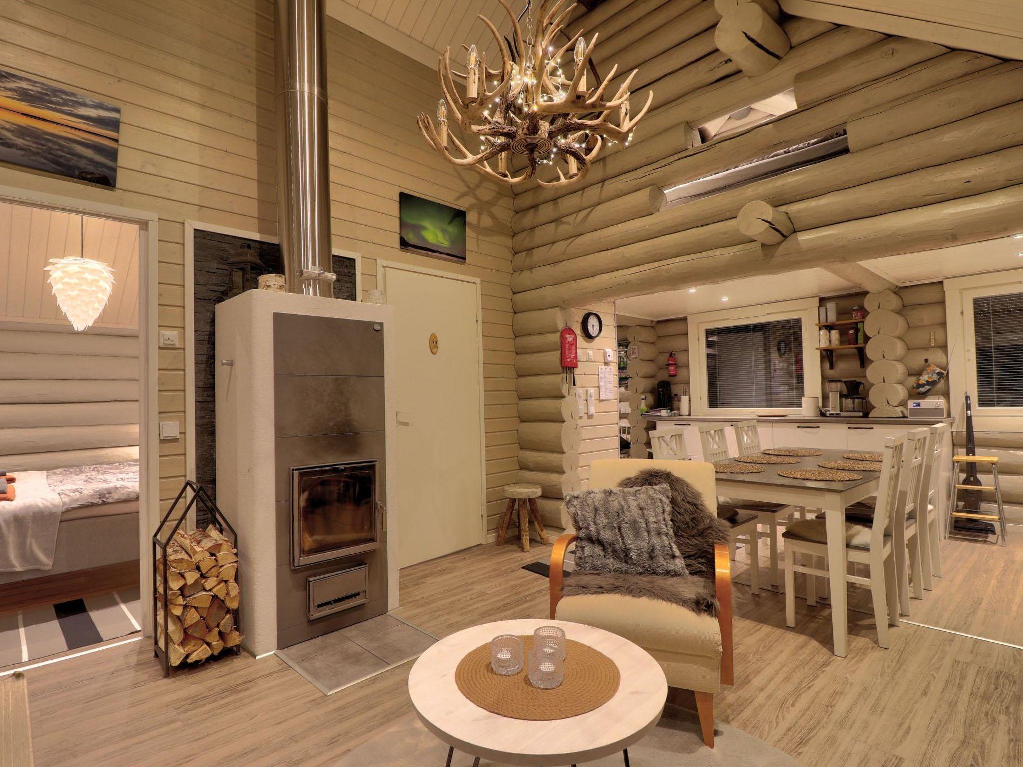 55 km to the east from Rovaniemi, lake Vanttausjärvi 20 m (length 6 km, width 2.5 km), shallow, artificially sanded beach, pier, rowing boat and outboard 5 hp. The outboard motor will be delivered with a full fuel tank and customer also returns the engine with full fuel tank (2-stroke engine).