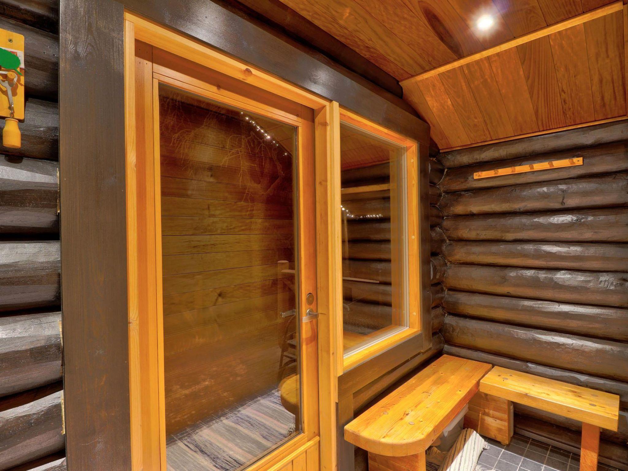 Lakeside sauna with shower in the sauna room, dressing area. The sauna has wood-burning sauna stove and underfloor heating.